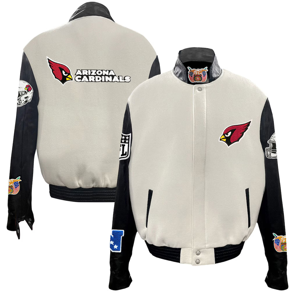 White Arizona Cardinals Wool & Leather Full-Snap Varsity Jacket AR