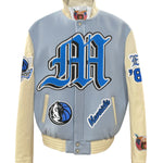 Dallas Mavericks Wool & Leather Old English Varsity Jacket Baby Blue