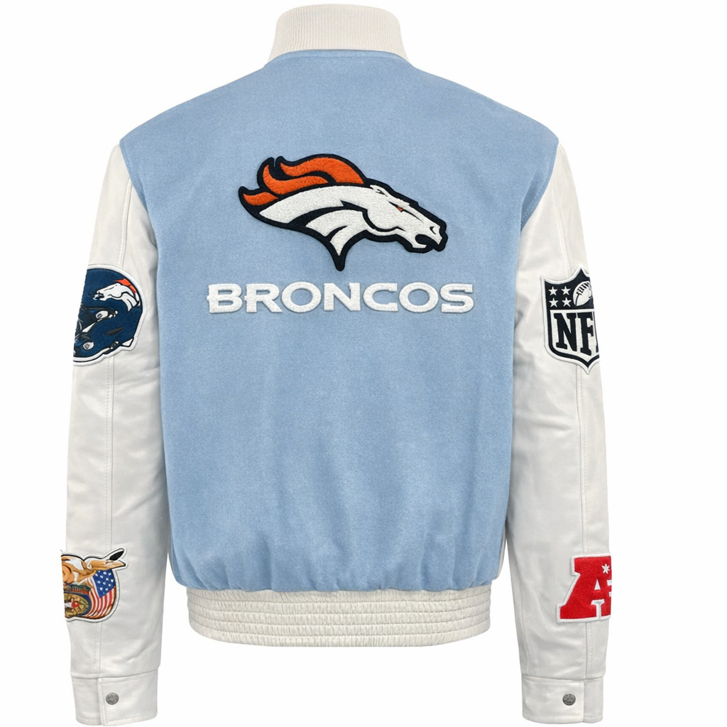 Denver Broncos Wool & Leather OE Varsity Jacket Baby Blue - AR