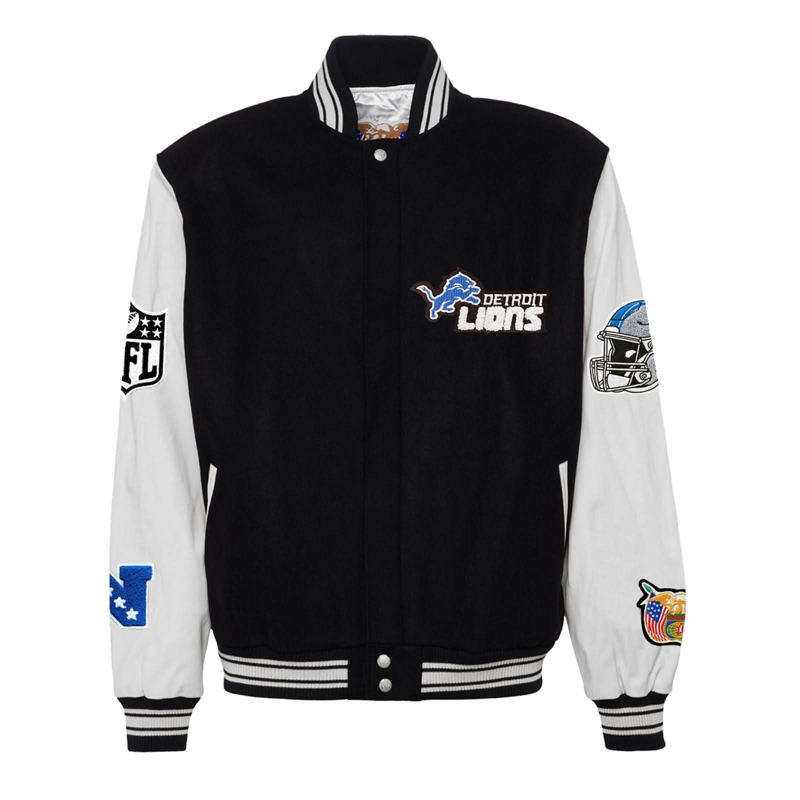 Detroit Lions Wool & Leather Varsity Jacket Black/Black