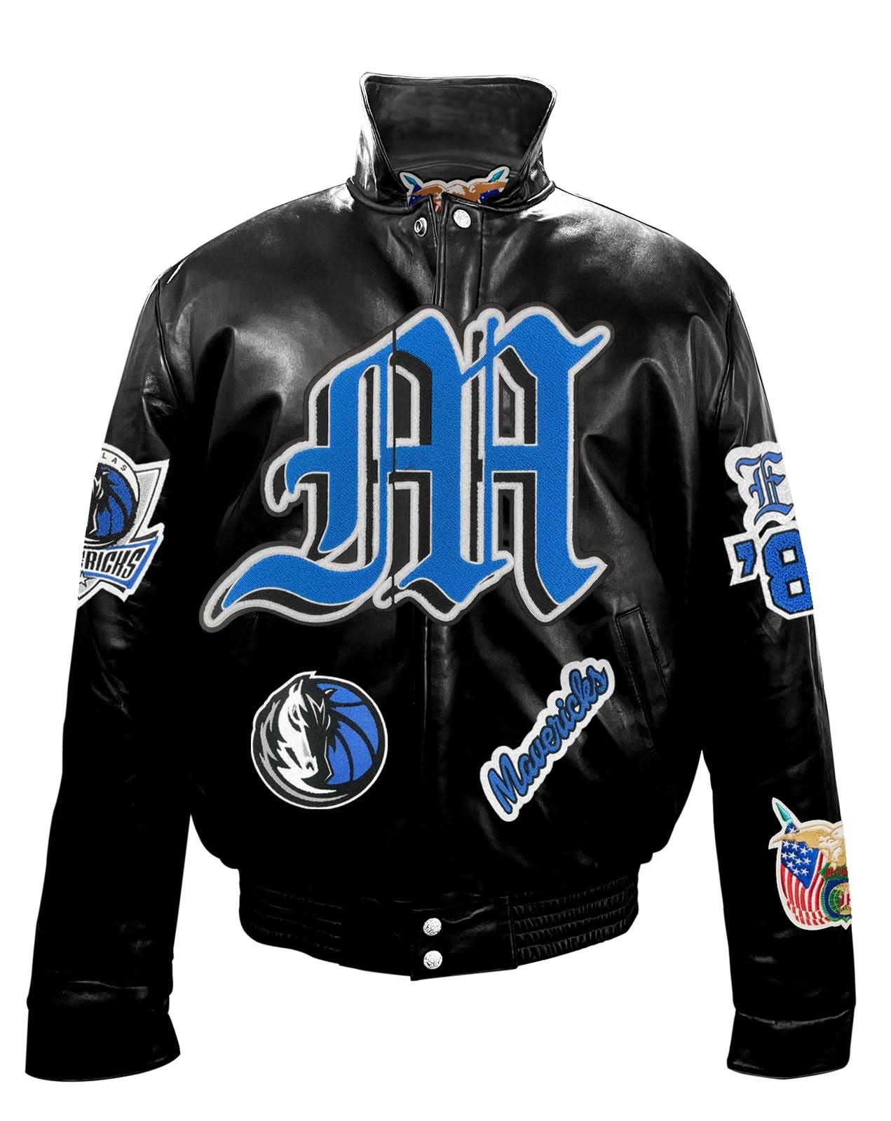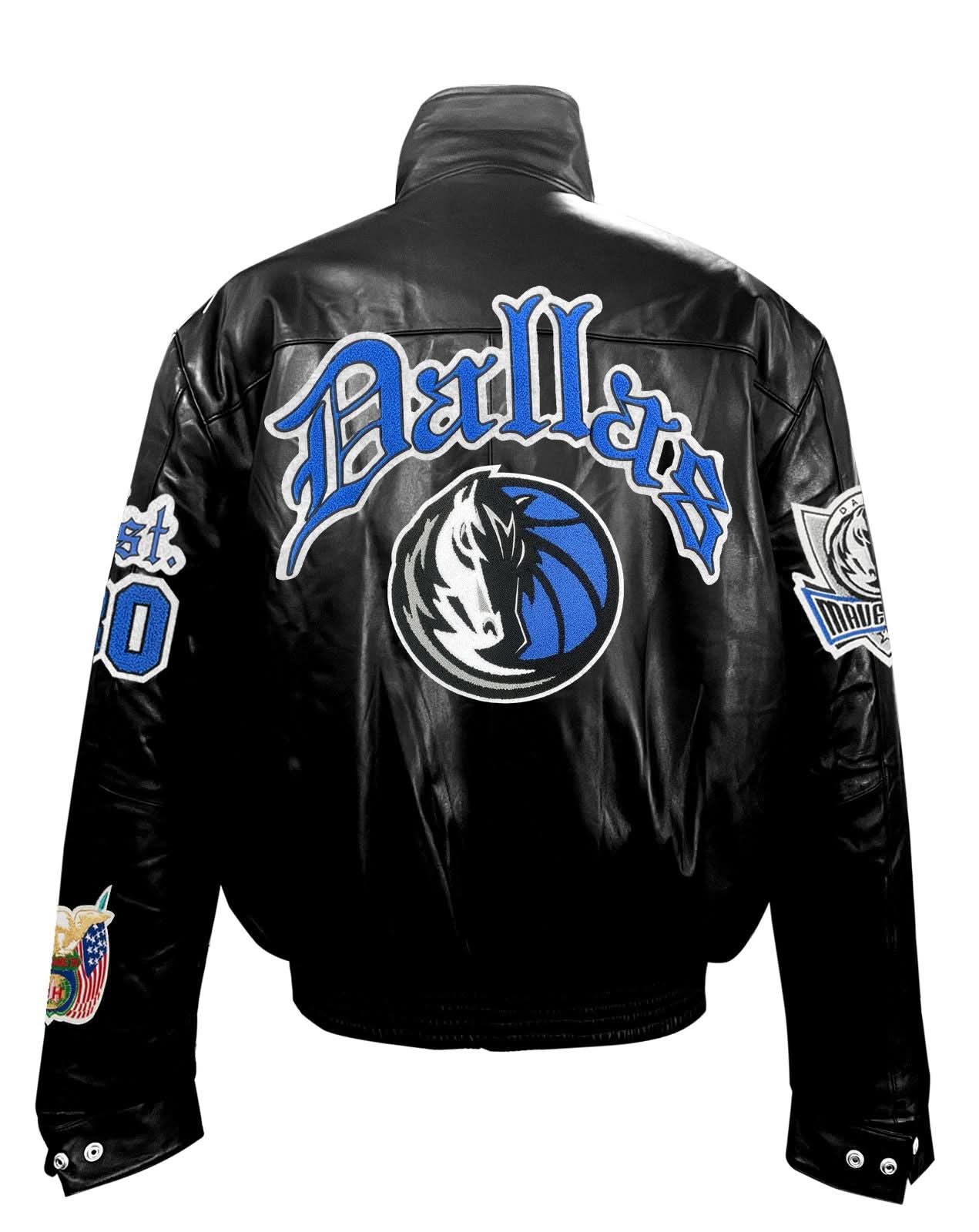 Dallas Mavericks Full Leather Puffer Old English Jacket Black