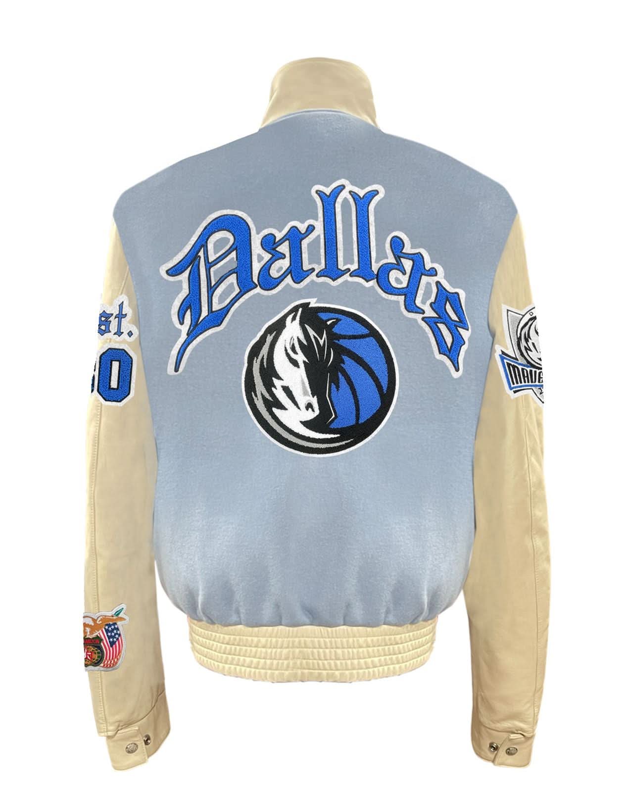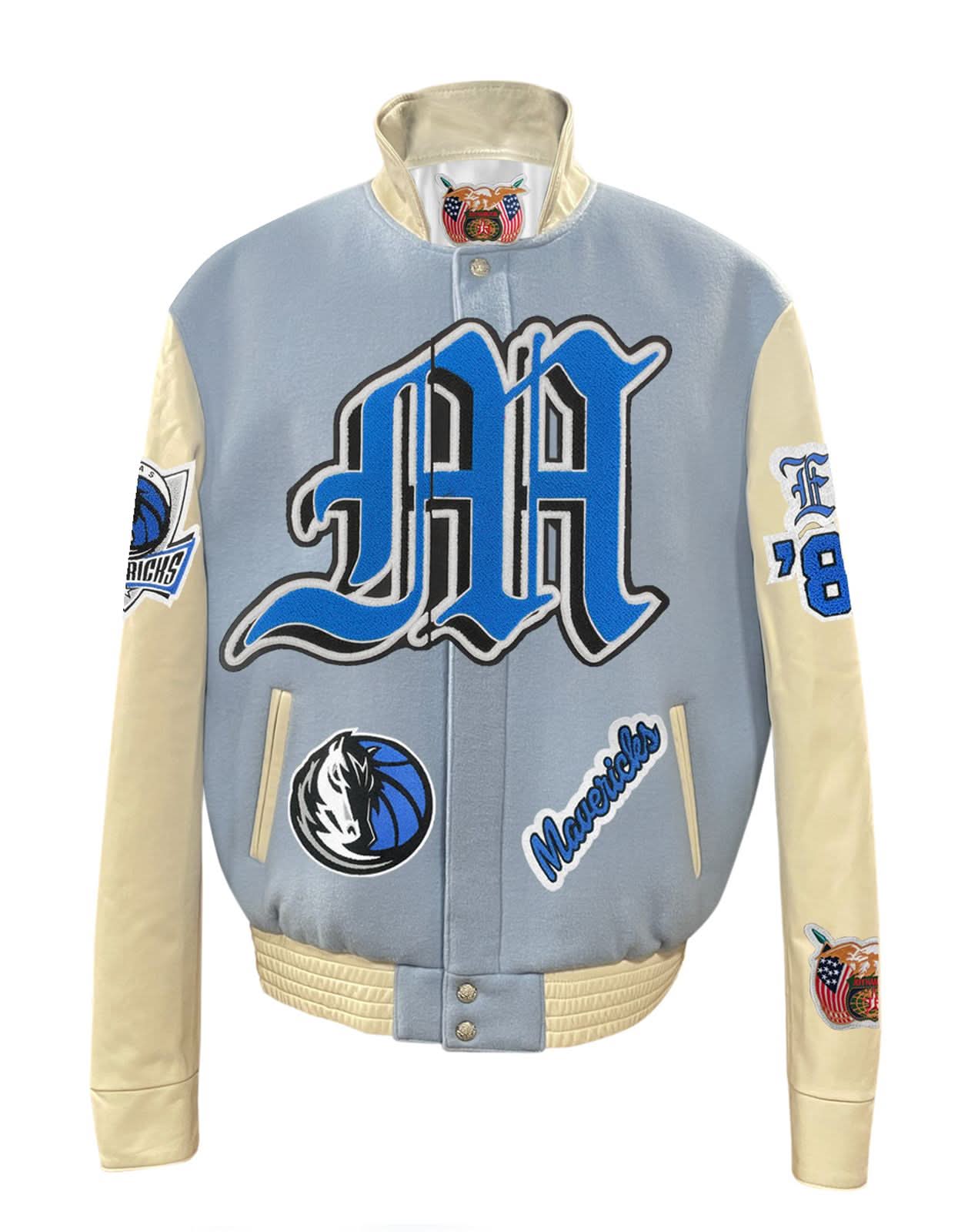 Dallas Mavericks Wool & Leather Old English Varsity Jacket Baby Blue