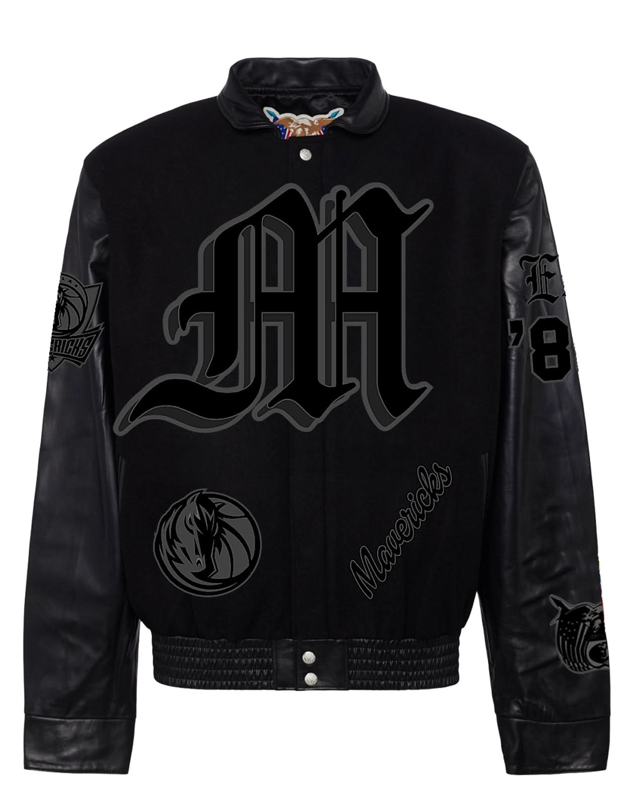 Dallas Mavericks Wool & Leather Old English Varsity Jacket Black/Black
