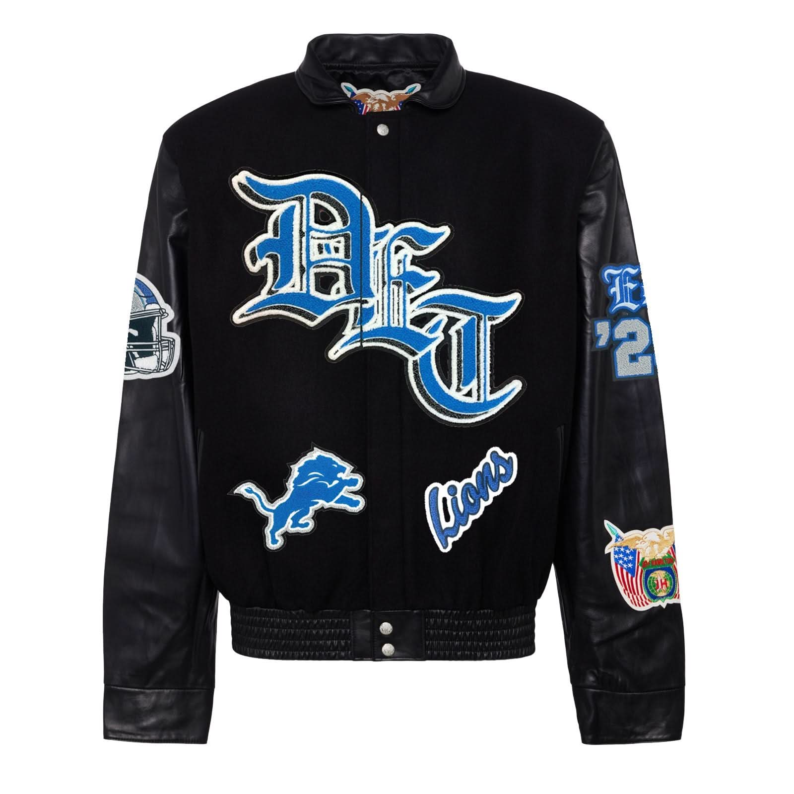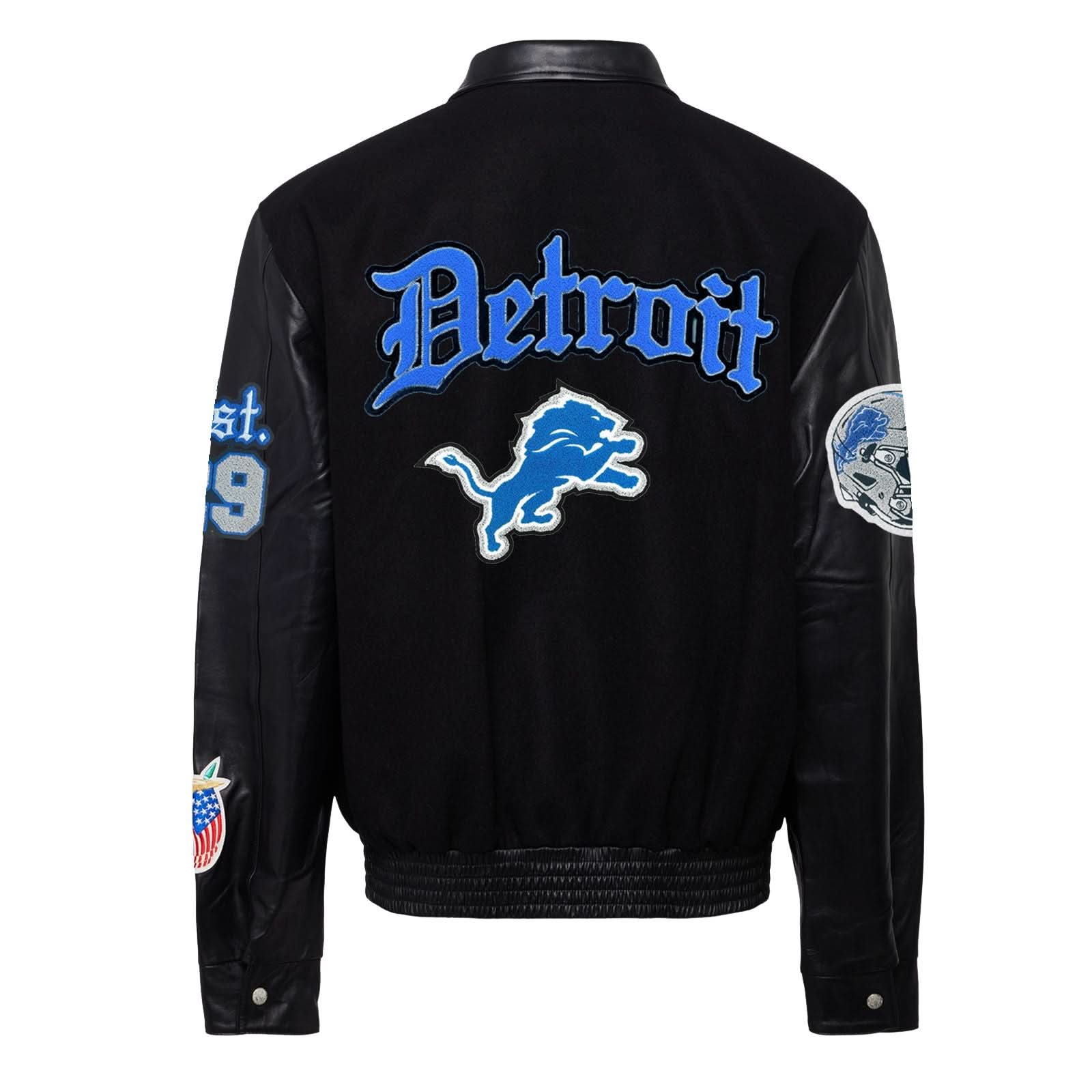Detroit Lions Wool & Leather Old English Varsity Jacket Black / Black