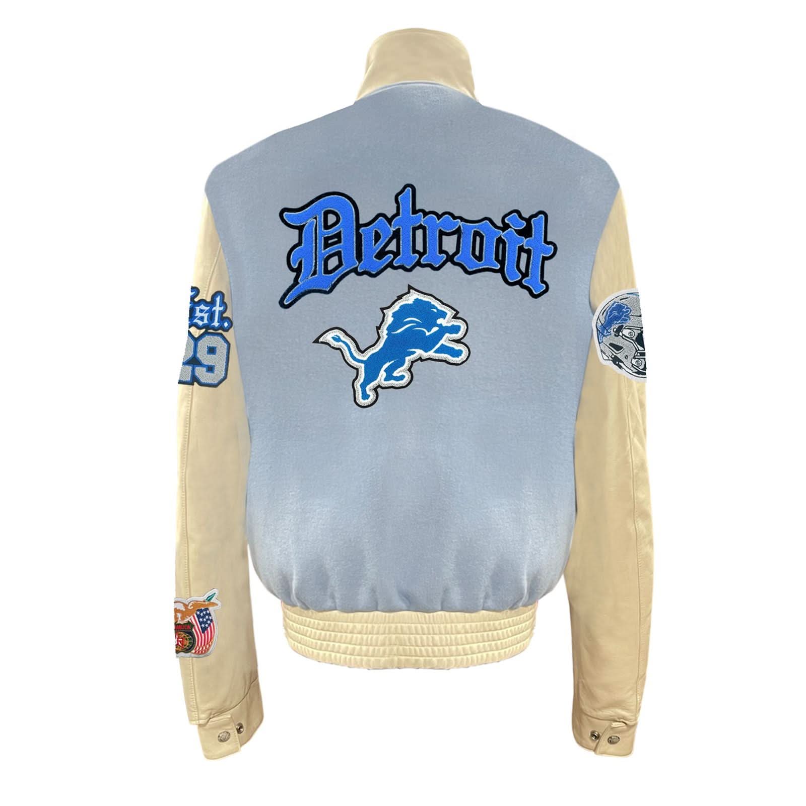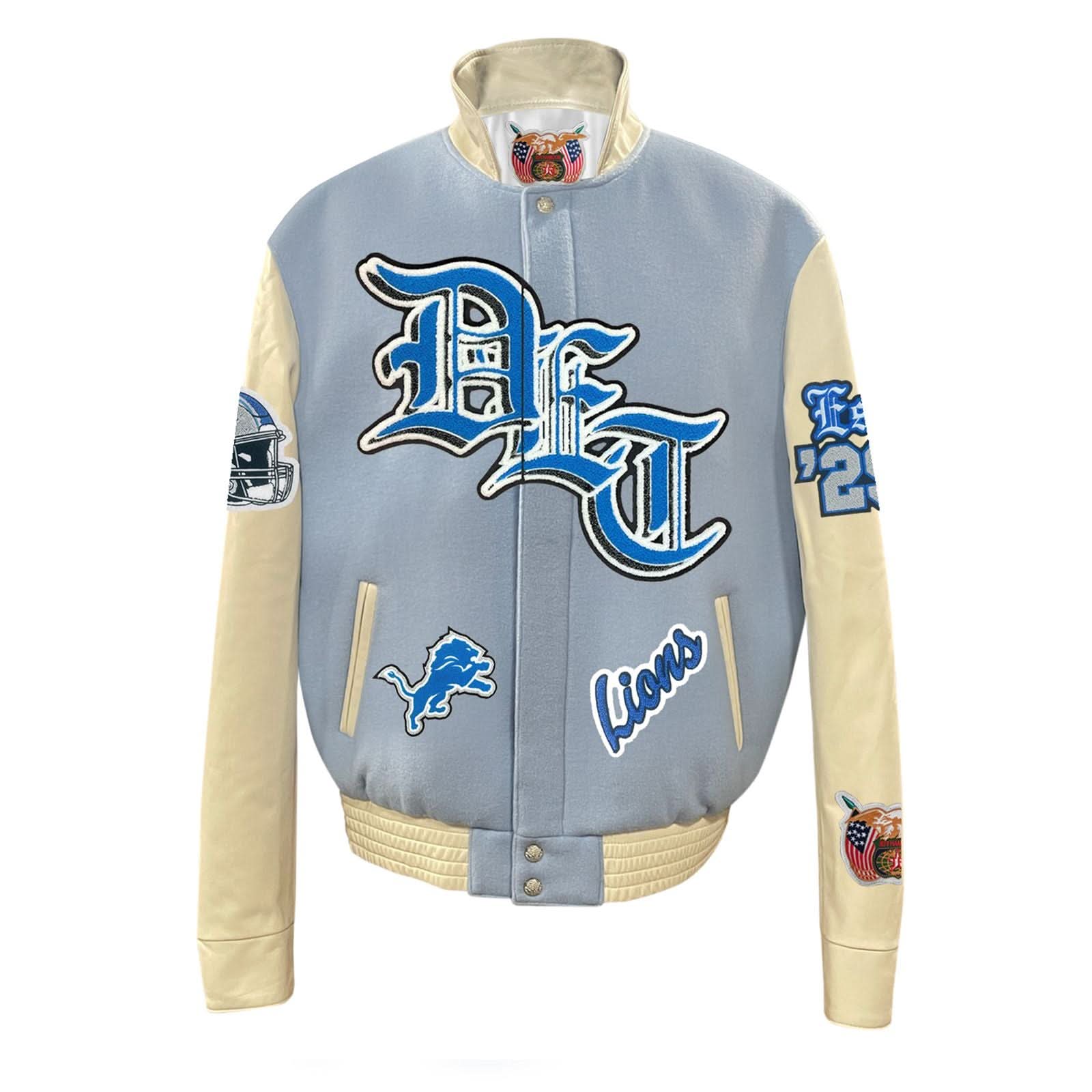 Detroit Lions Wool & Leather Varsity Old English Jacket Baby Blue