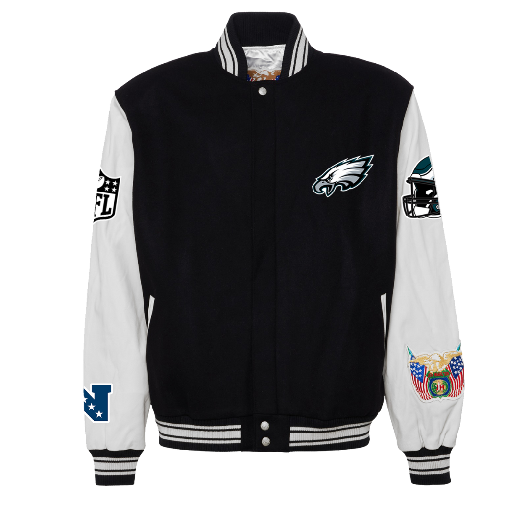 Philadelphia Eagles Wool & Leather Varsity Jacket Black/White