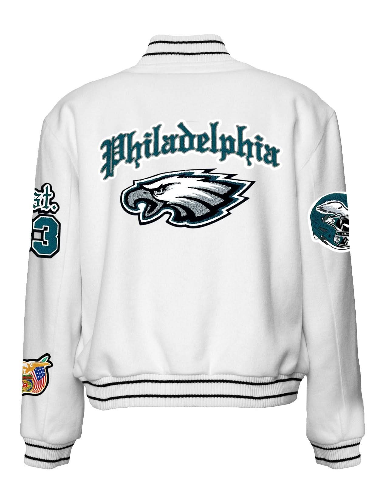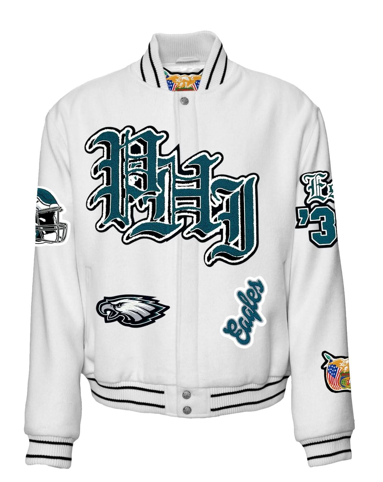 Philadelphia Eagles Wool Old English Varsity Jacket White
