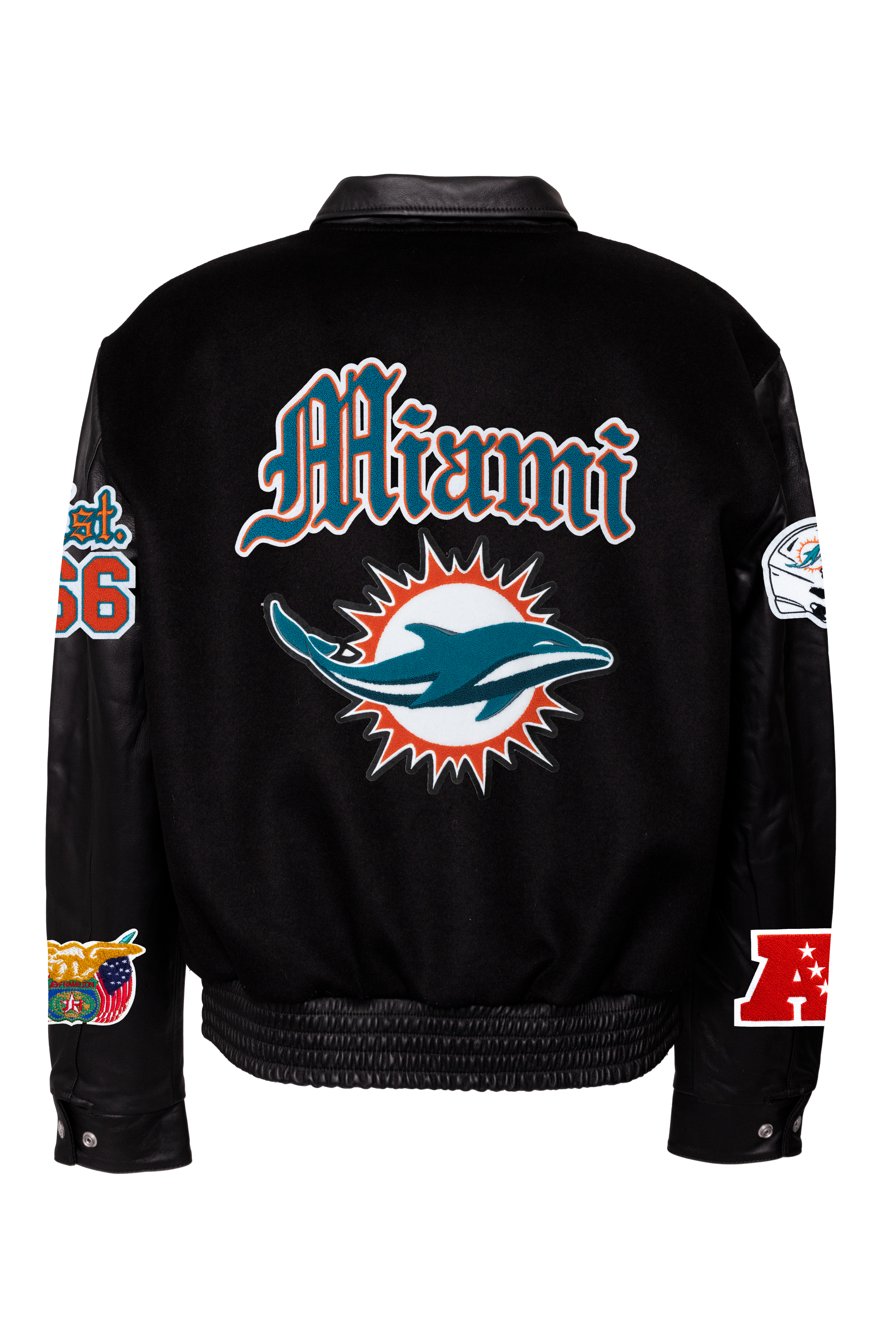 Miami Dolphins Wool & Leather Old English Varsity Jacket