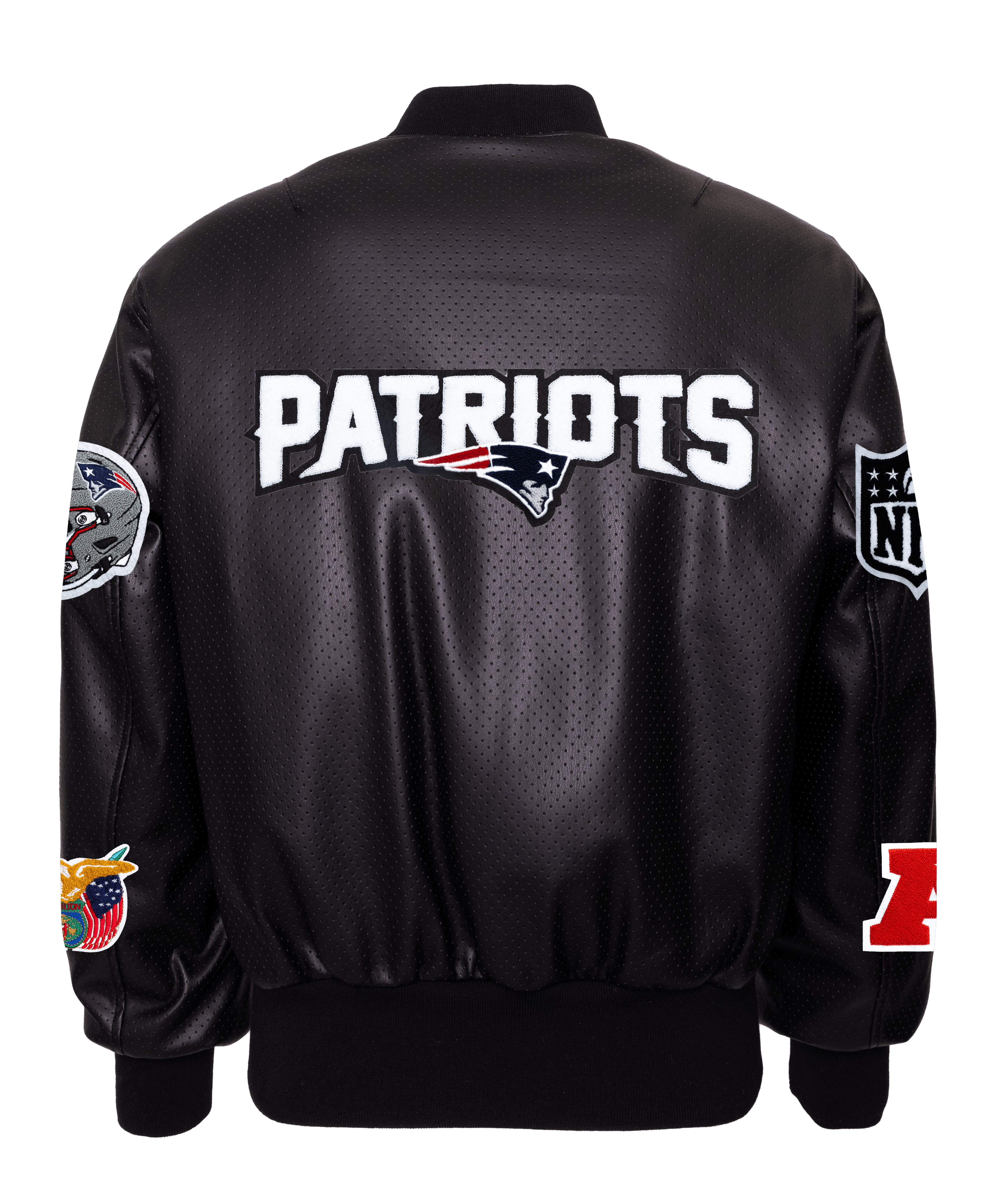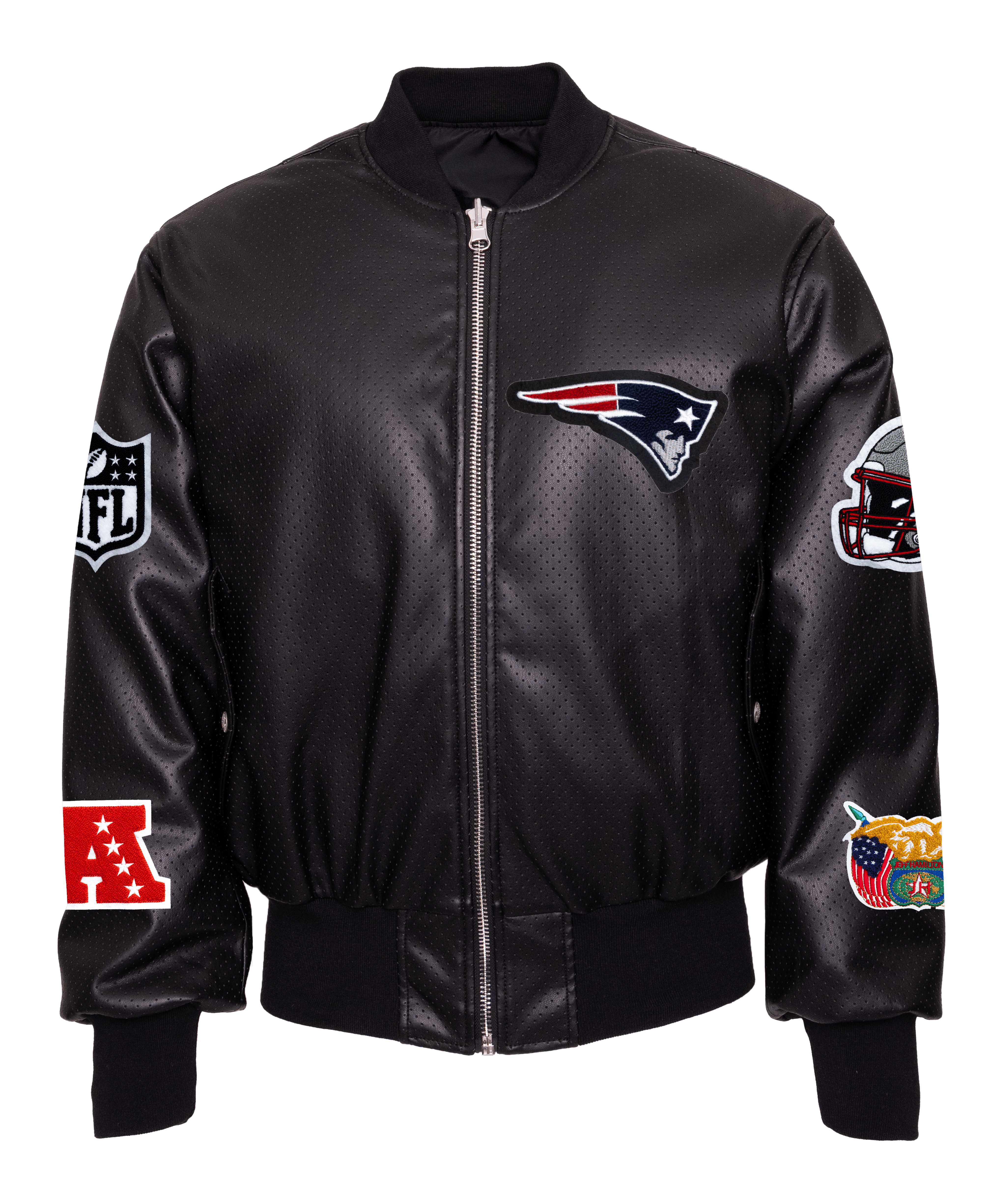 New England Patriots Full Black Old English Vegan Leather Jacket