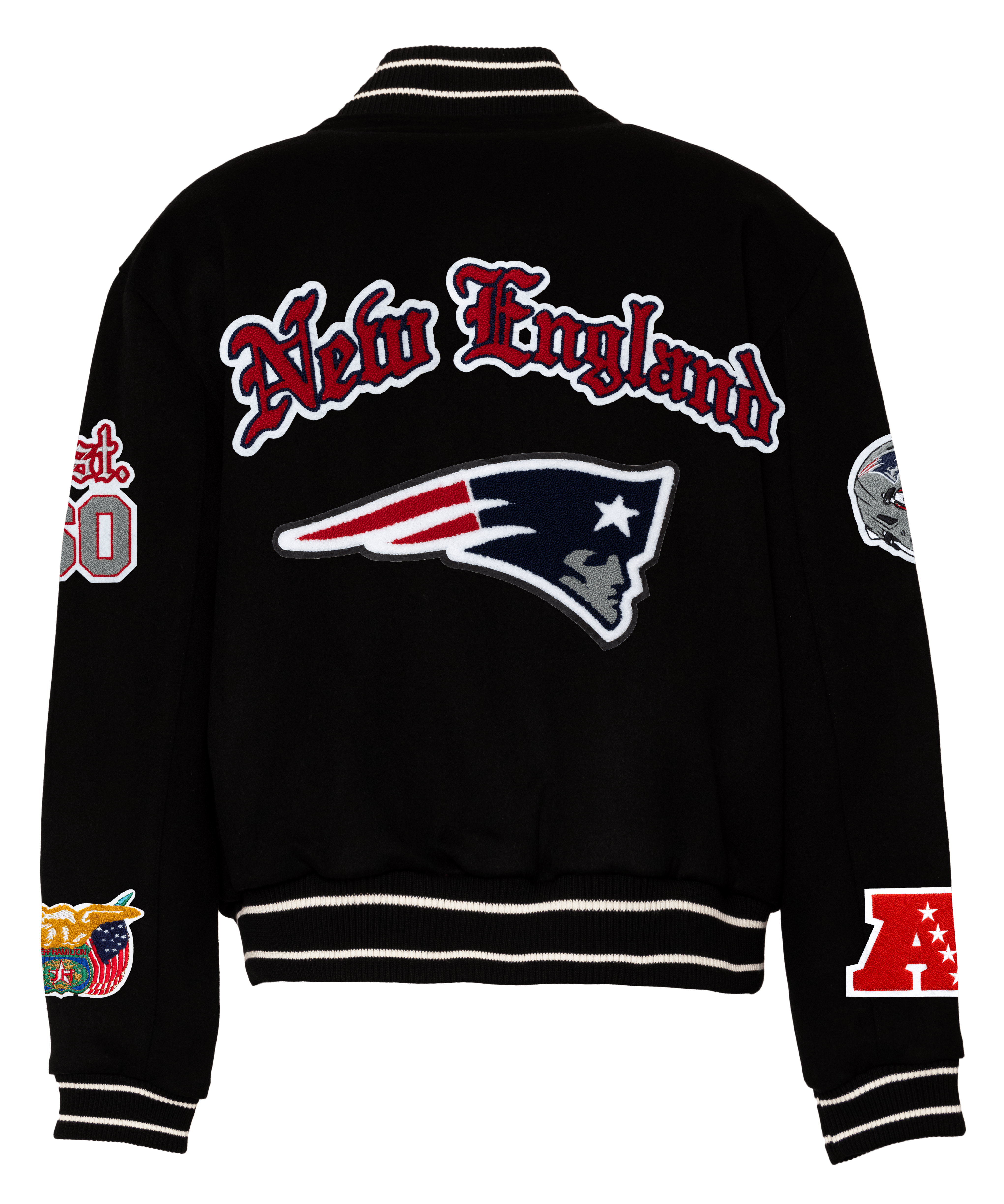 New England Patriots Wool & Leather Varsity Jacket Black/Black