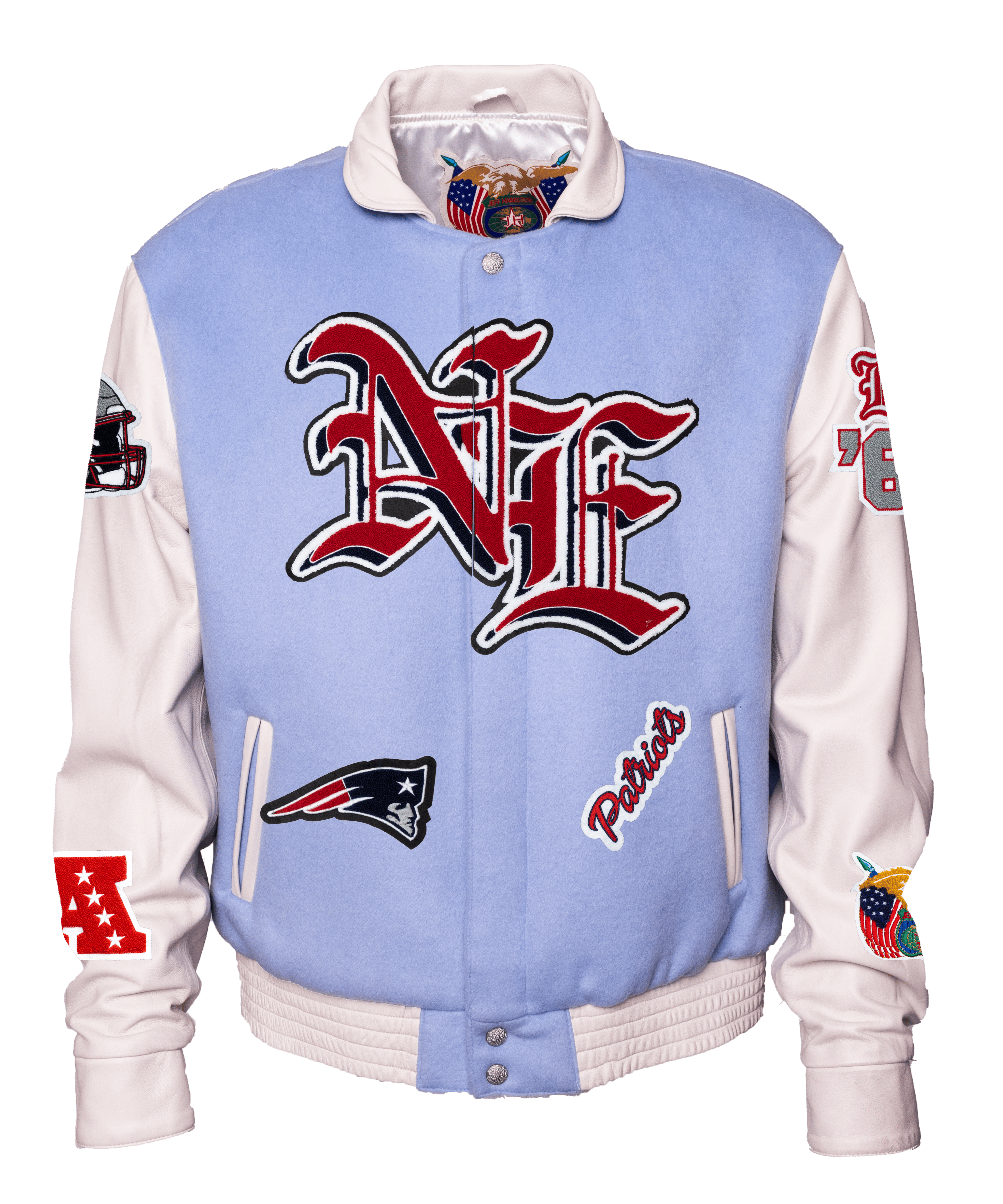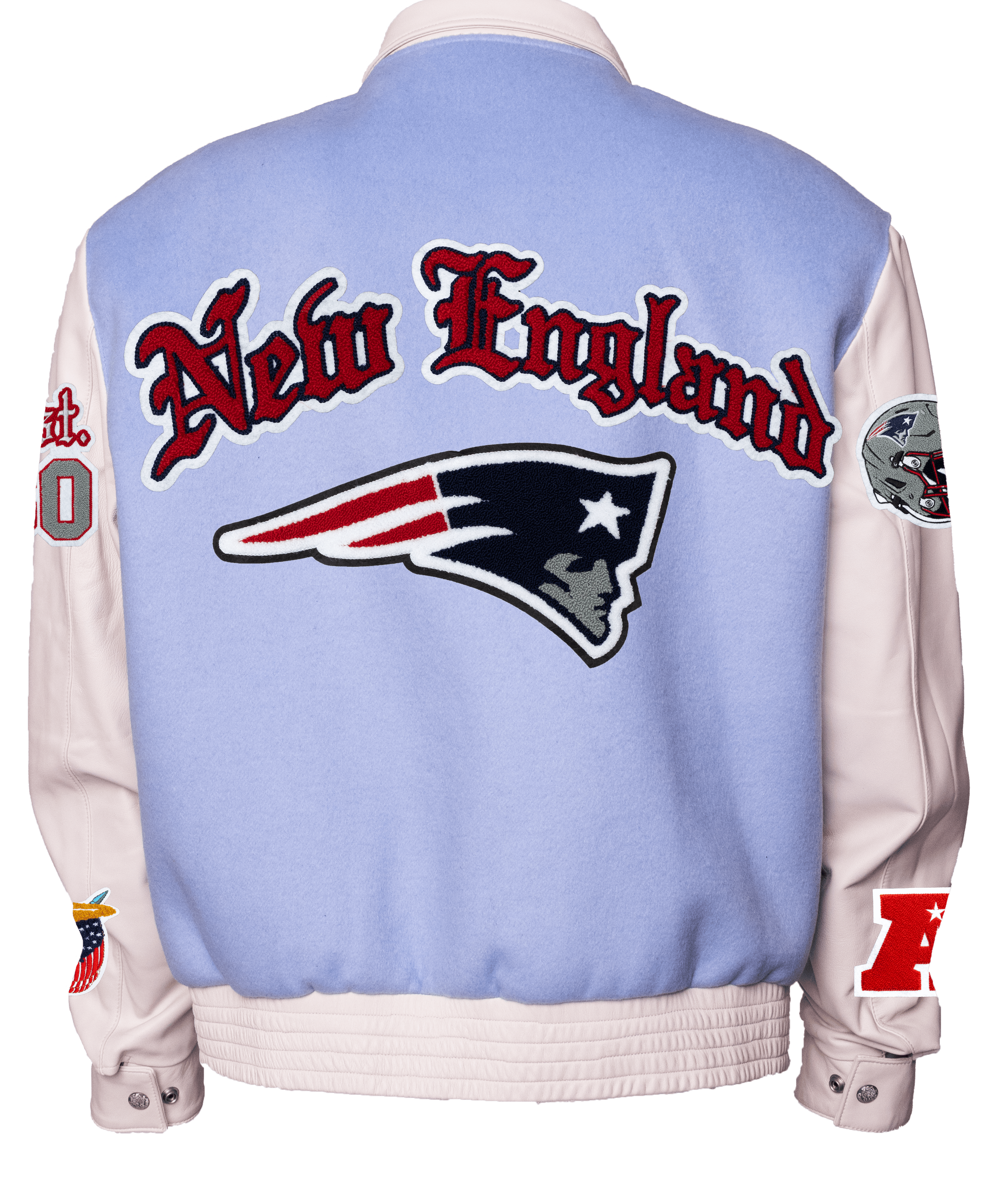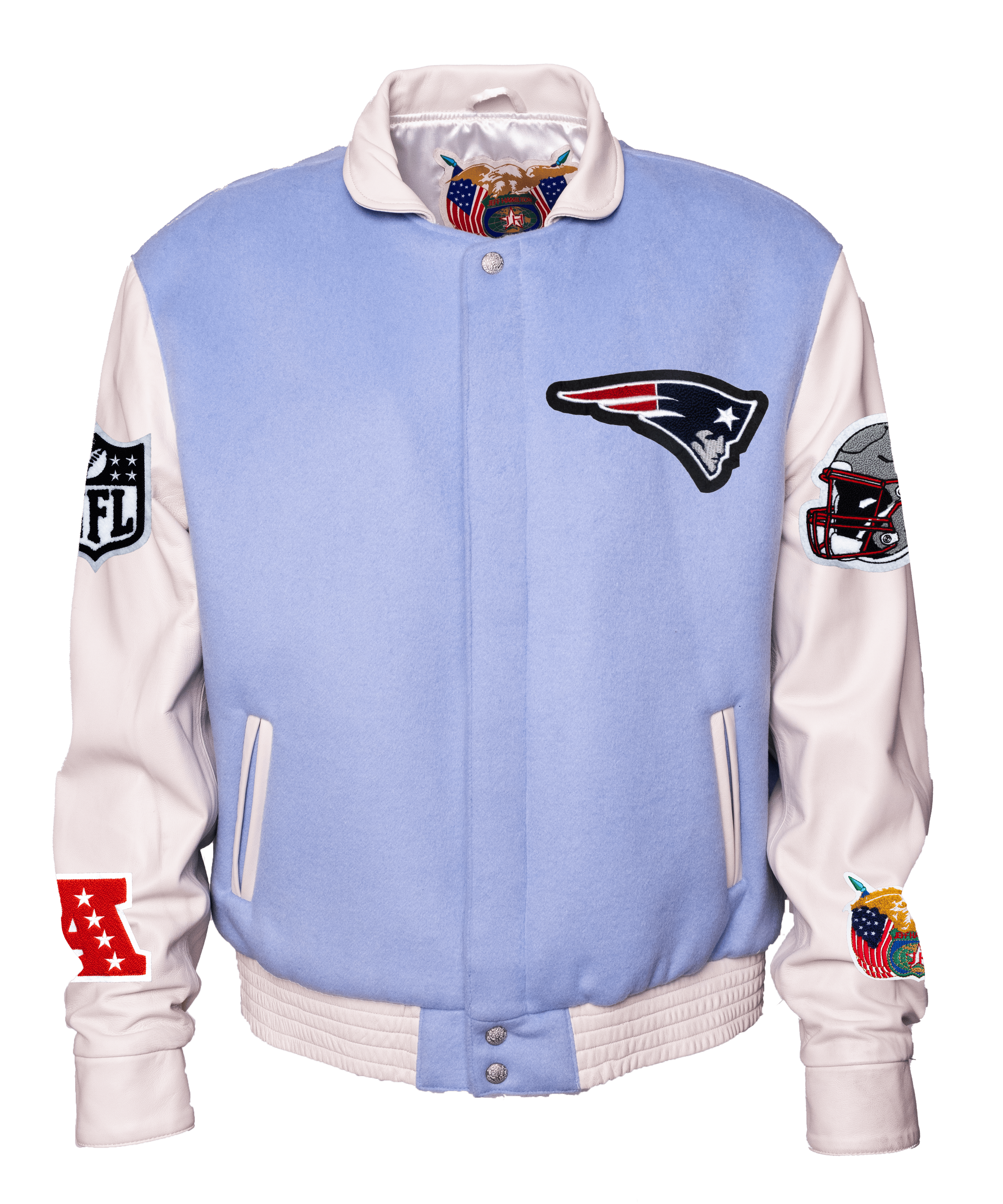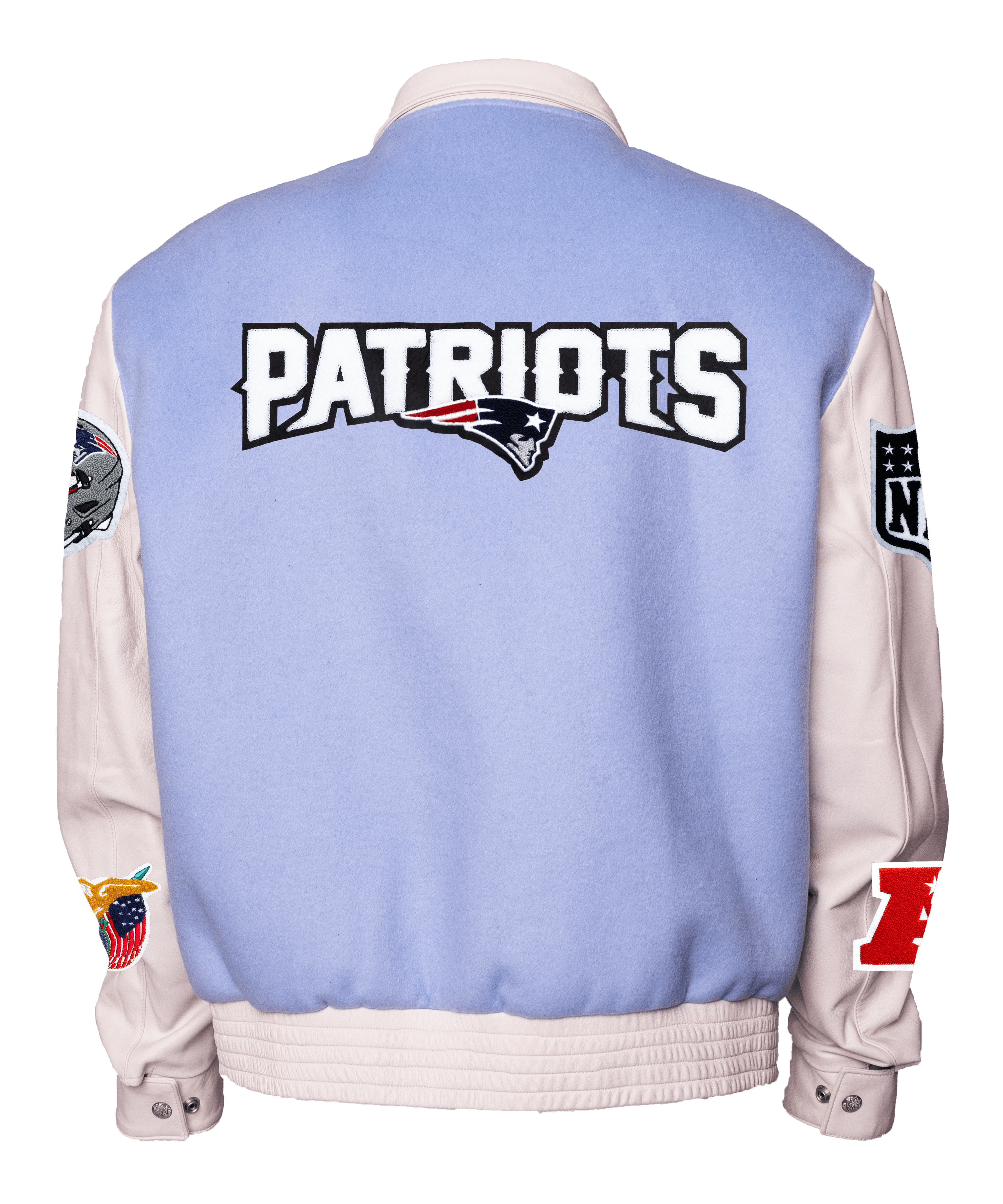 New England Patriots Wool & Leather Varsity Jacket Light Blue/White