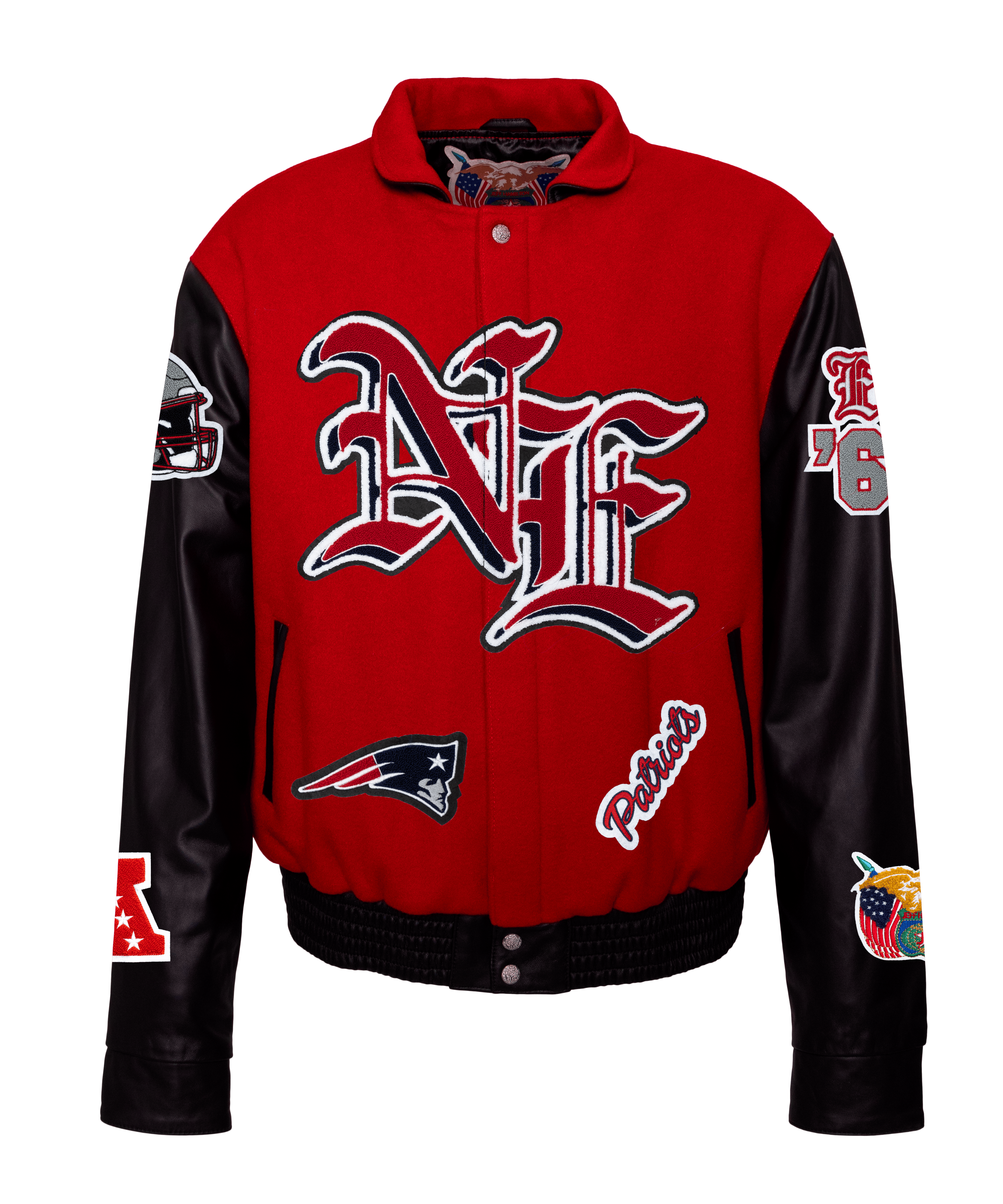 New England Patriots Wool & Leather Varsity Jacket Red/Black