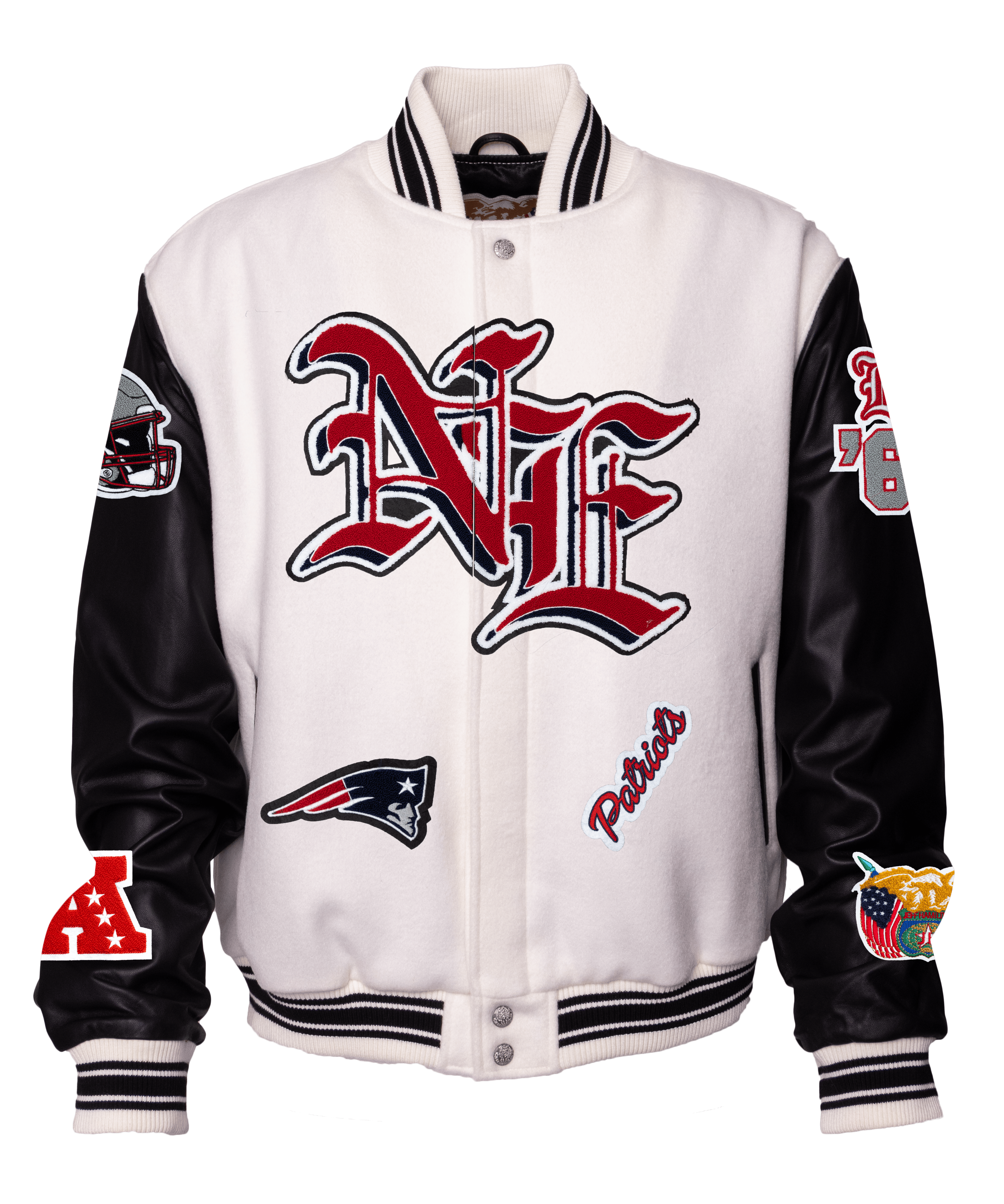 New England Patriots Wool & Leather Varsity Jacket White/Black