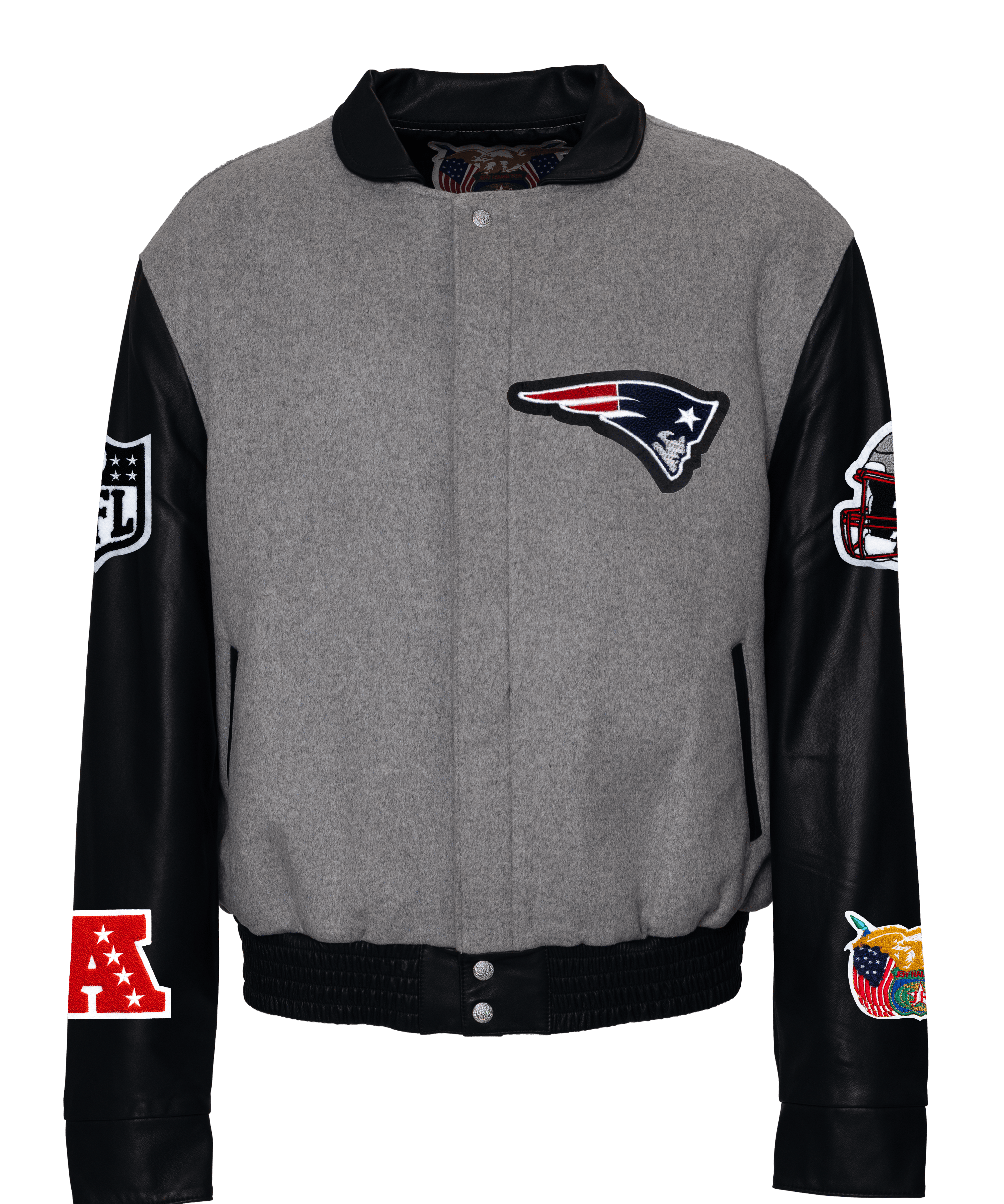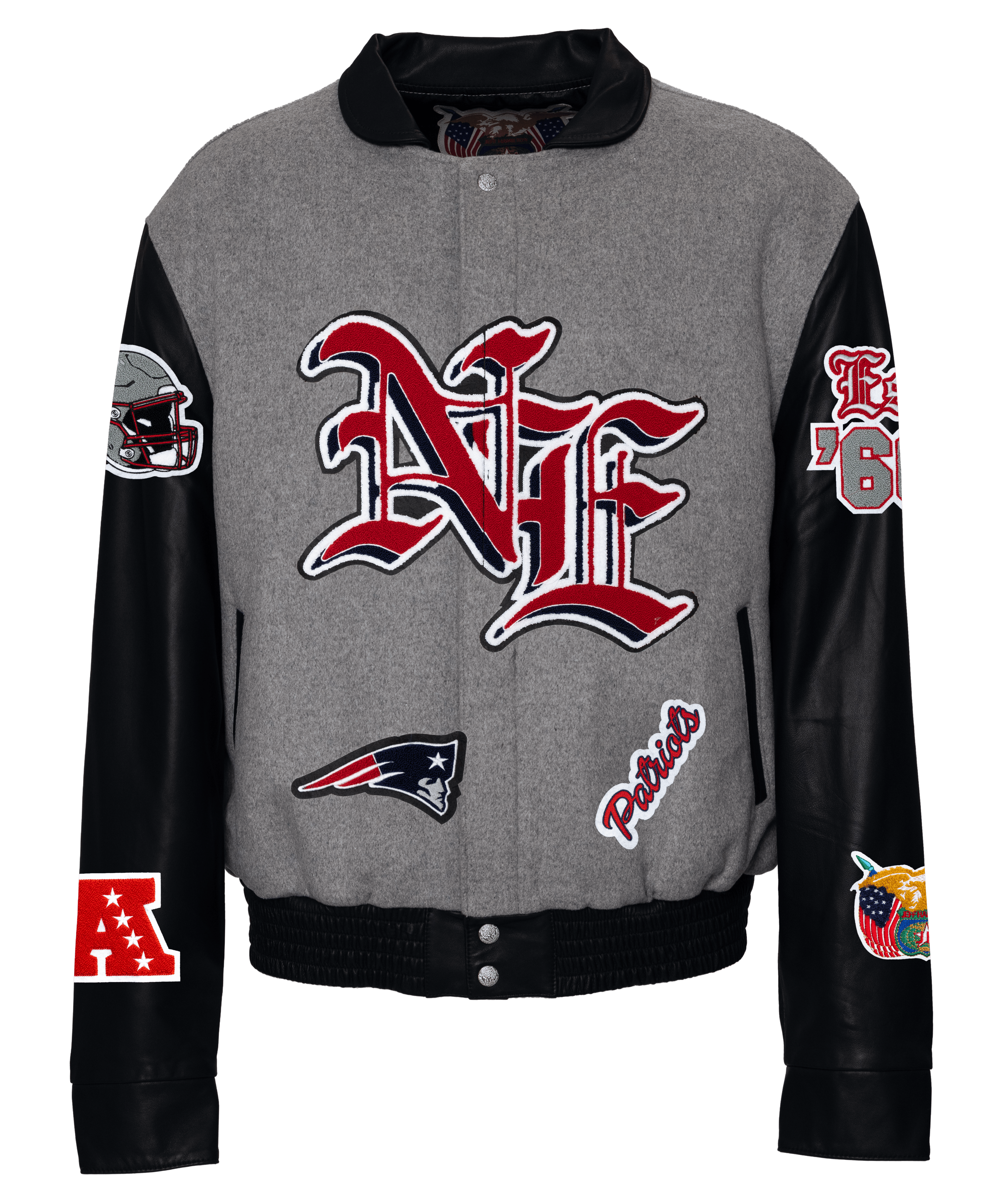 New England Patriots Wool & Leather Varsity Jacket Gray/Black
