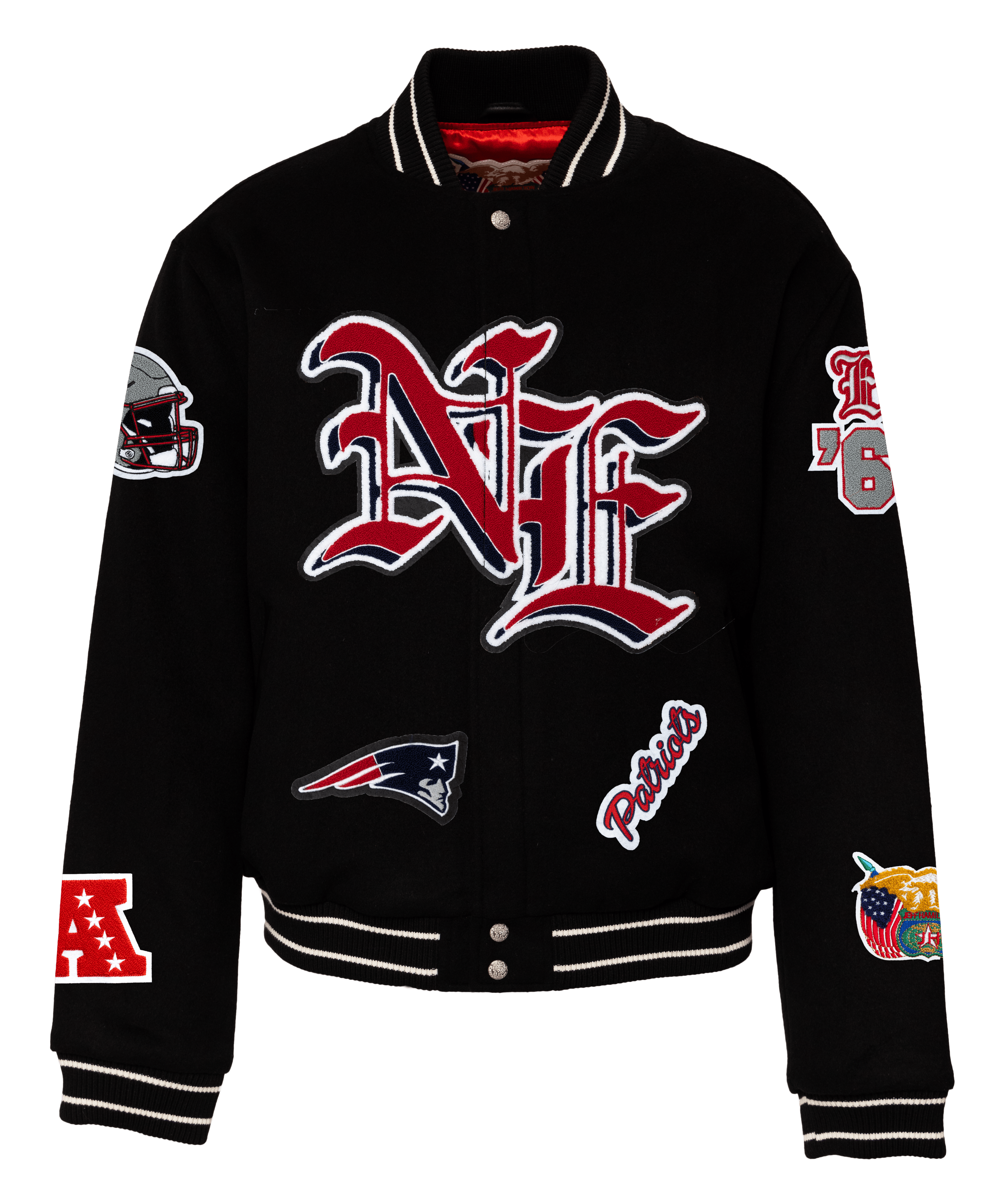 New England Patriots Wool & Leather Old English Varsity Jacket