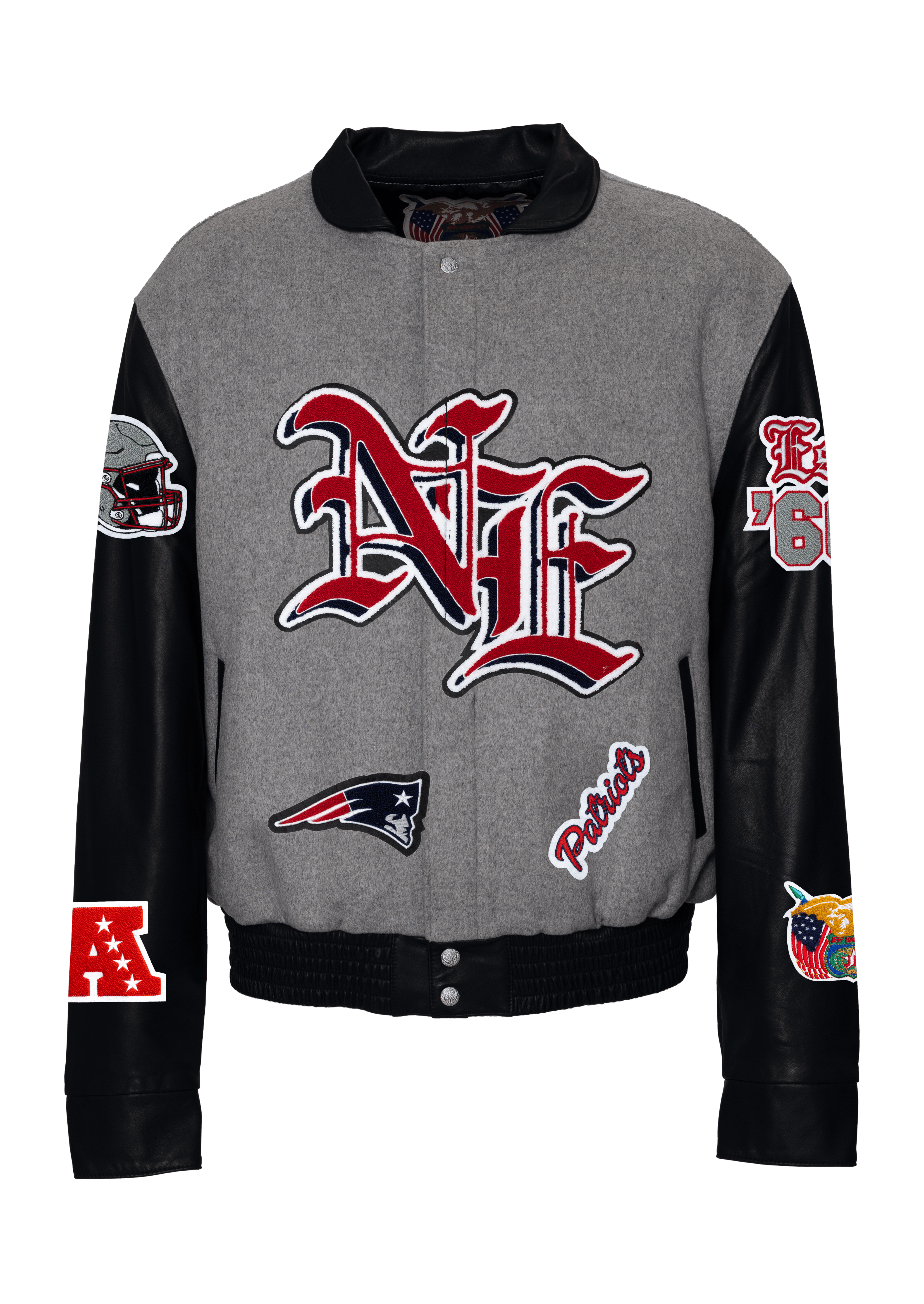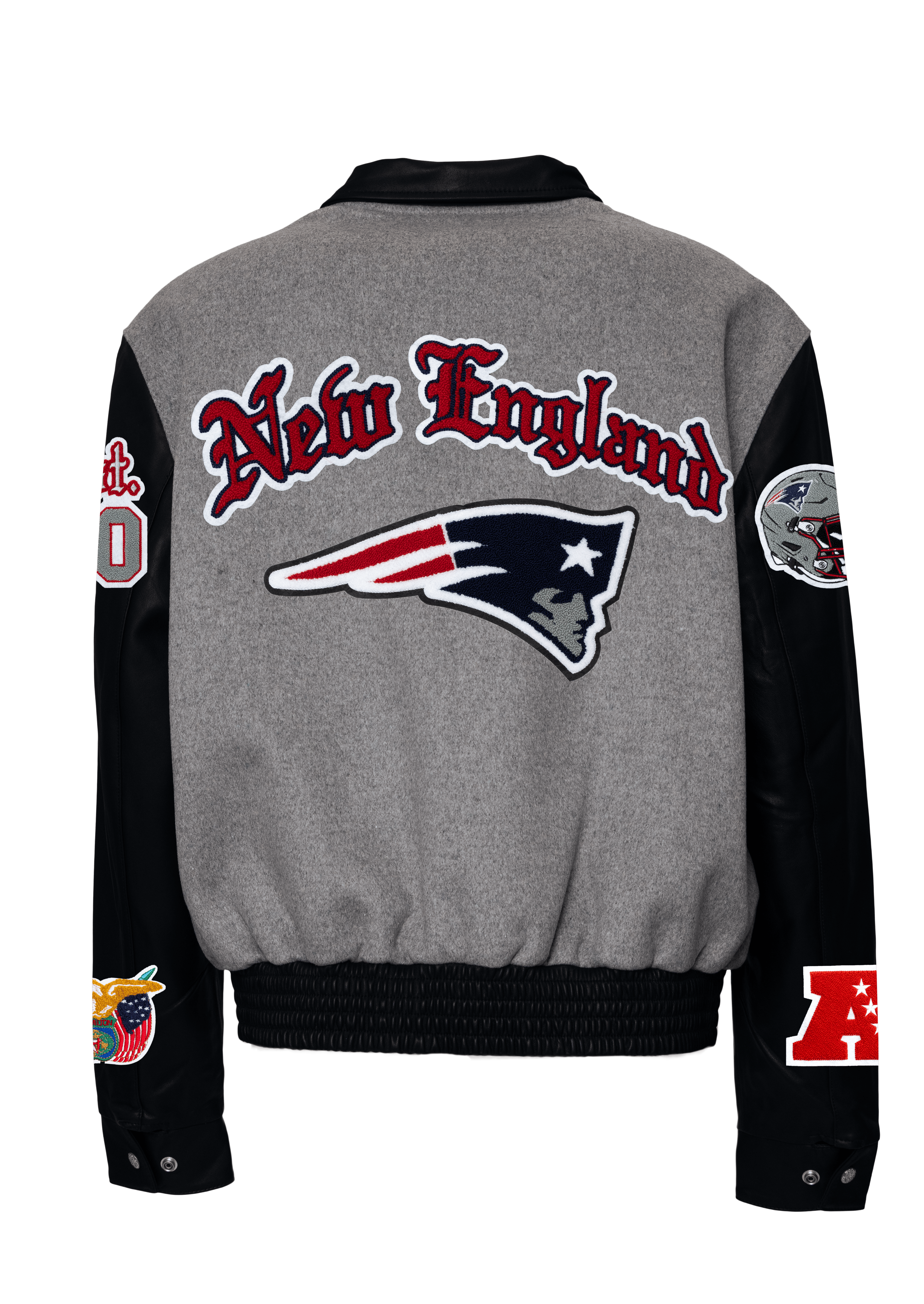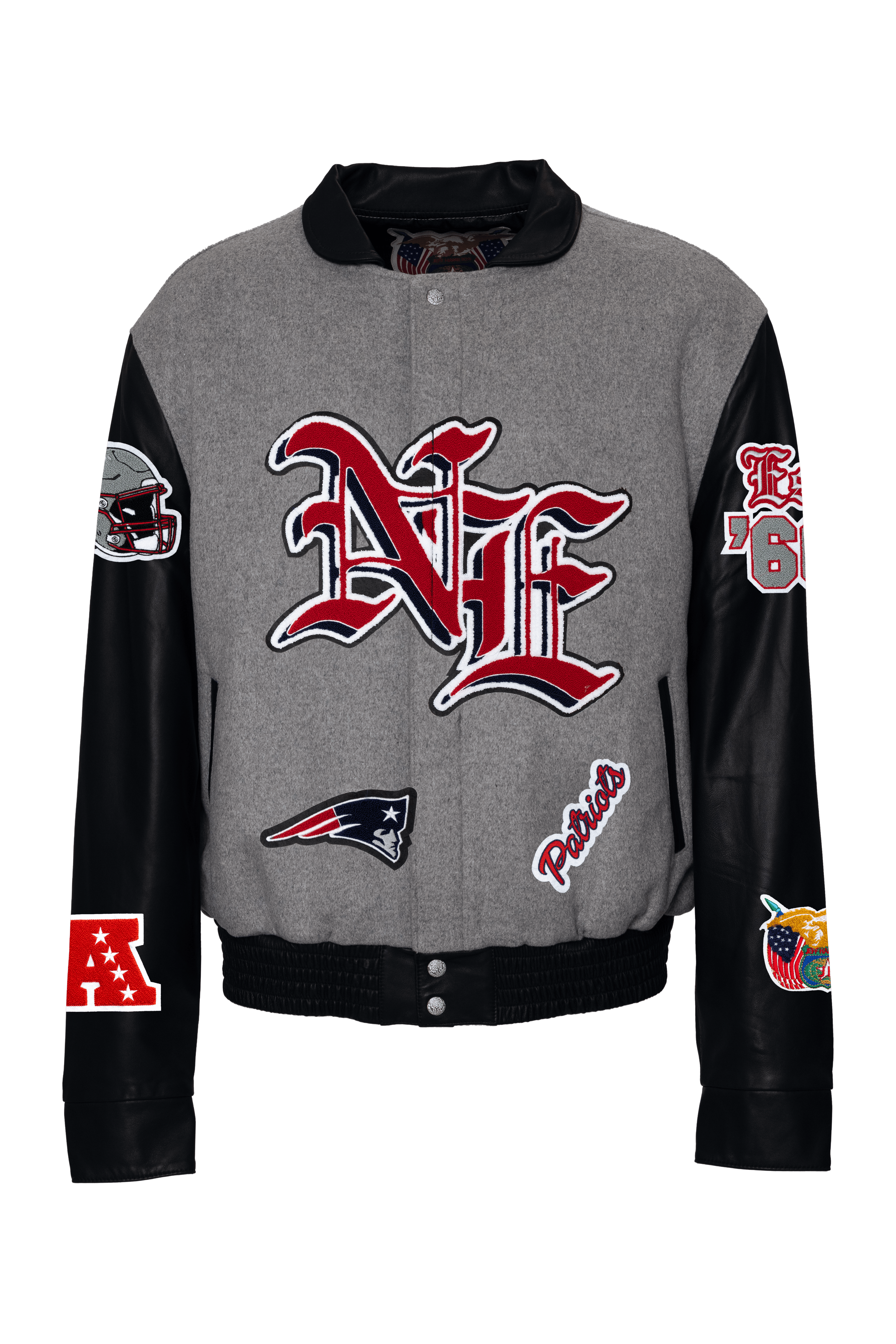 New England Patriots Wool & Leather Old English Varsity Jacket Gray/Black