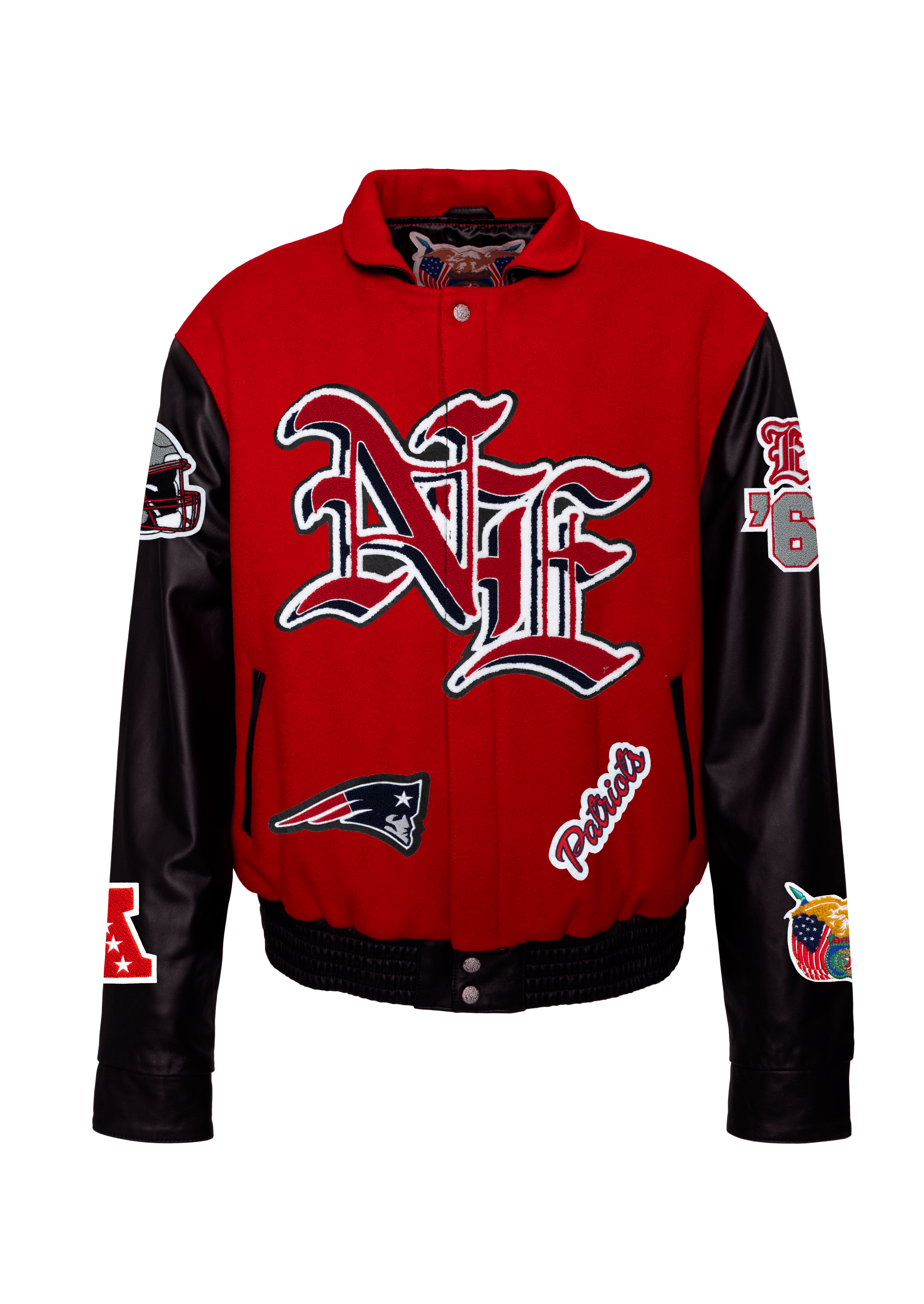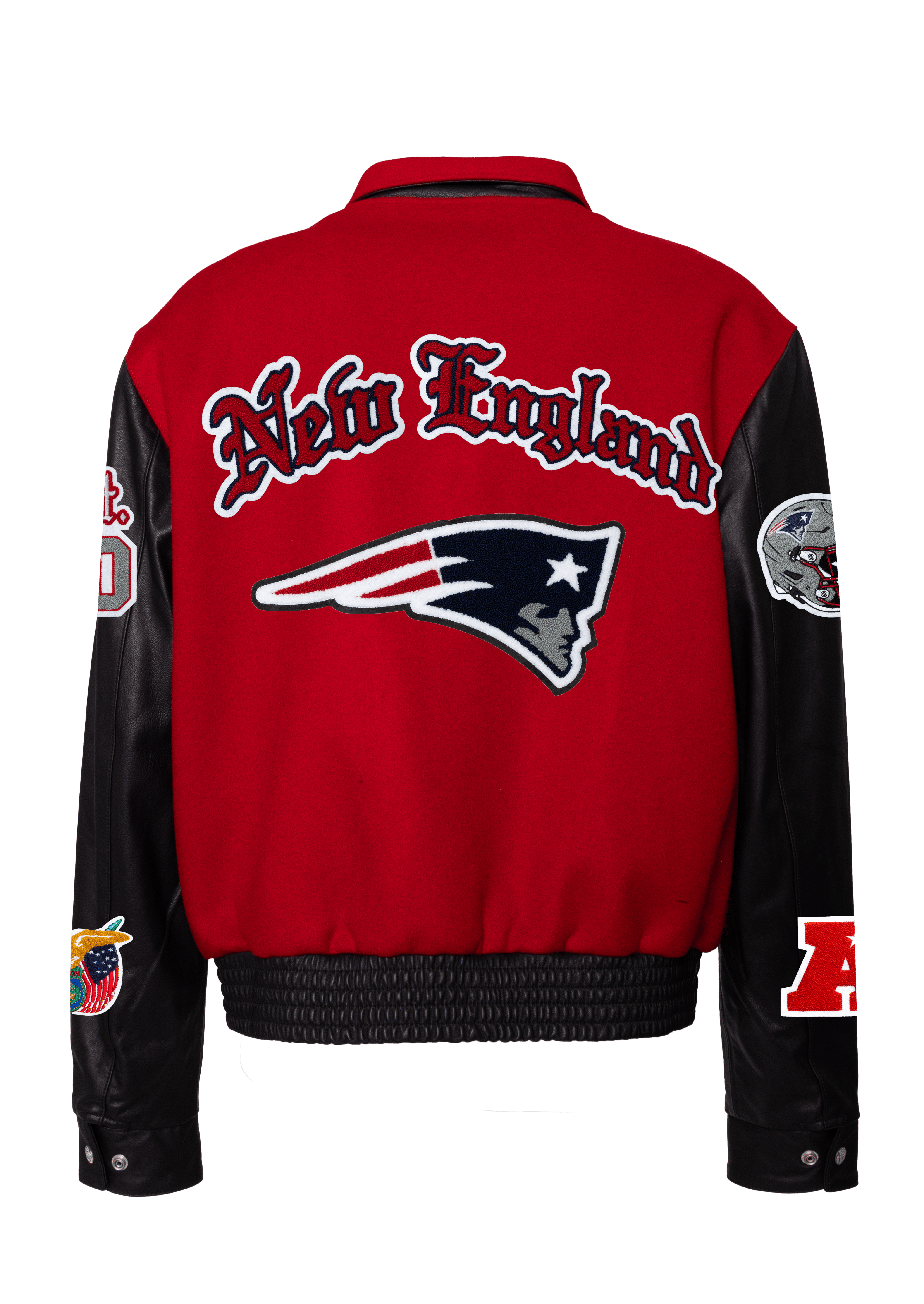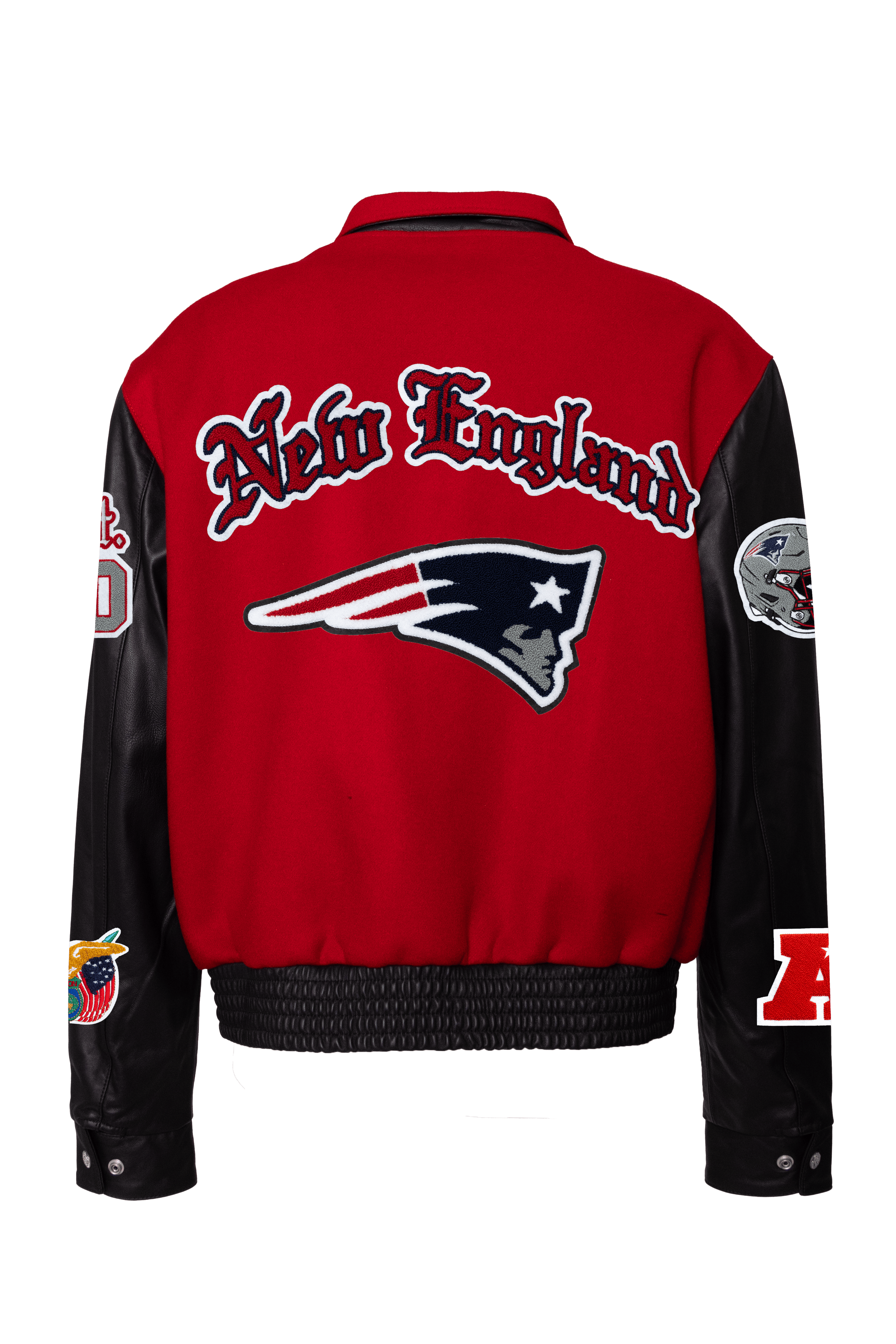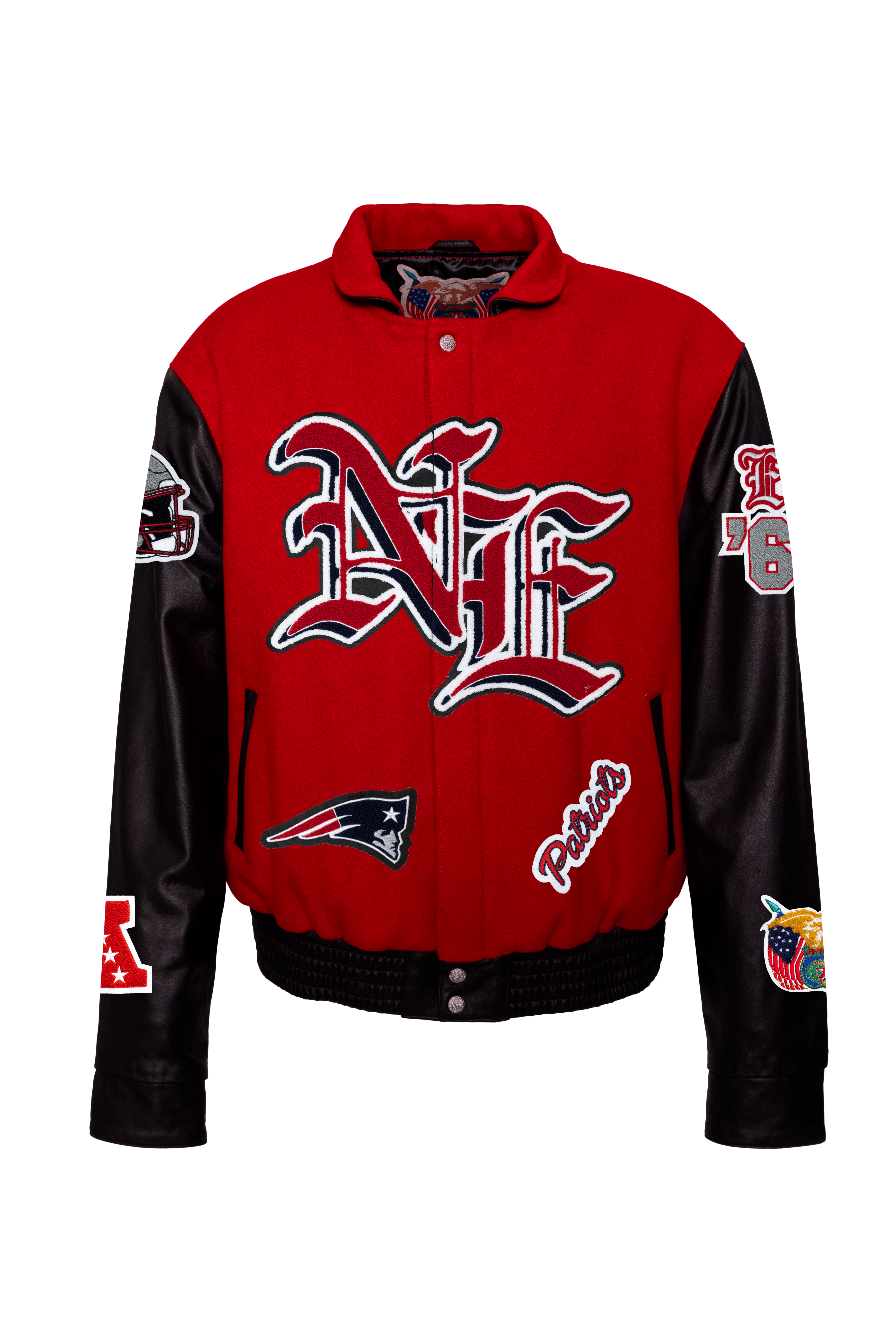 New England Patriots Wool & Leather Old English Varsity Jacket Light Red/Black