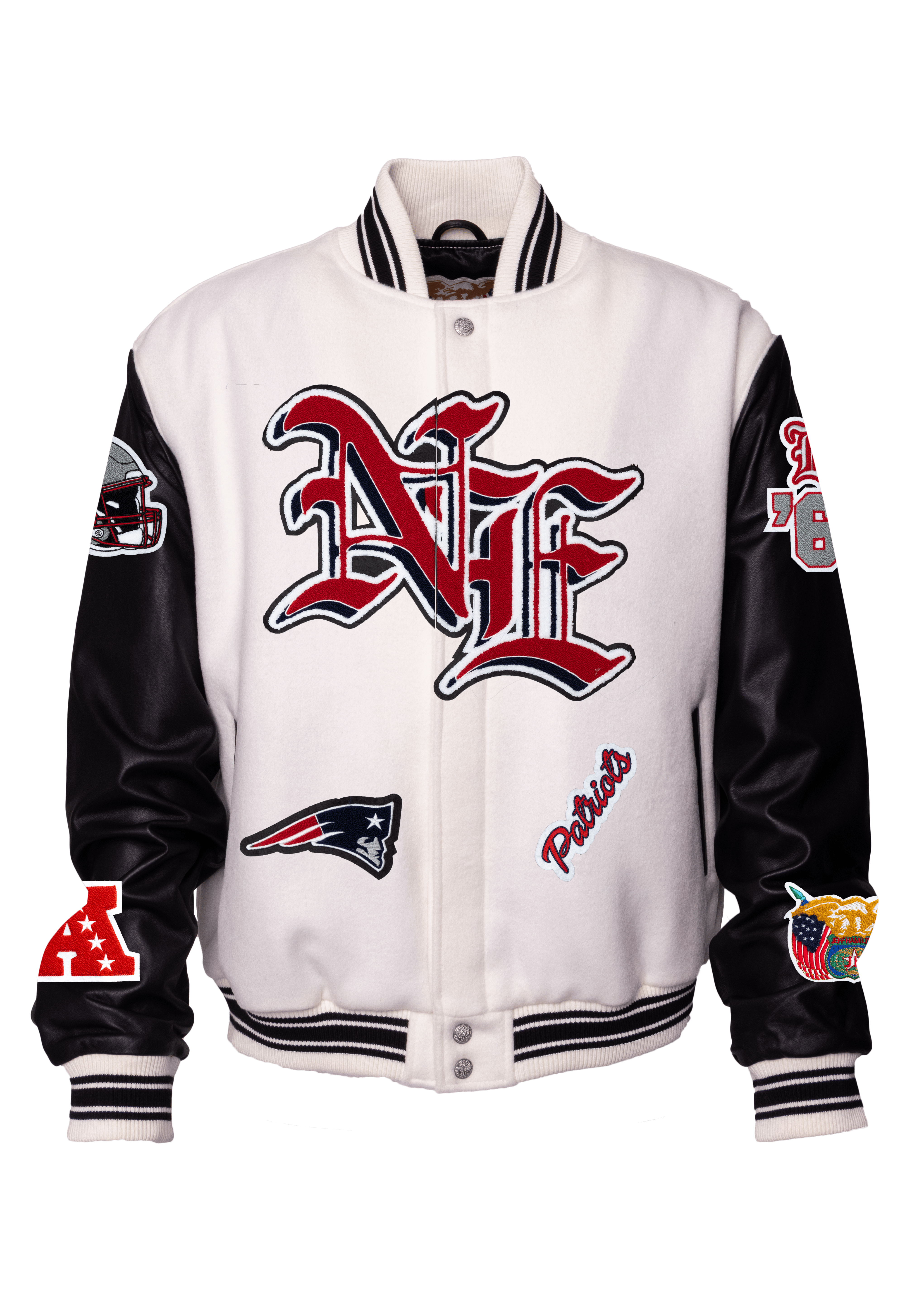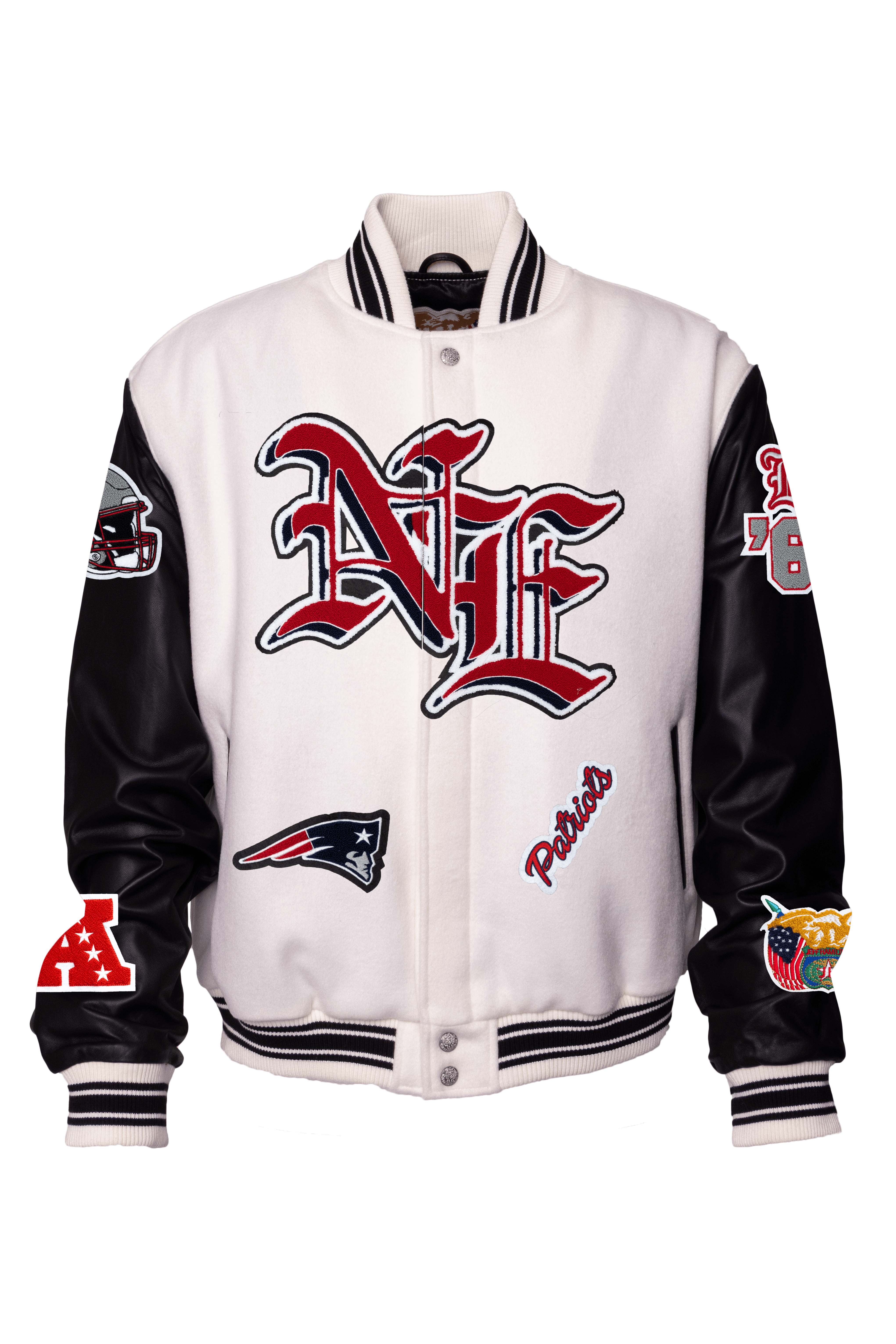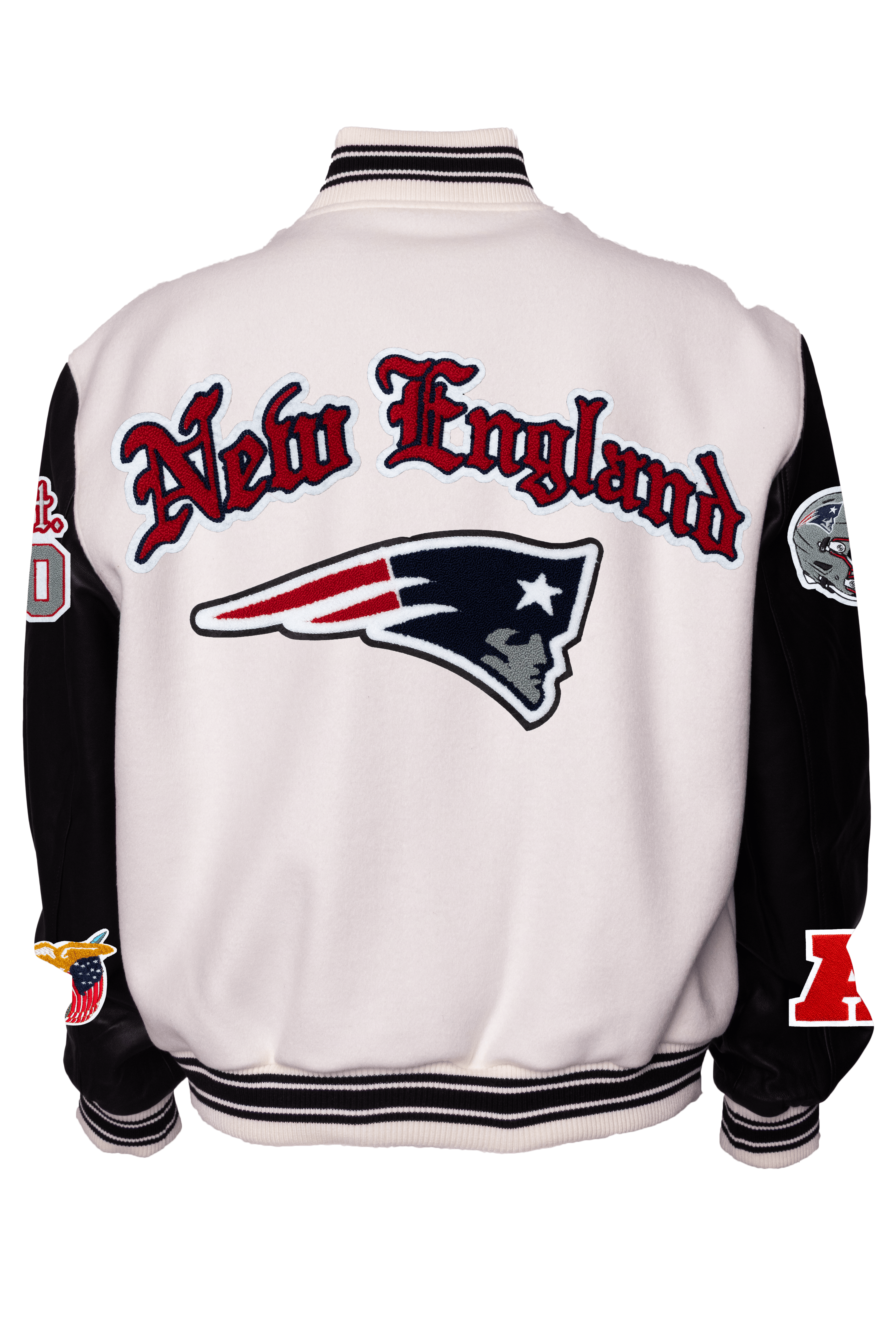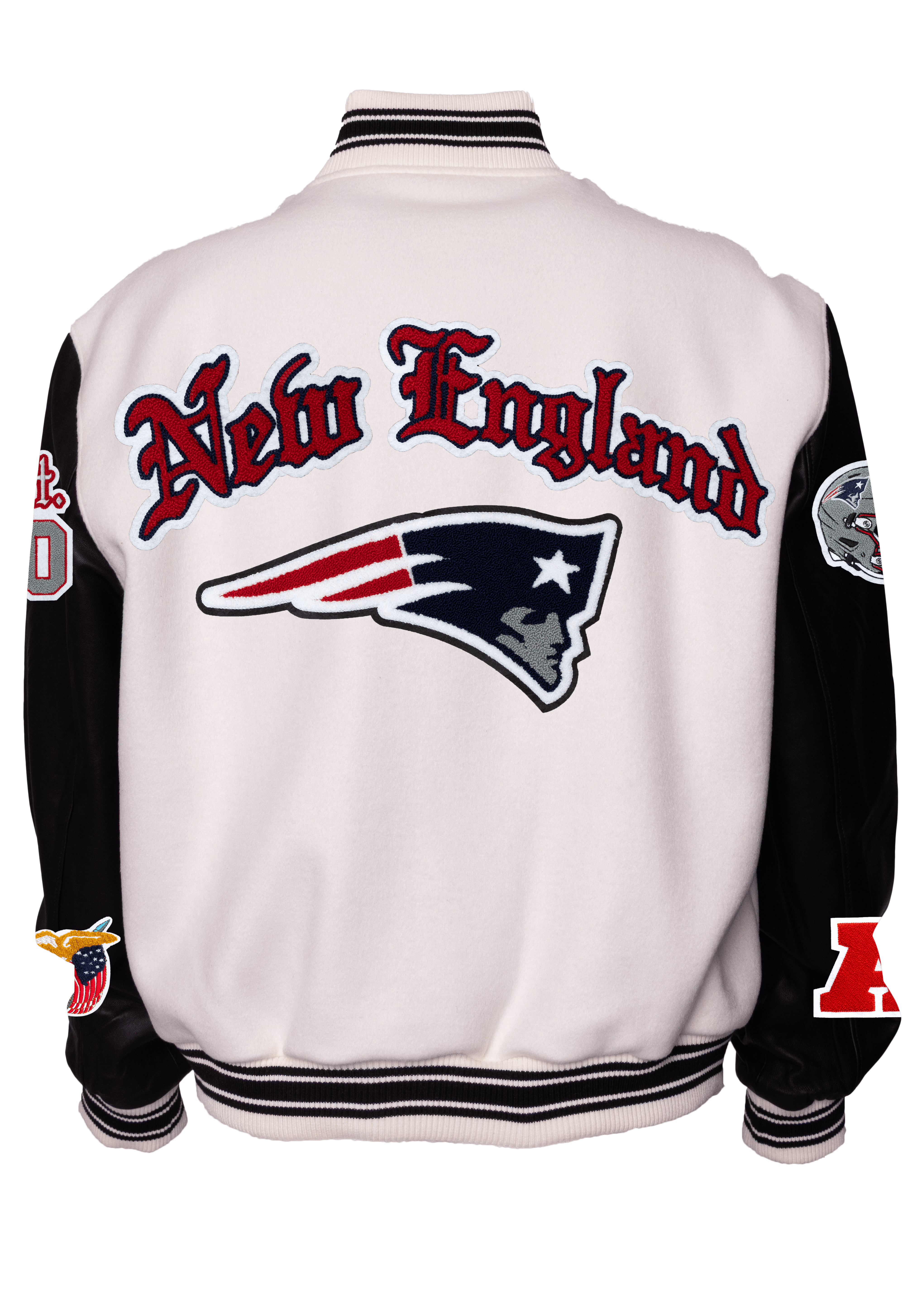 New England Patriots Wool & Leather Old English Varsity Jacket Light White/Black