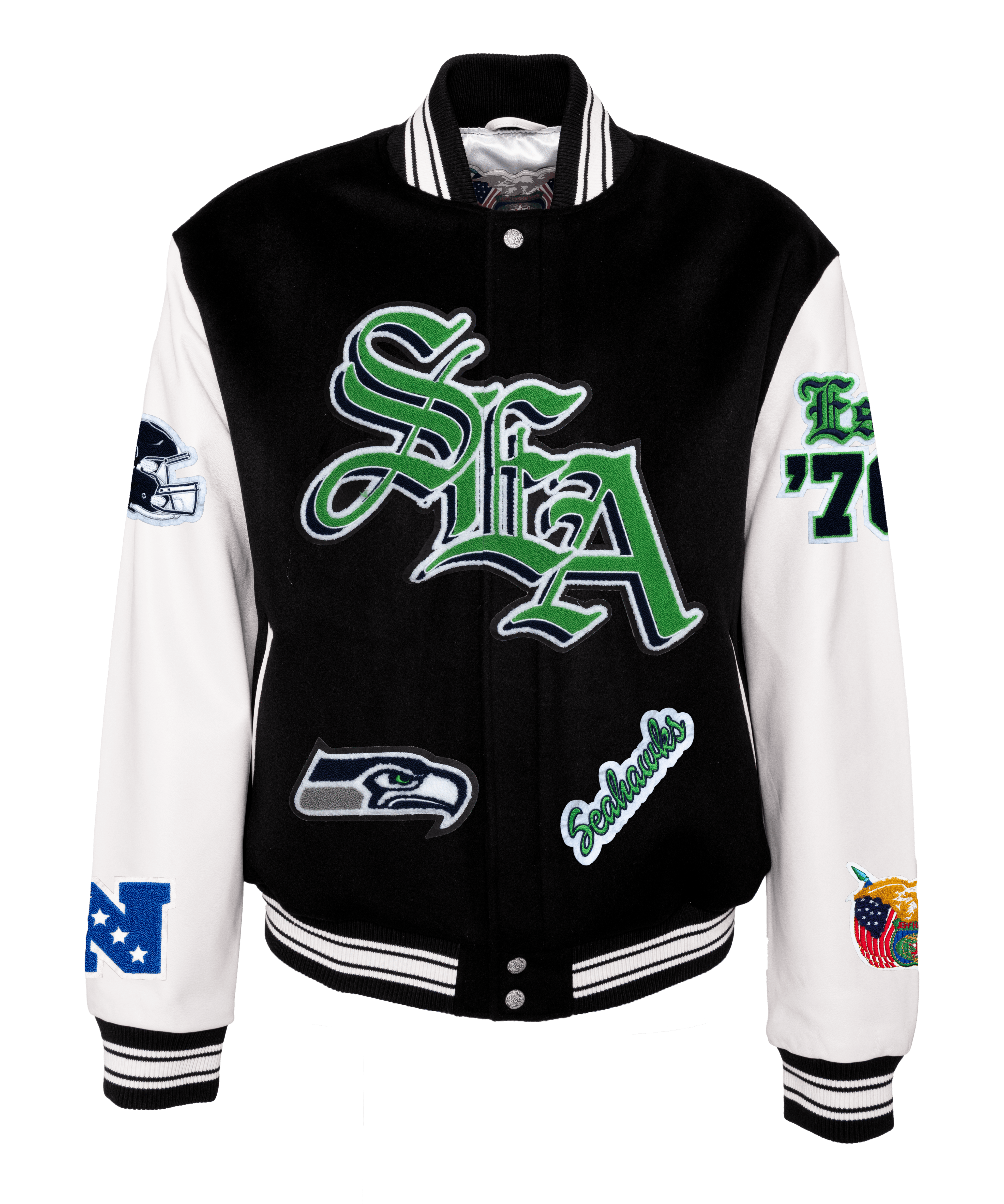 Seattle Seahawks Wool & Leather Jacket Black/White