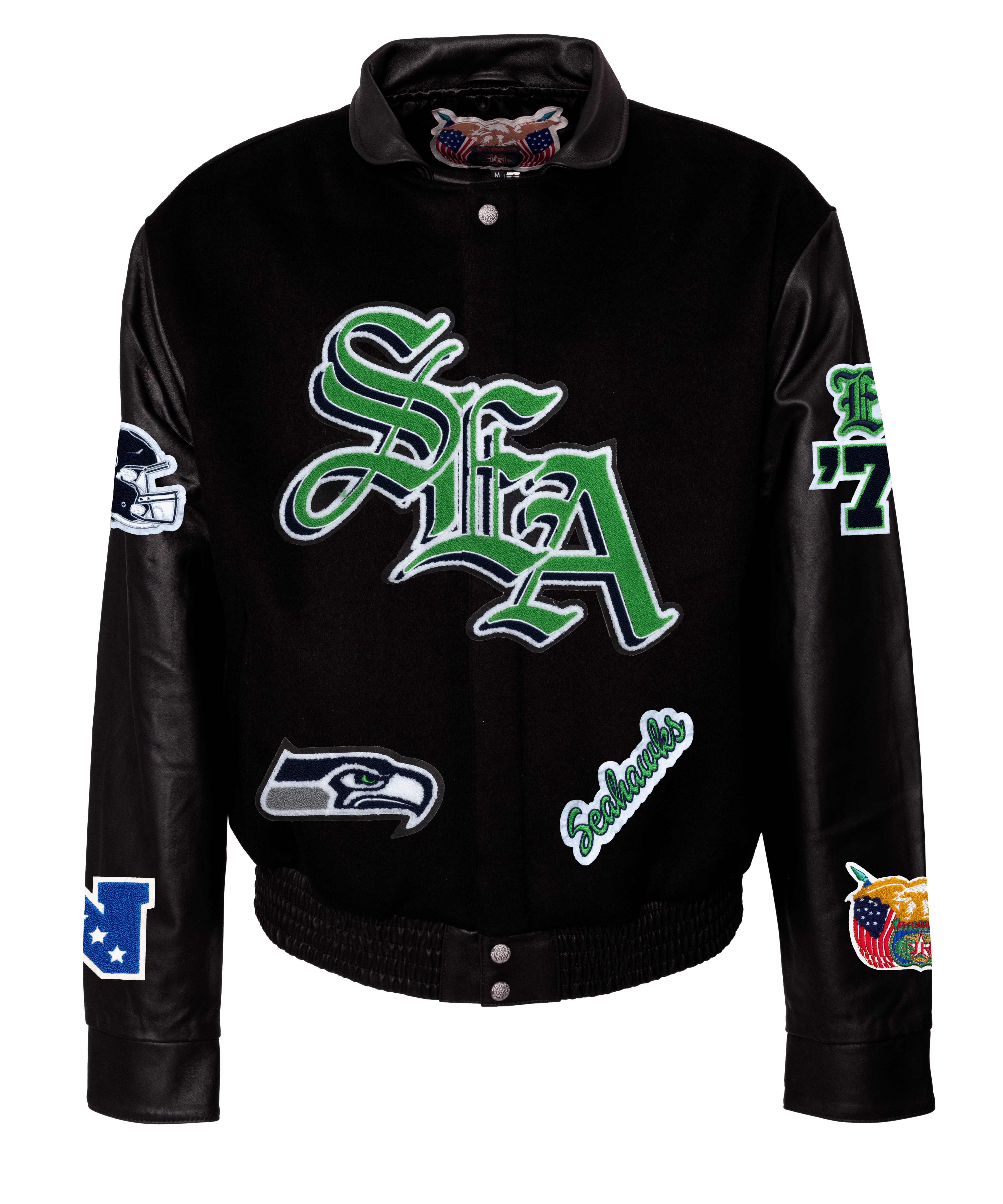 Seattle Seahawks Wool & Leather Jacket Old English Black On Black