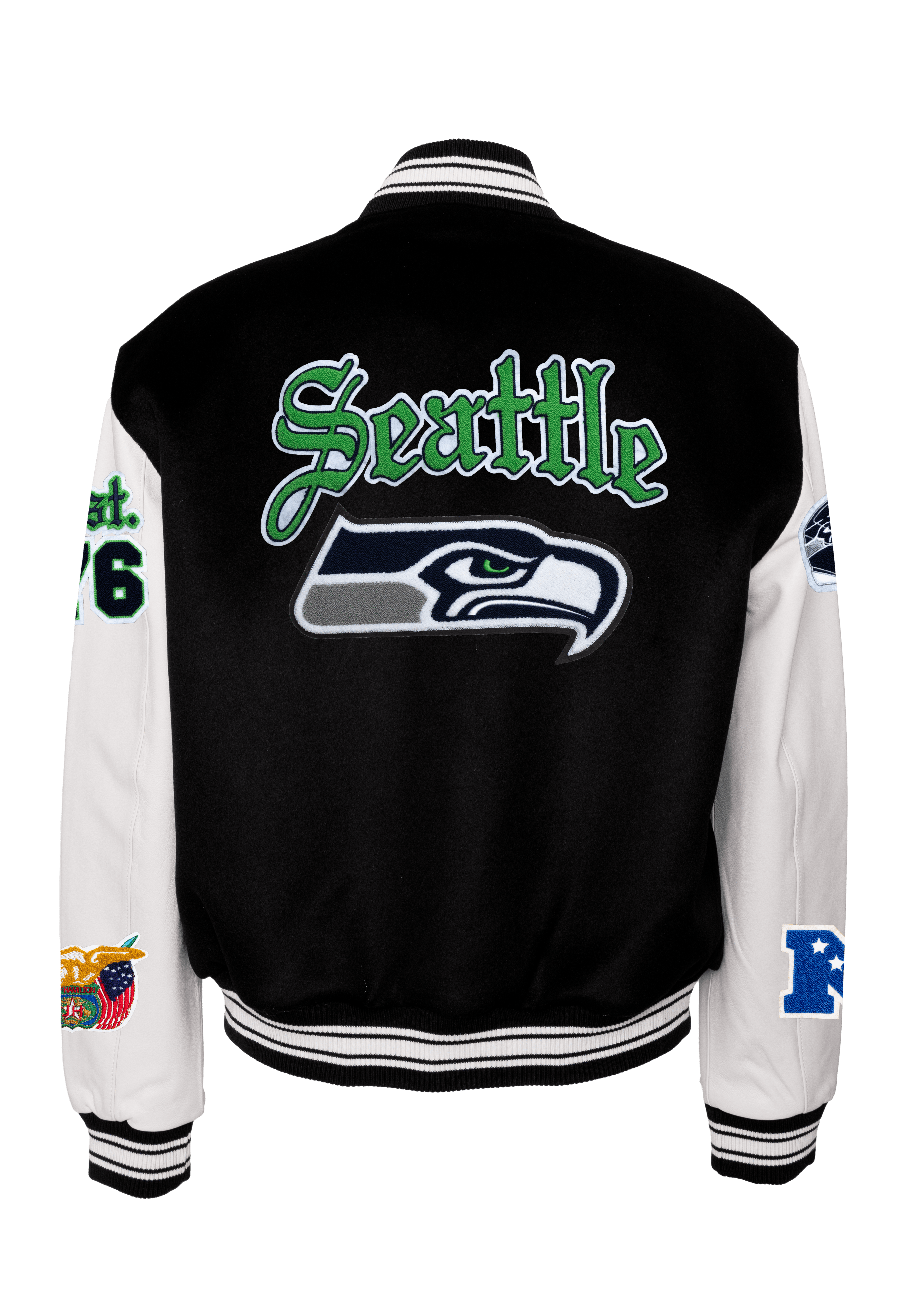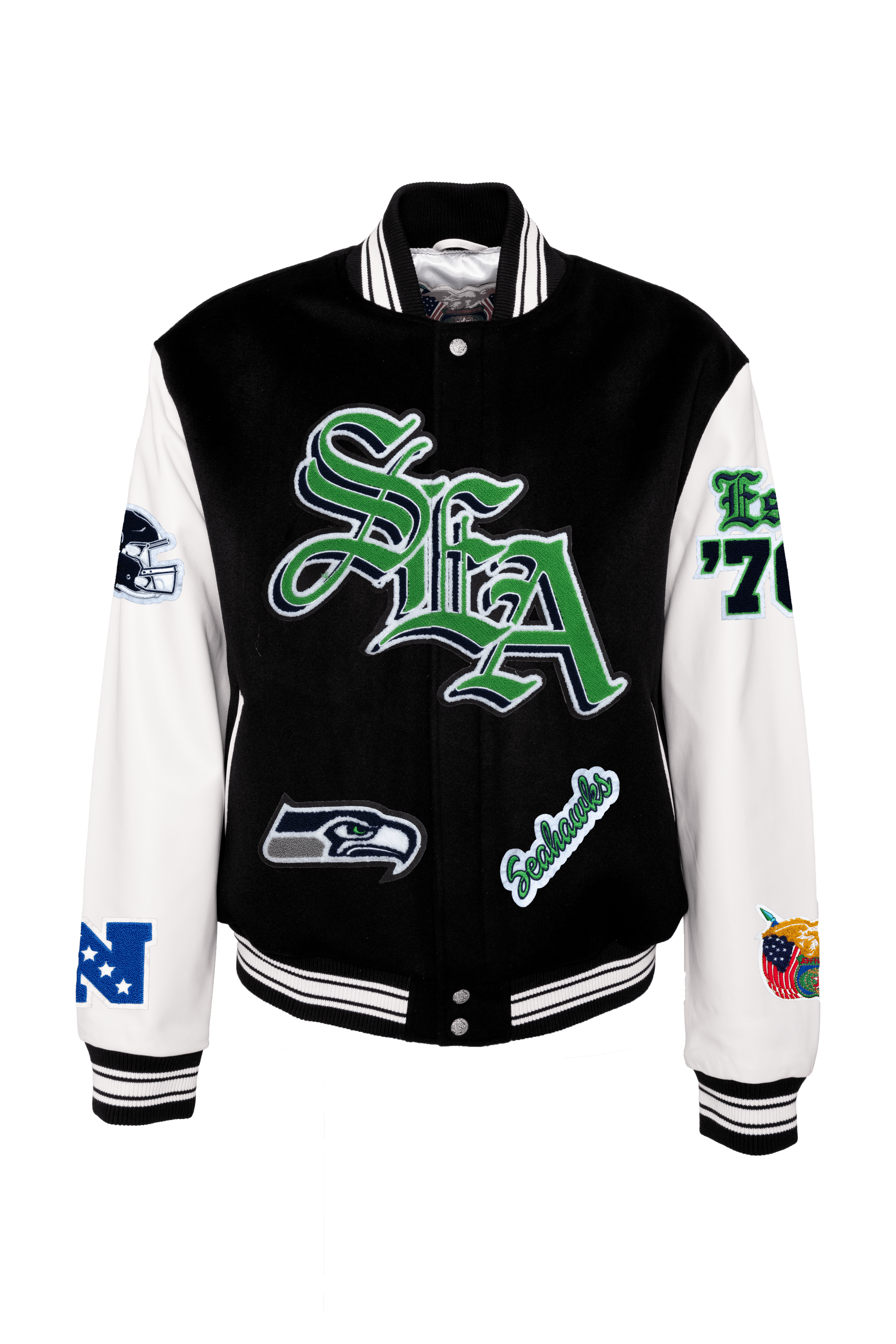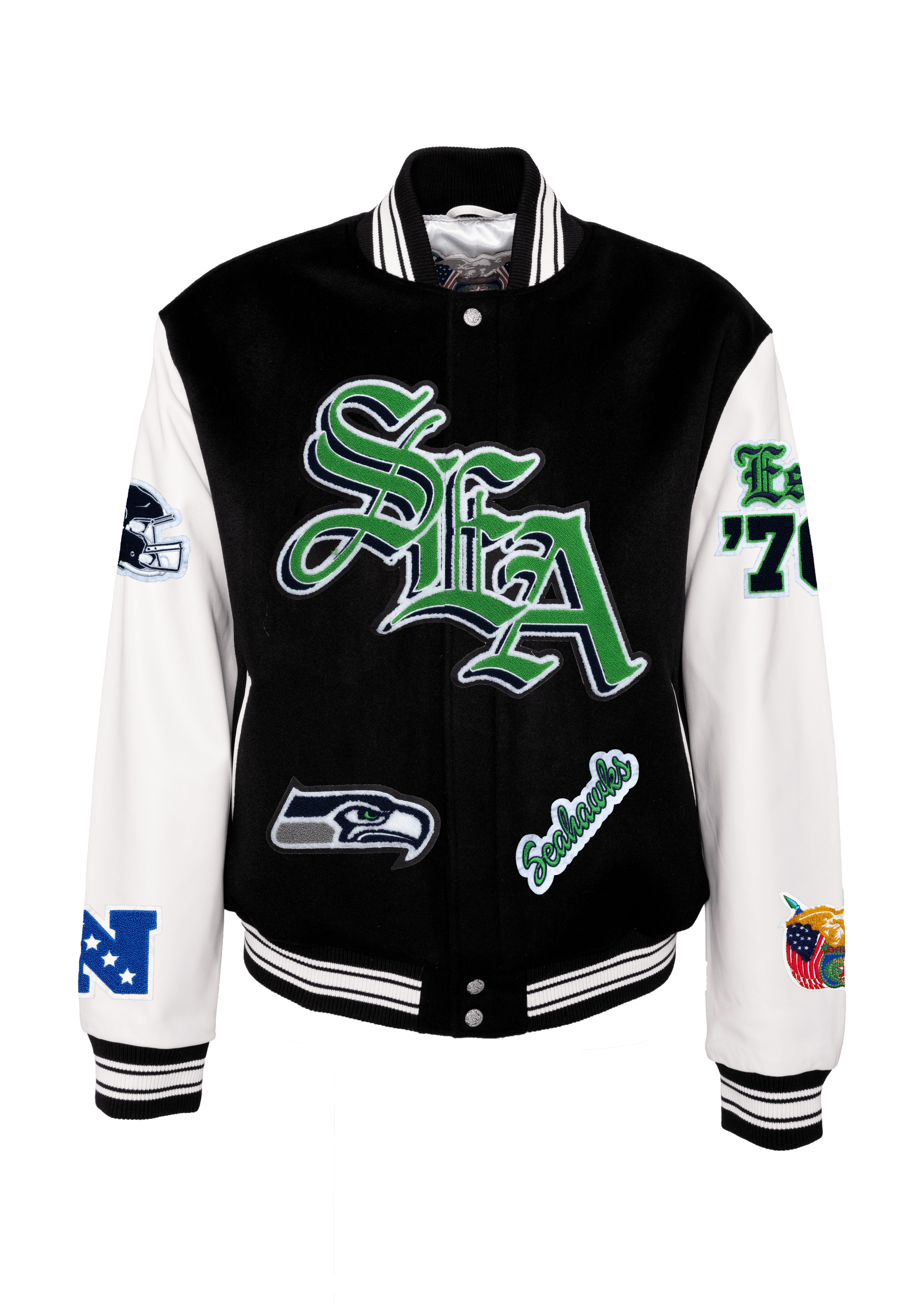 Seattle Seahawks Wool & Leather Old English Jacket Black/White