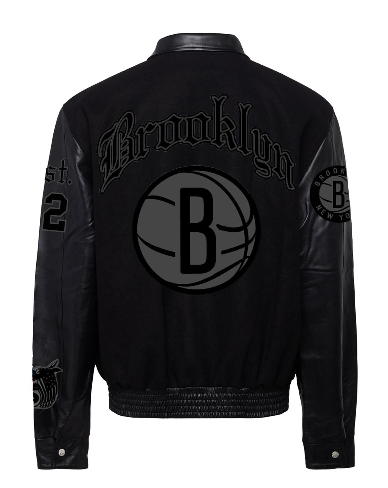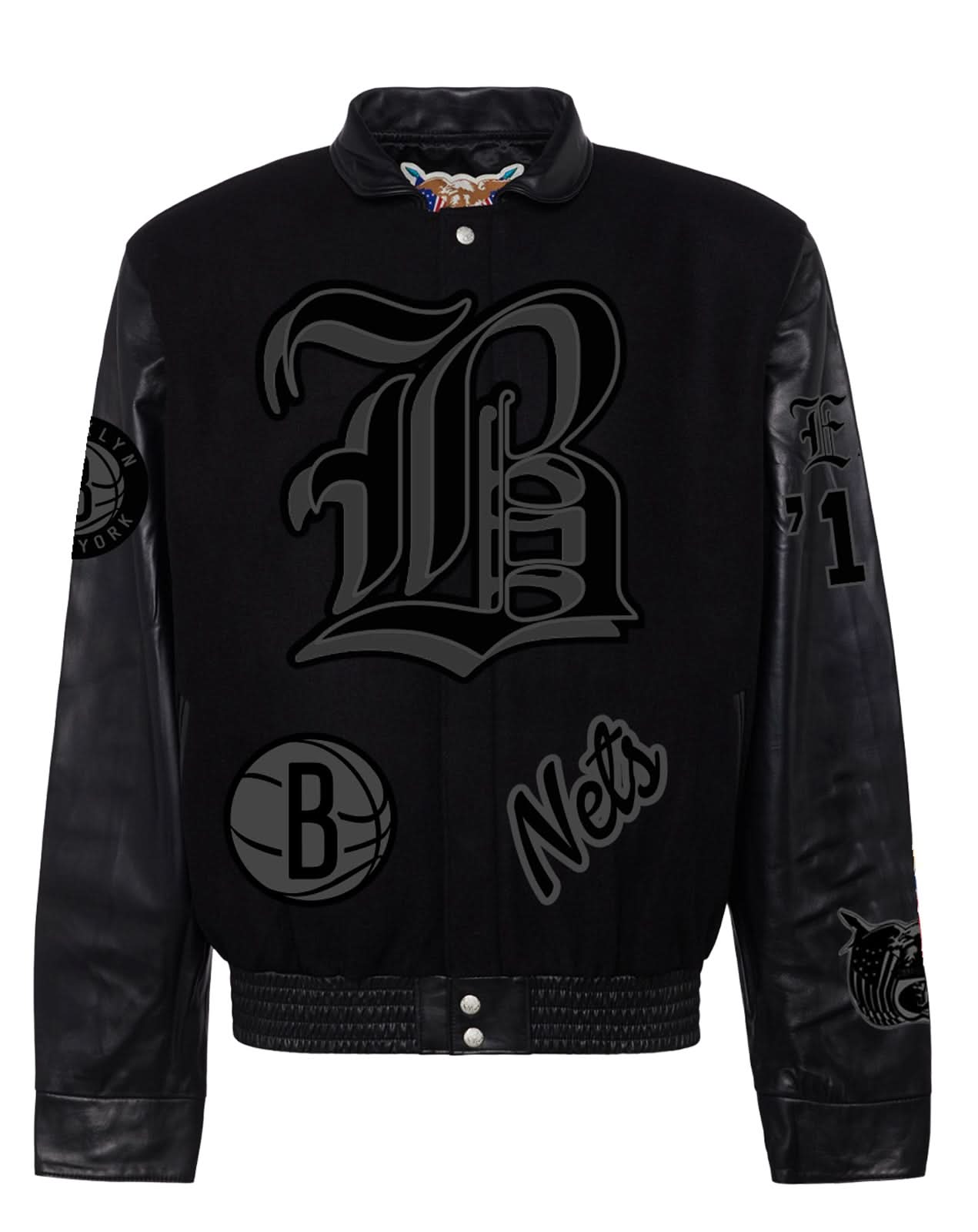 Brooklyn Nets Wool & Leather Old English Varsity Jacket Black/Black