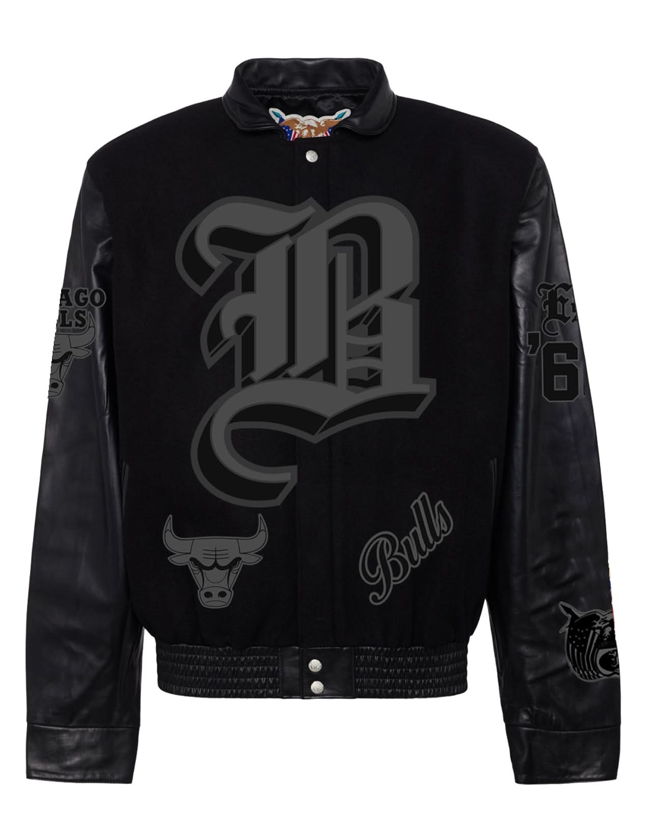 Chicago Bulls Wool & Leather Old English Varsity Jacket Black/Black