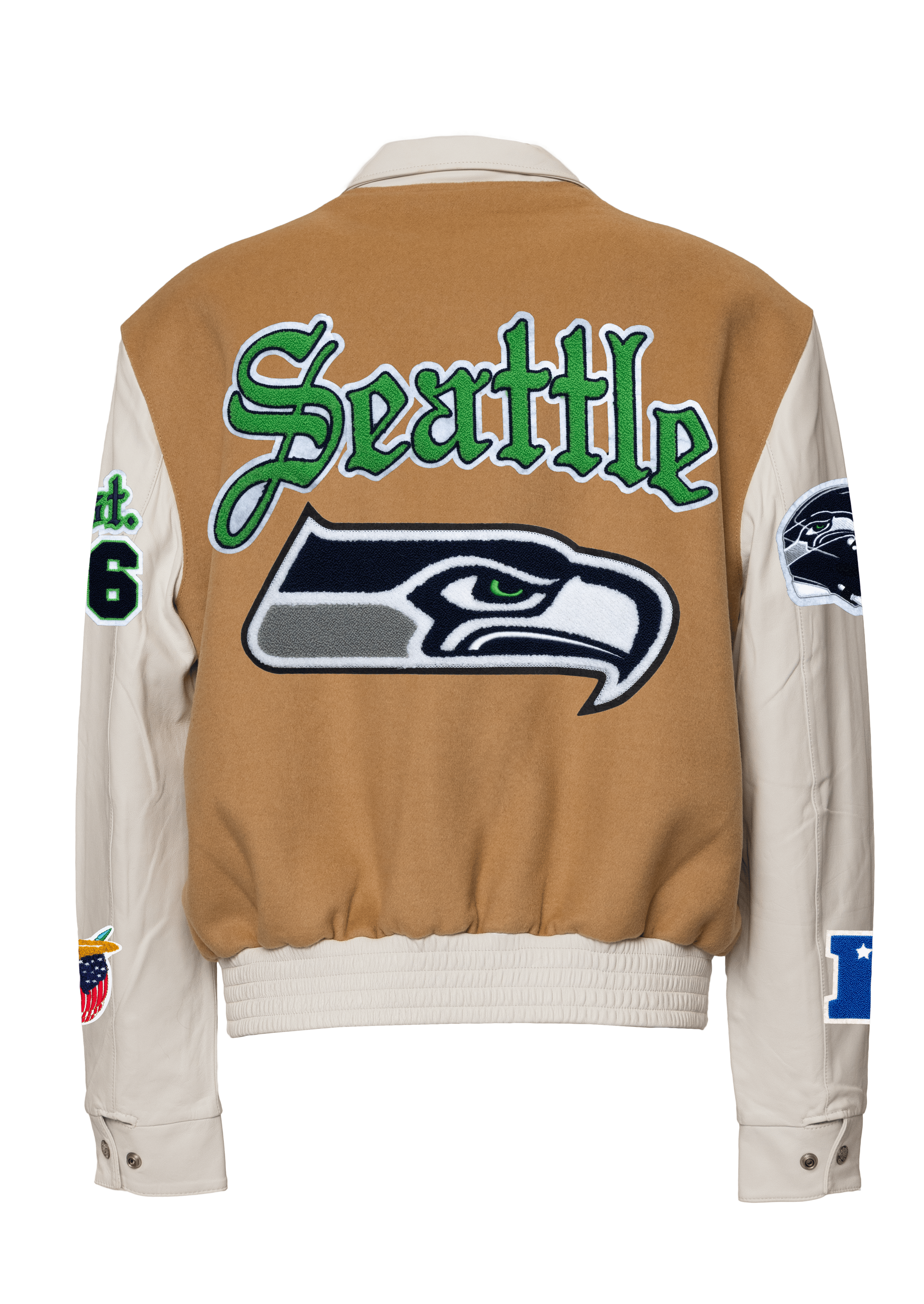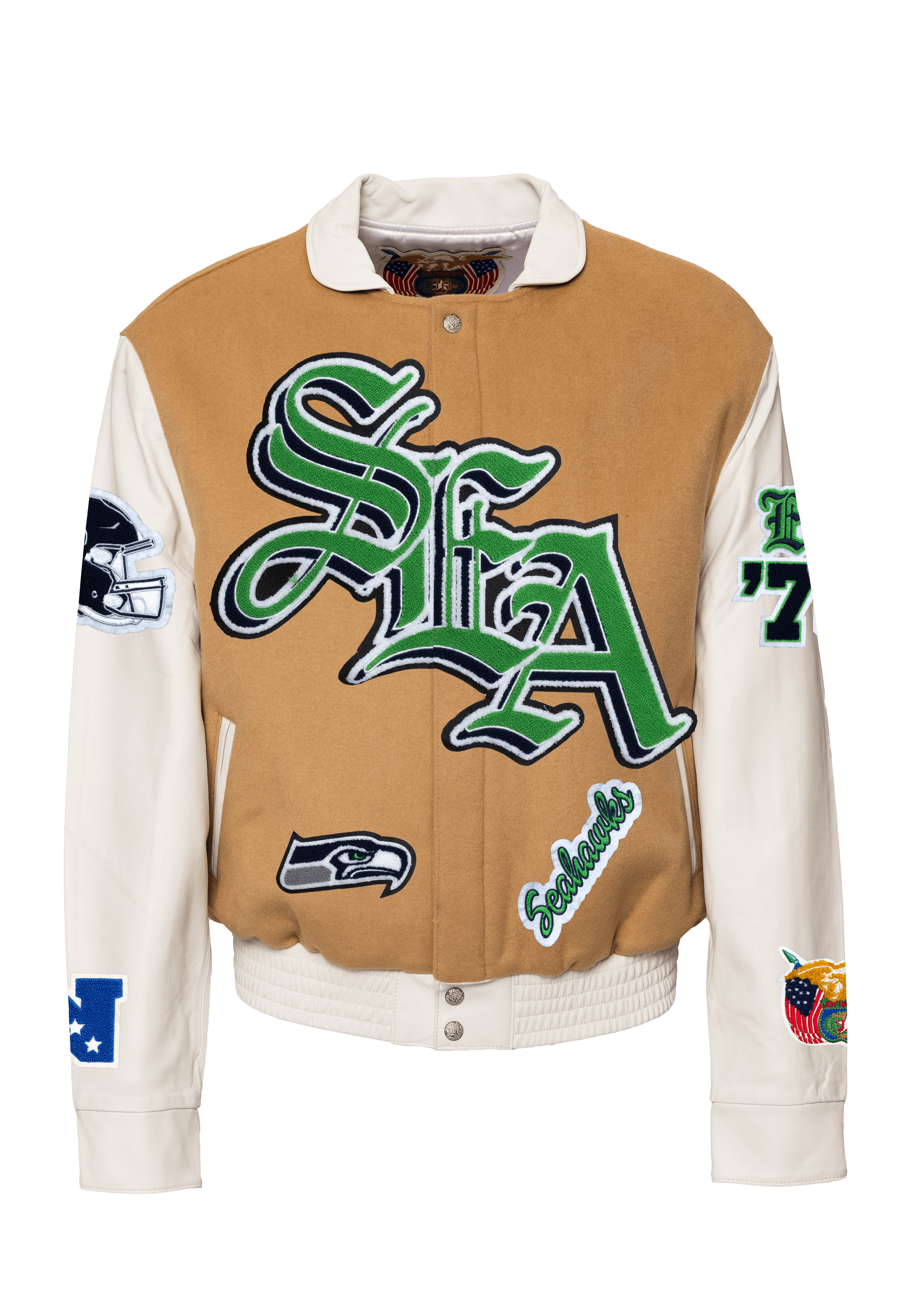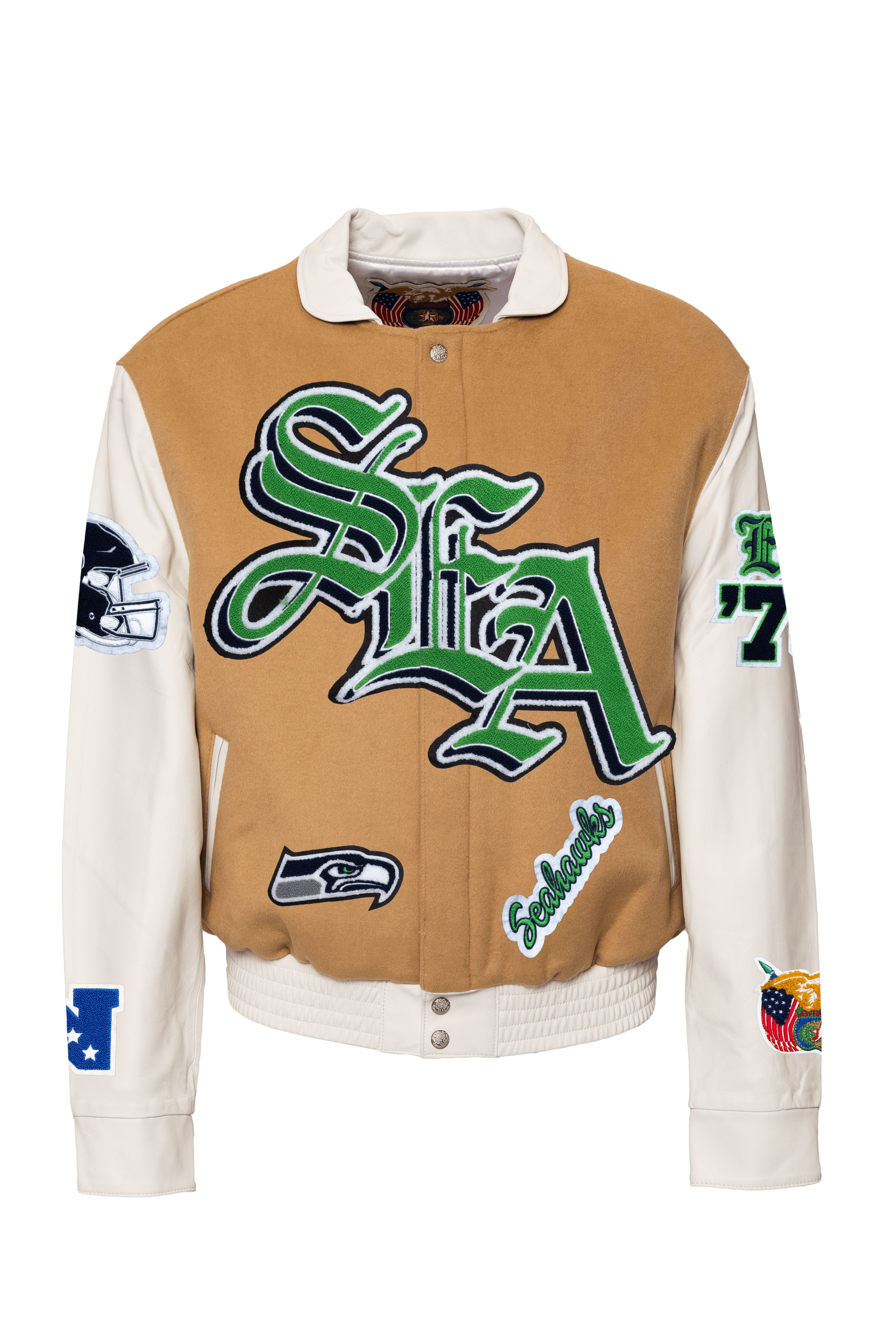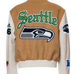 Seattle Seahawks Wool & Leather Old English Varsity Jacket Camel
