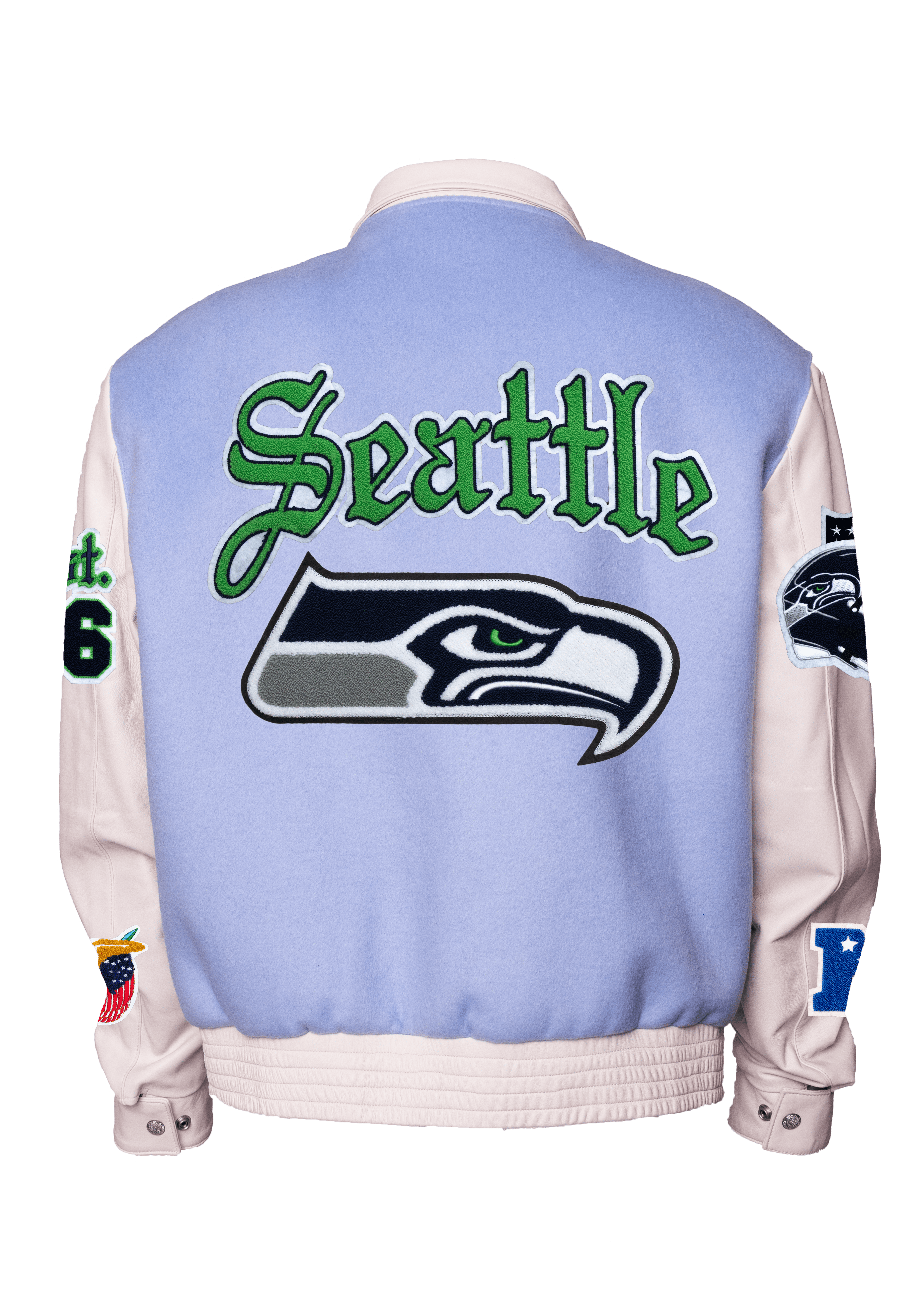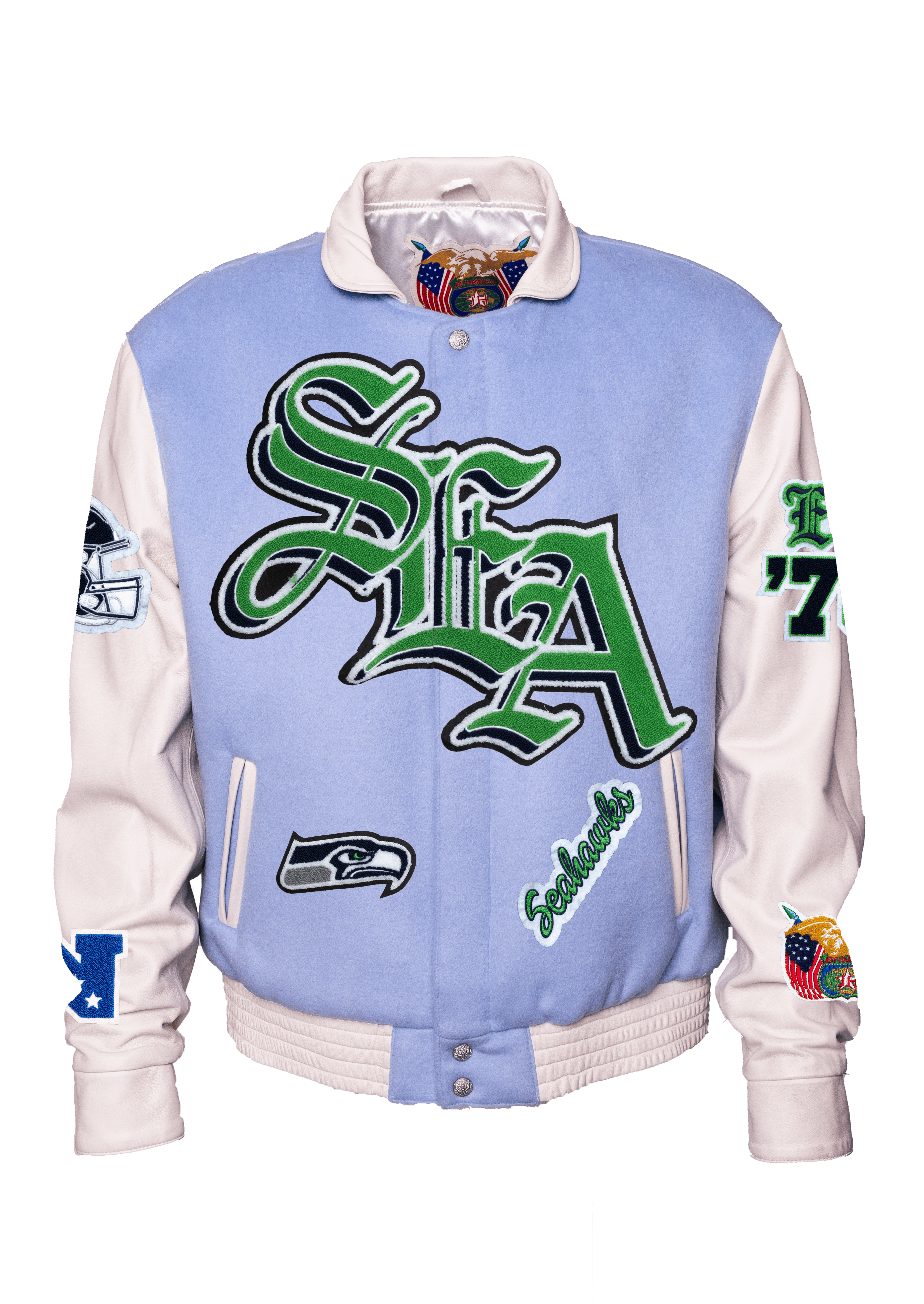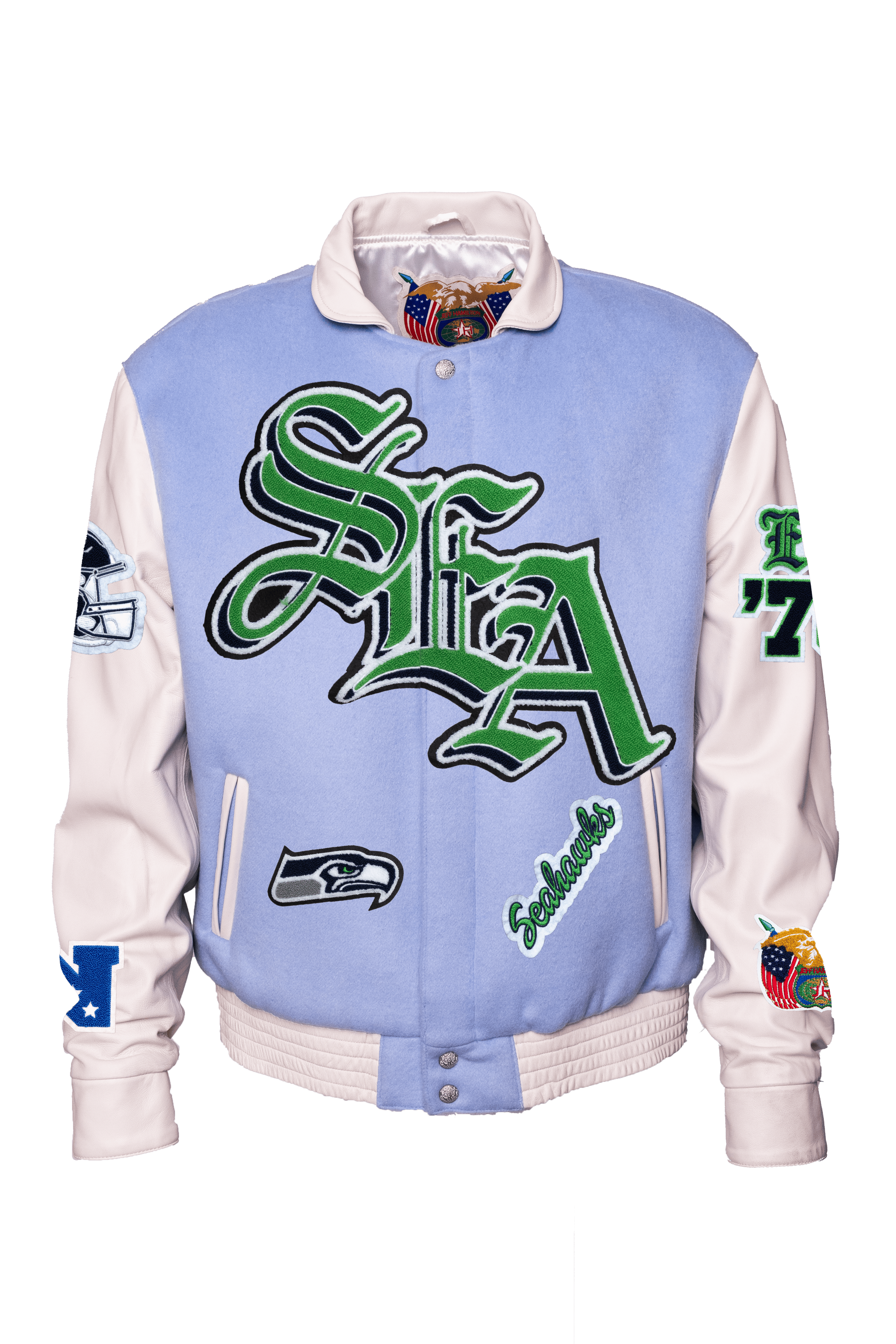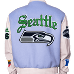 Seattle Seahawks Wool & Leather Old English Varsity Jacket Light Blue/White