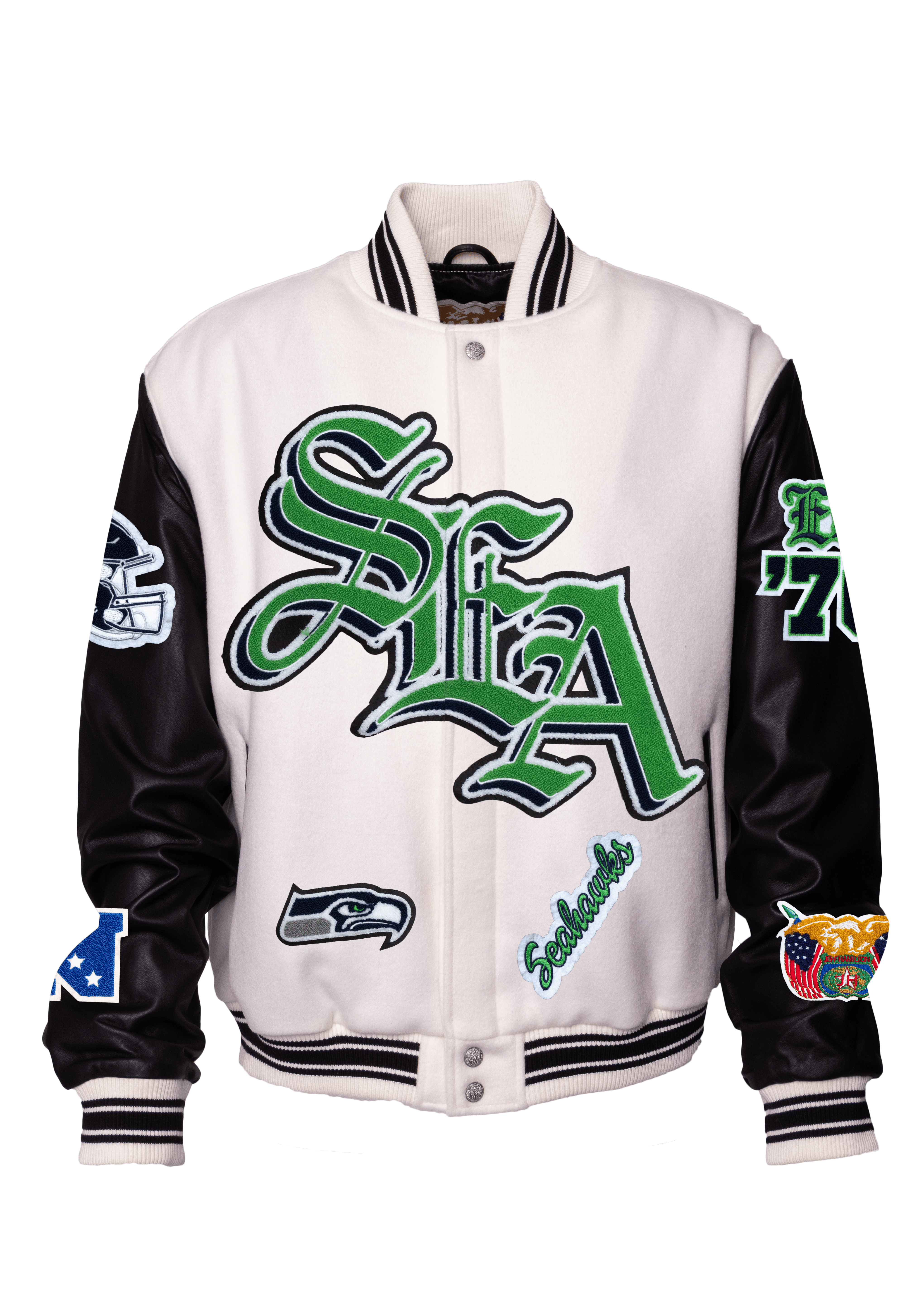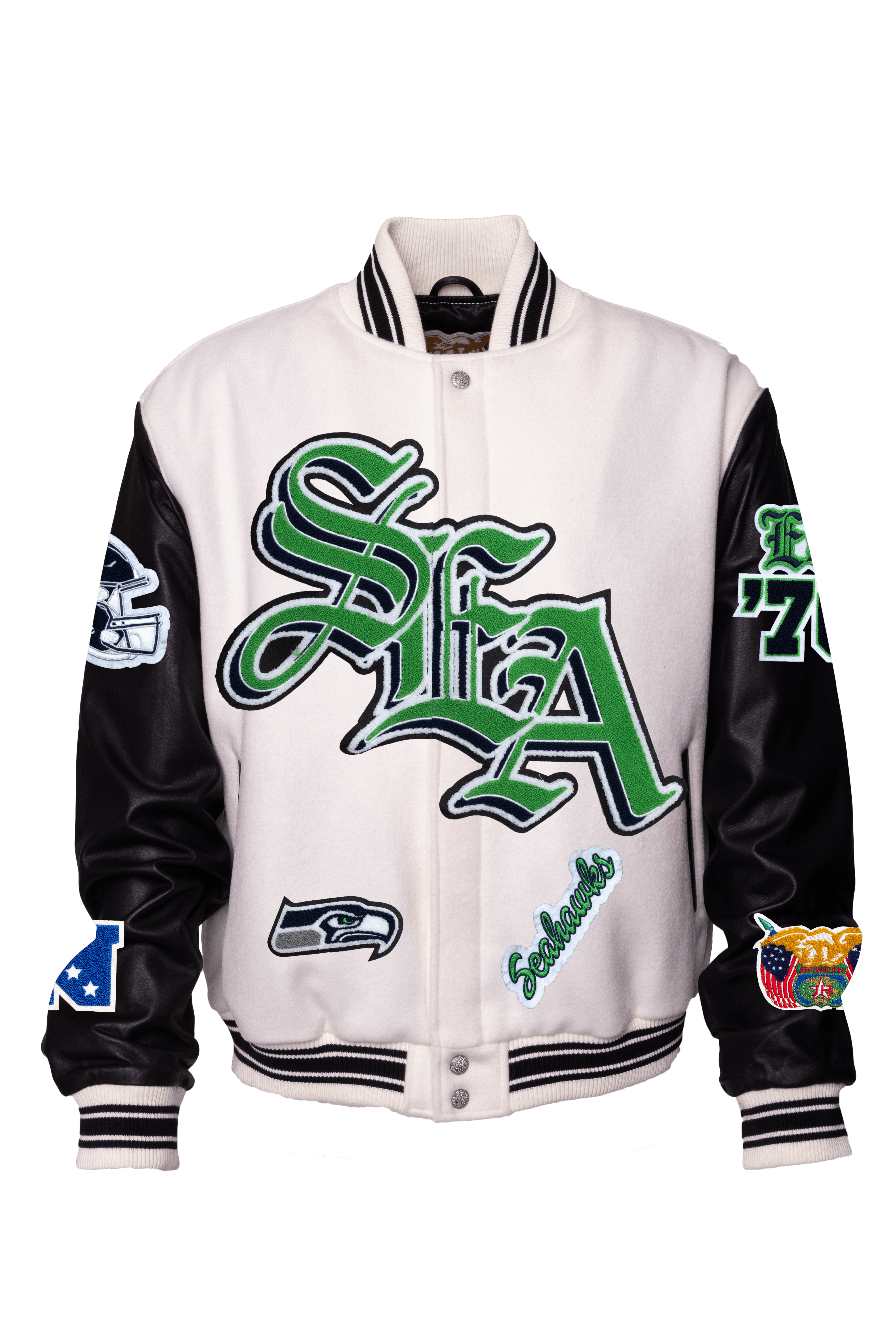 Seattle Seahawks Wool & Leather Old English Varsity Jacket White/Black