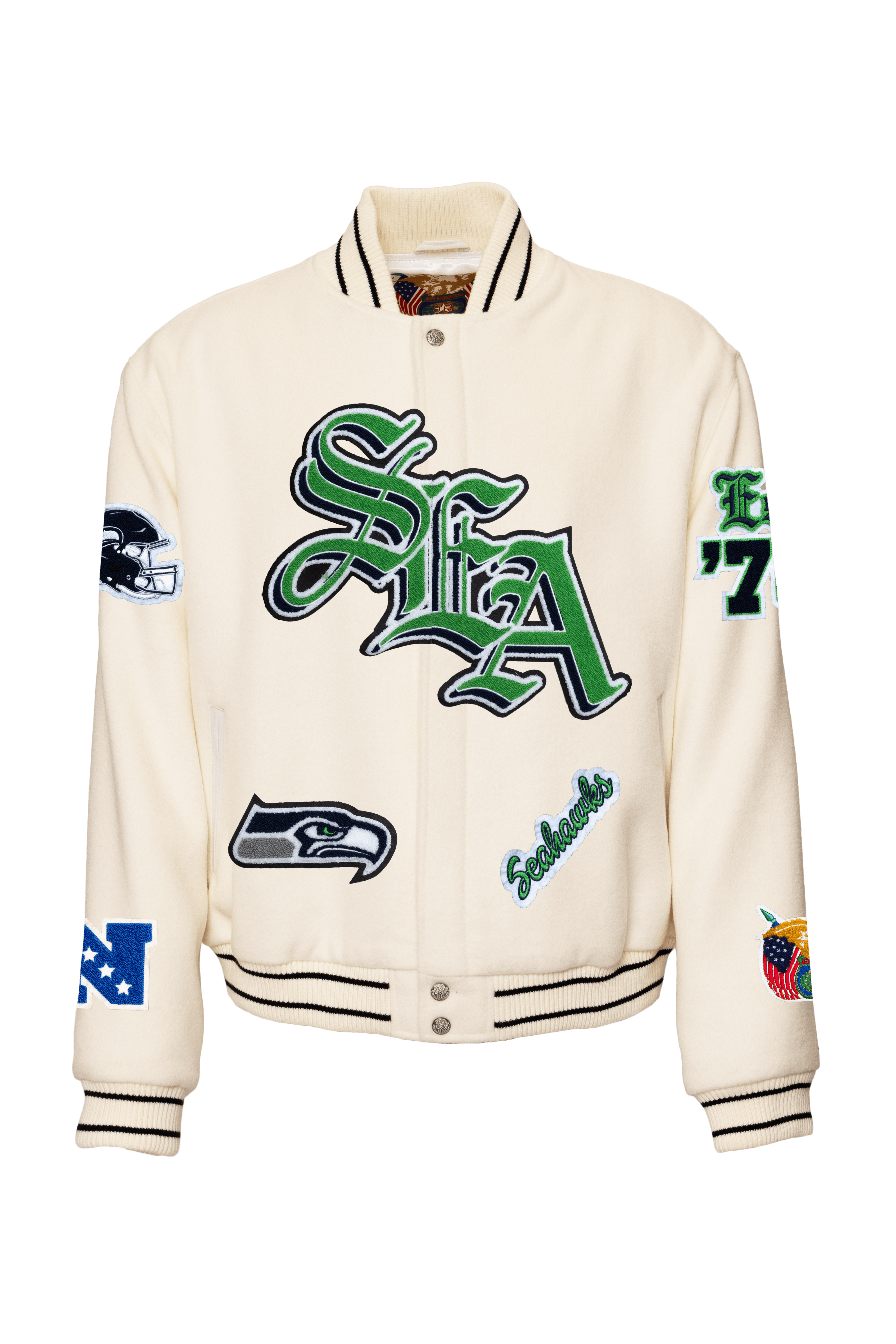 Seattle Seahawks Wool Varsity Old English Jacket White