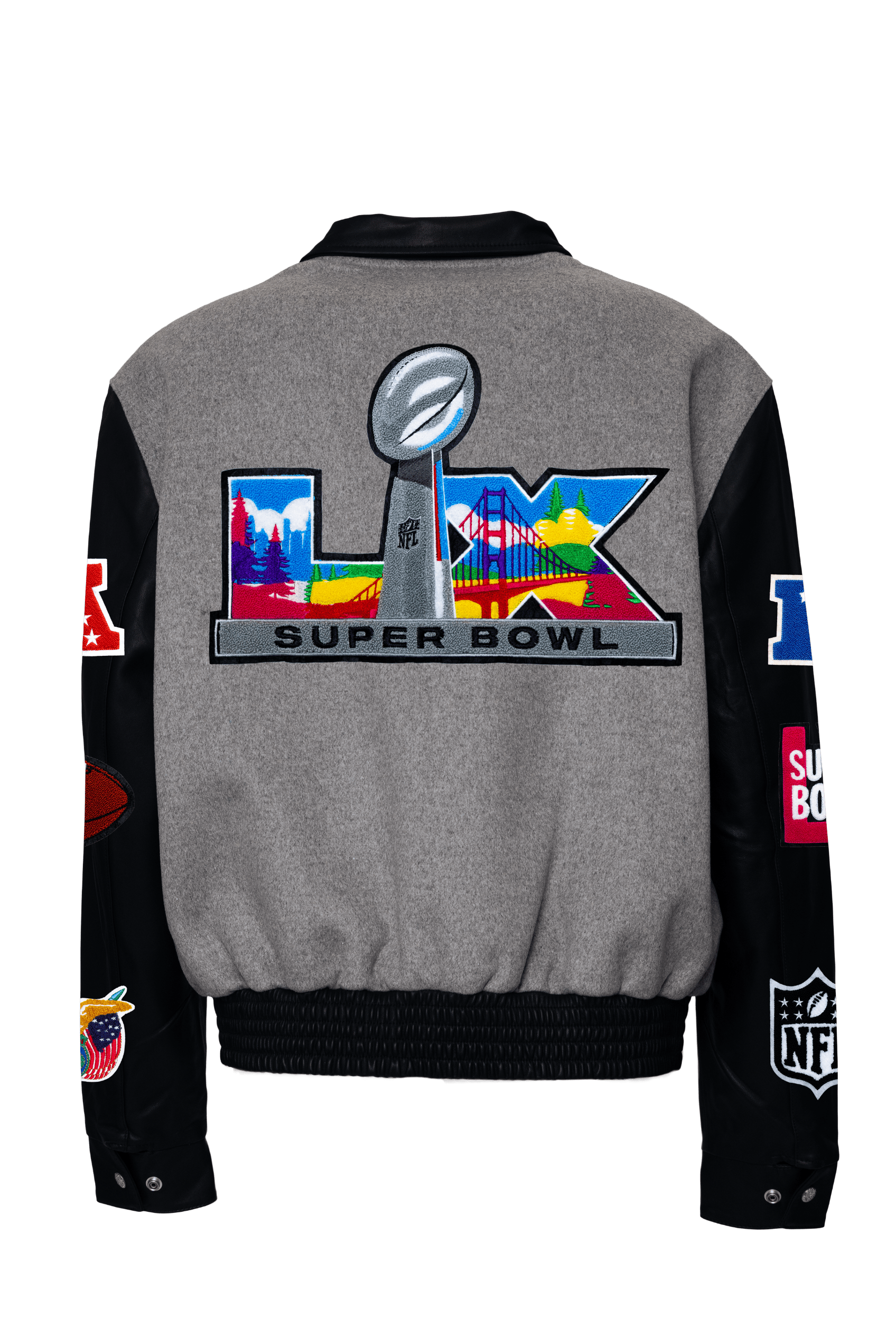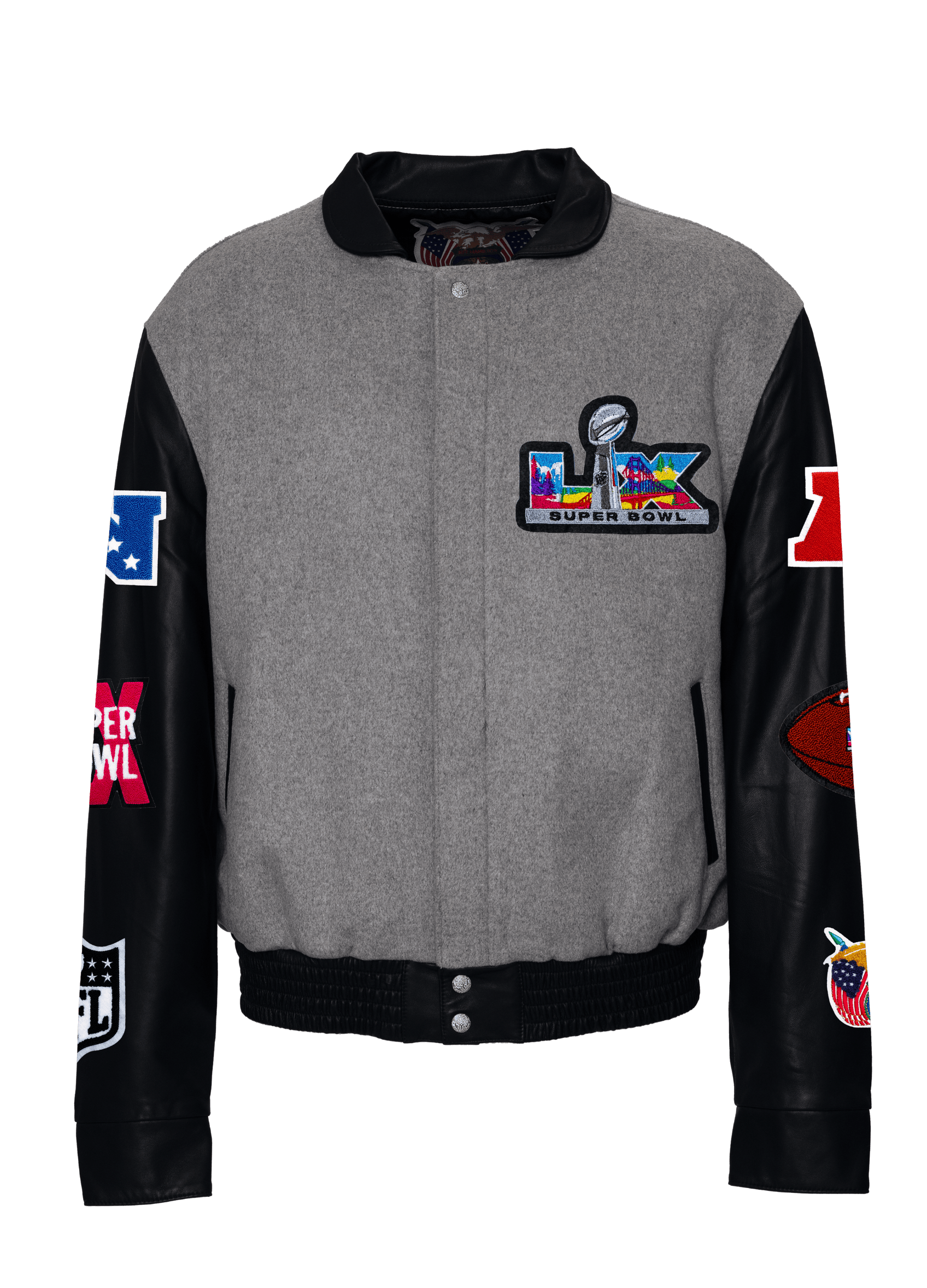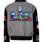 Super Bowl 2026 Wool & Leather Varsity Jacket Gray/Black
