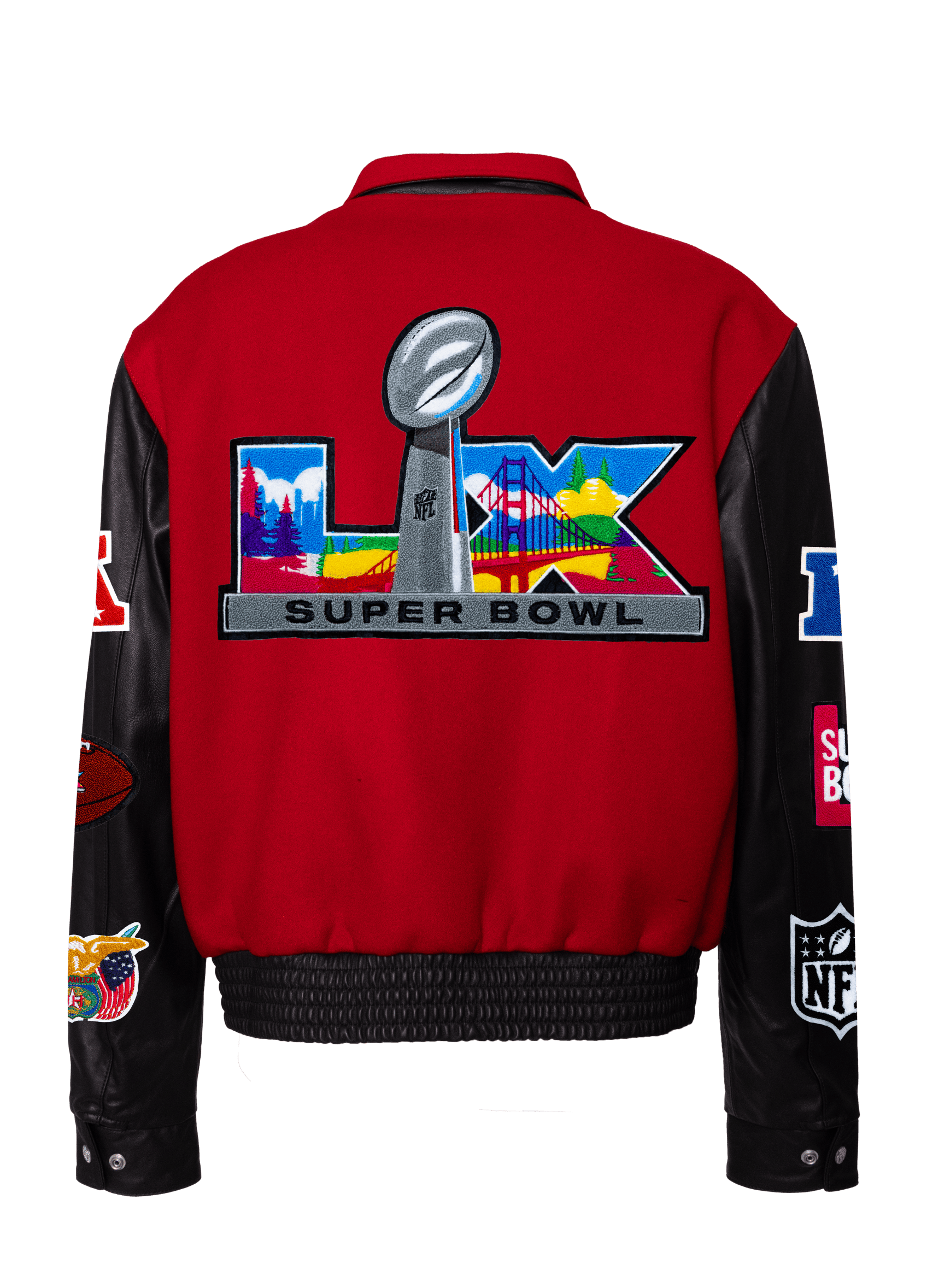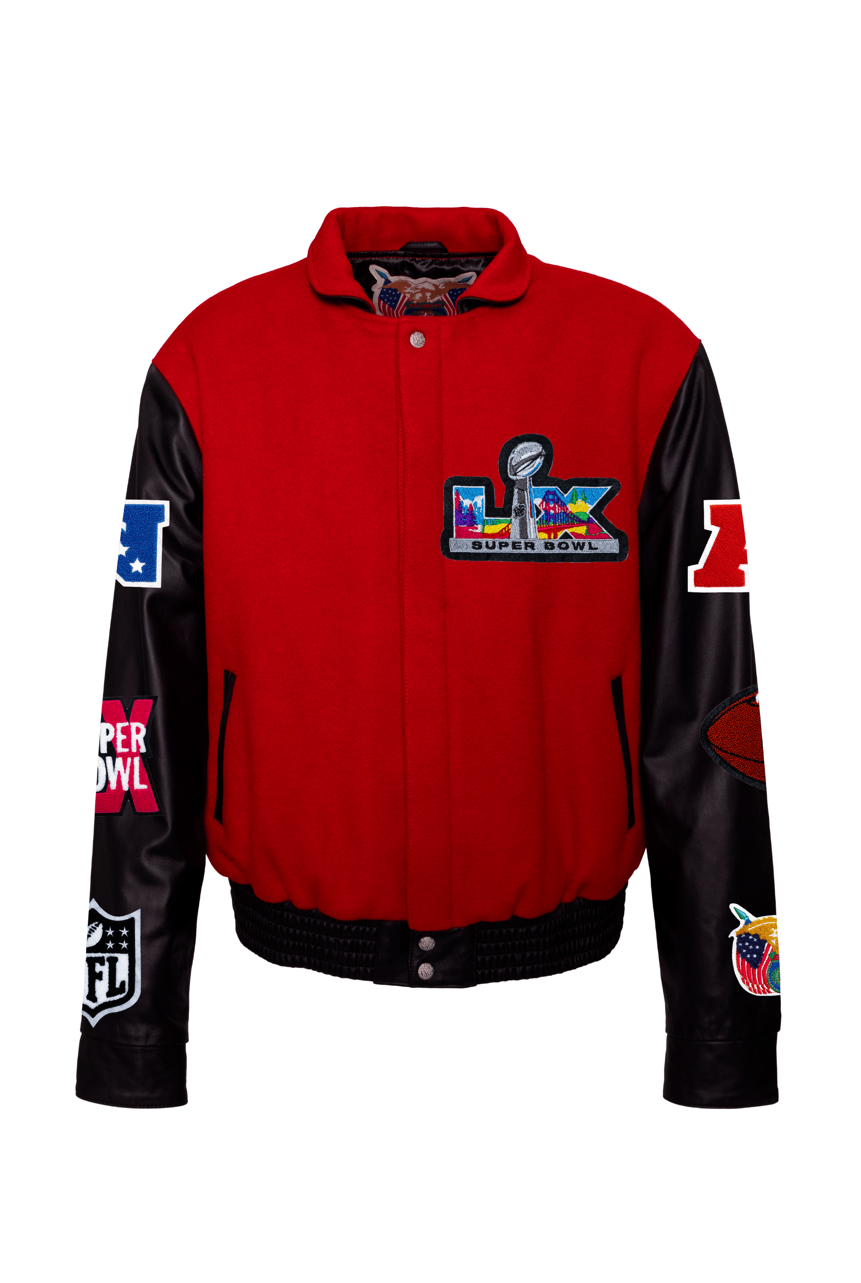 Super Bowl 2026 Wool & Leather Varsity Jacket Light Red/Black