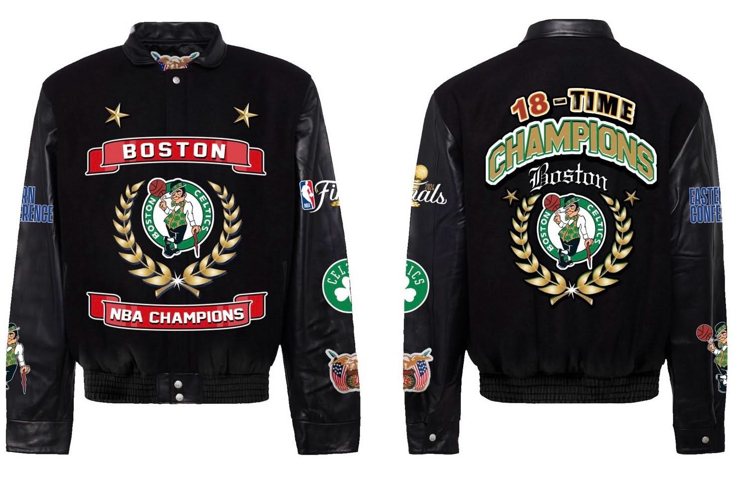 Preorder: 2024 NBA Champion Boston Celtics Banner Wool & Leather Jacket