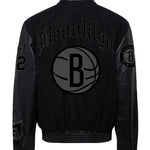 Brooklyn Nets Wool & Leather Old English Varsity Jacket Black/Black