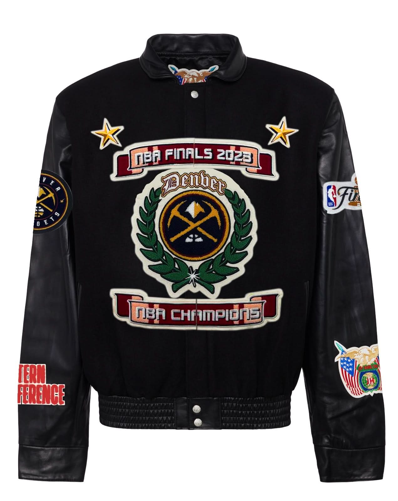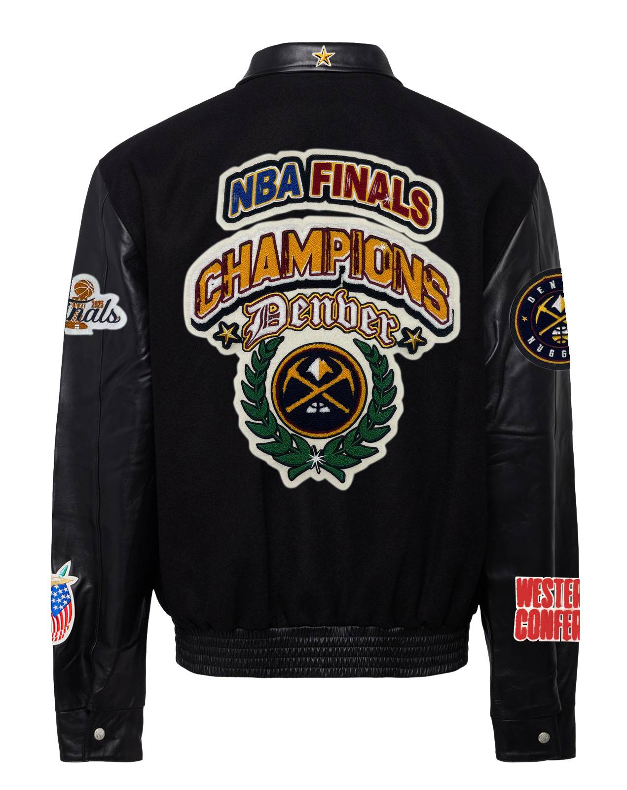 Denver Nuggets NBA Championship Wool & Leather Varsity Jacket Black/Black