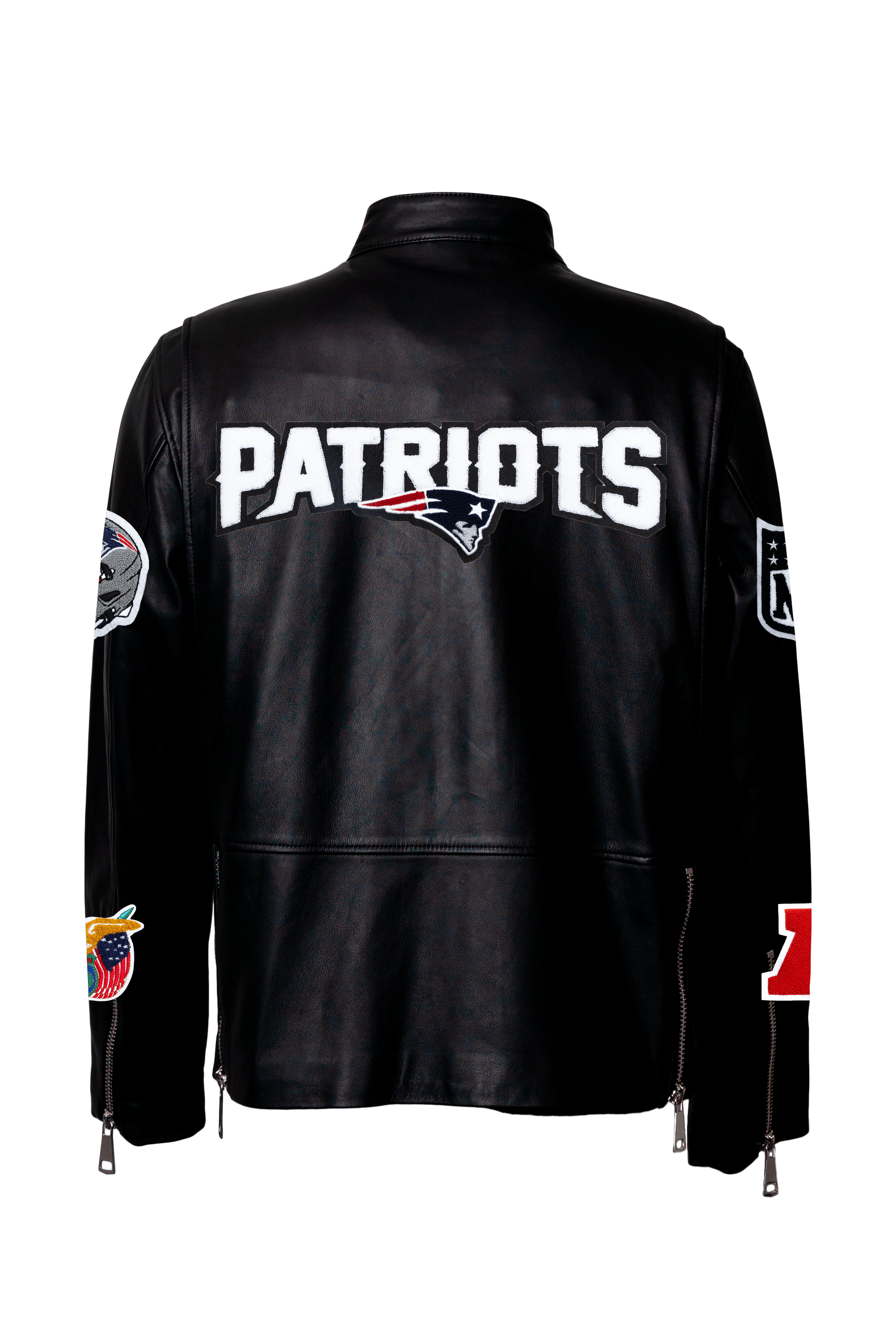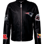 New England Black Leather Zip-Up Puffer Jacket Black