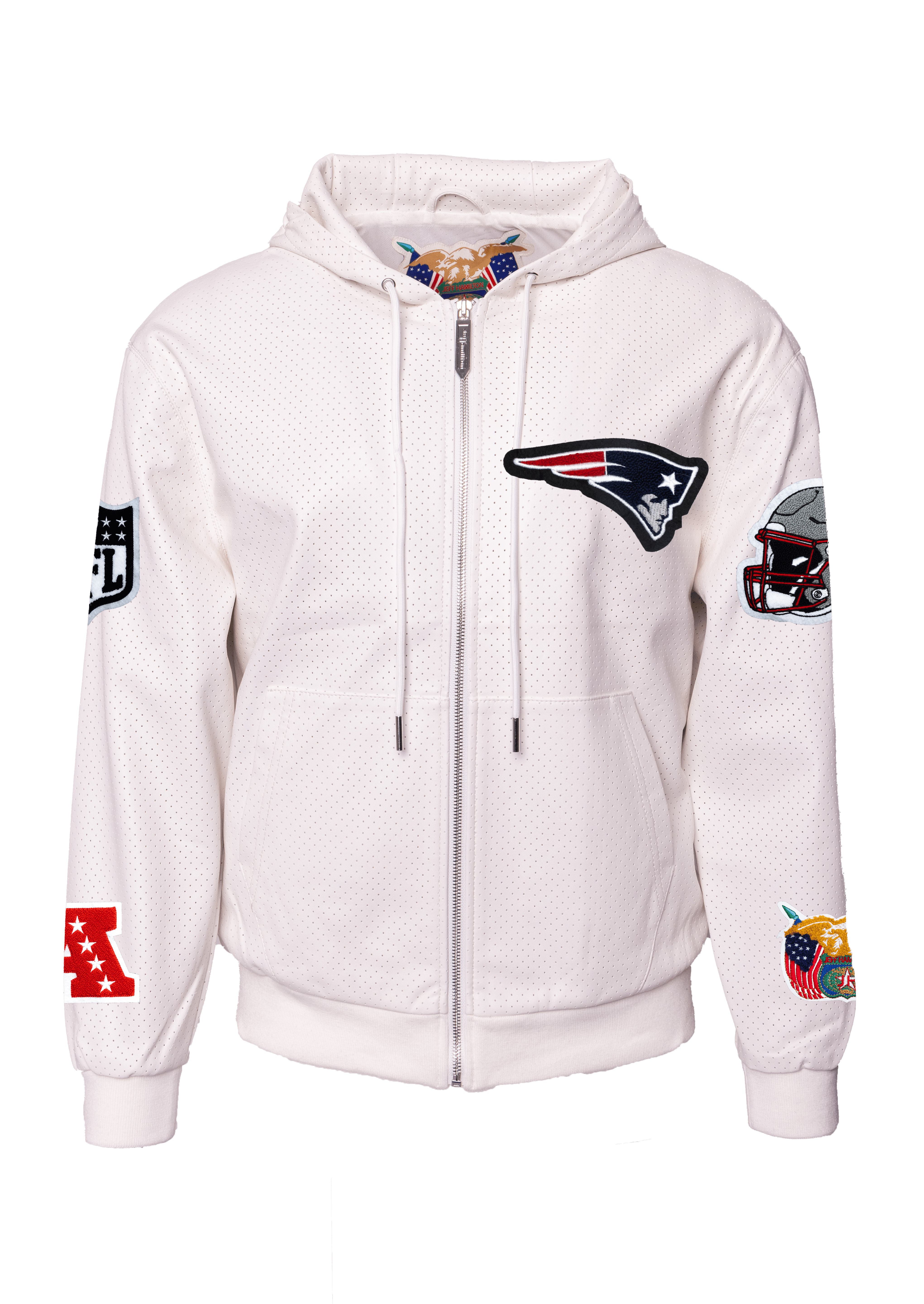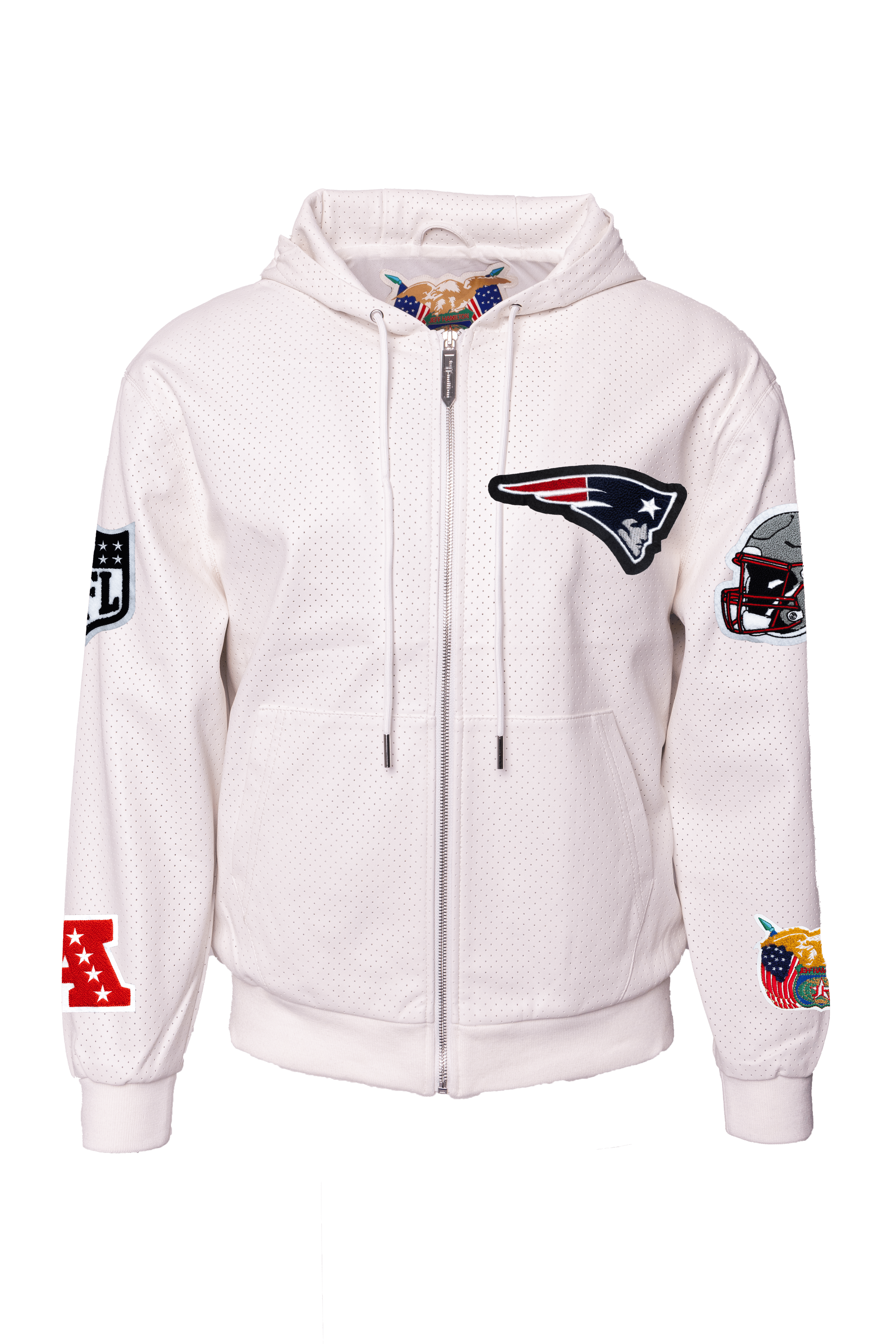 New England Patriots Lightweight Vegan Zip-Up Hooded Jacket White