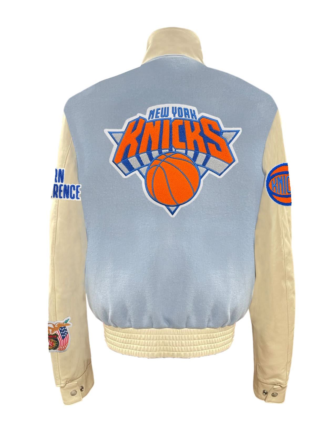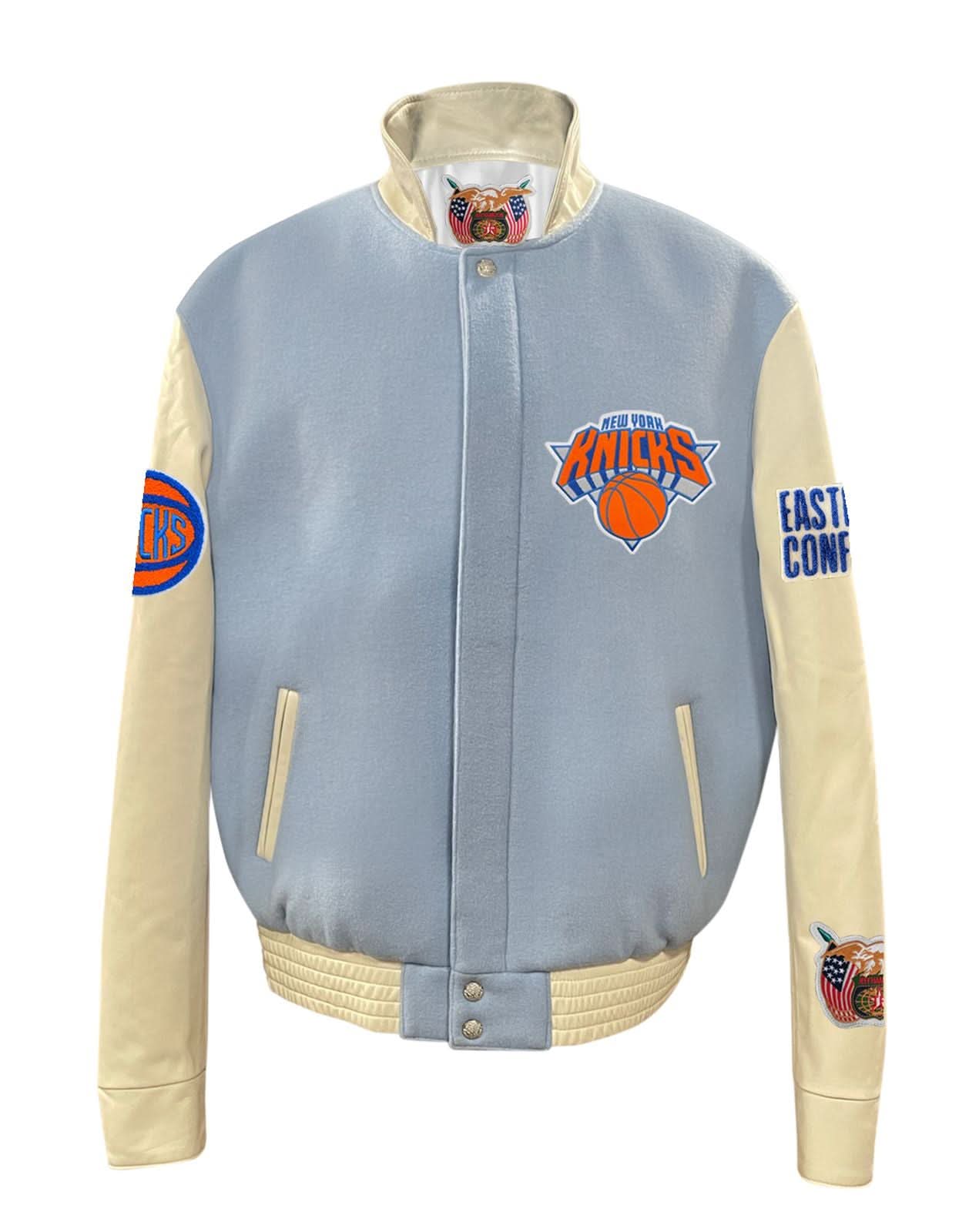 New York Knicks Wool & Leather Varsity Jacket Baby Blue