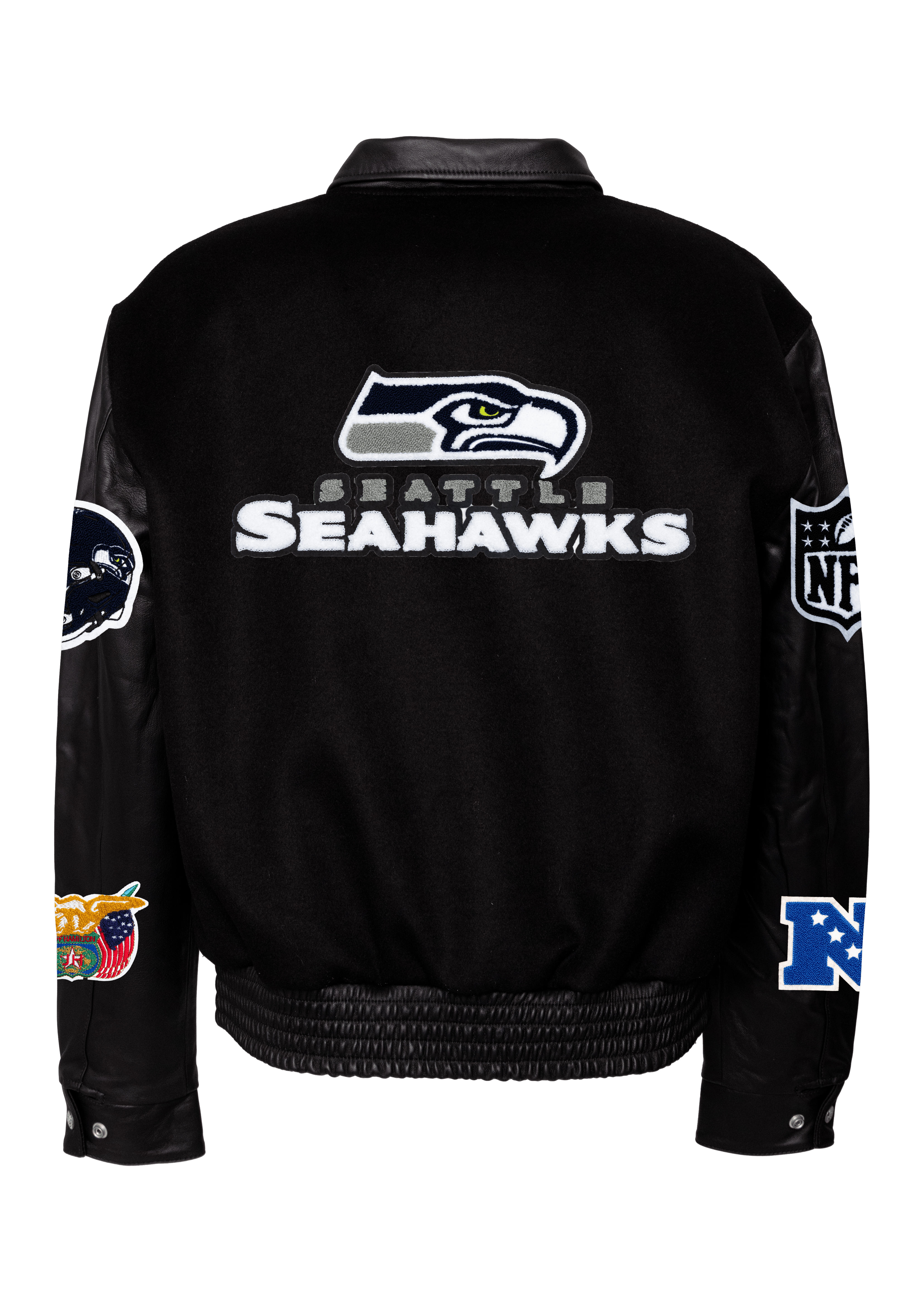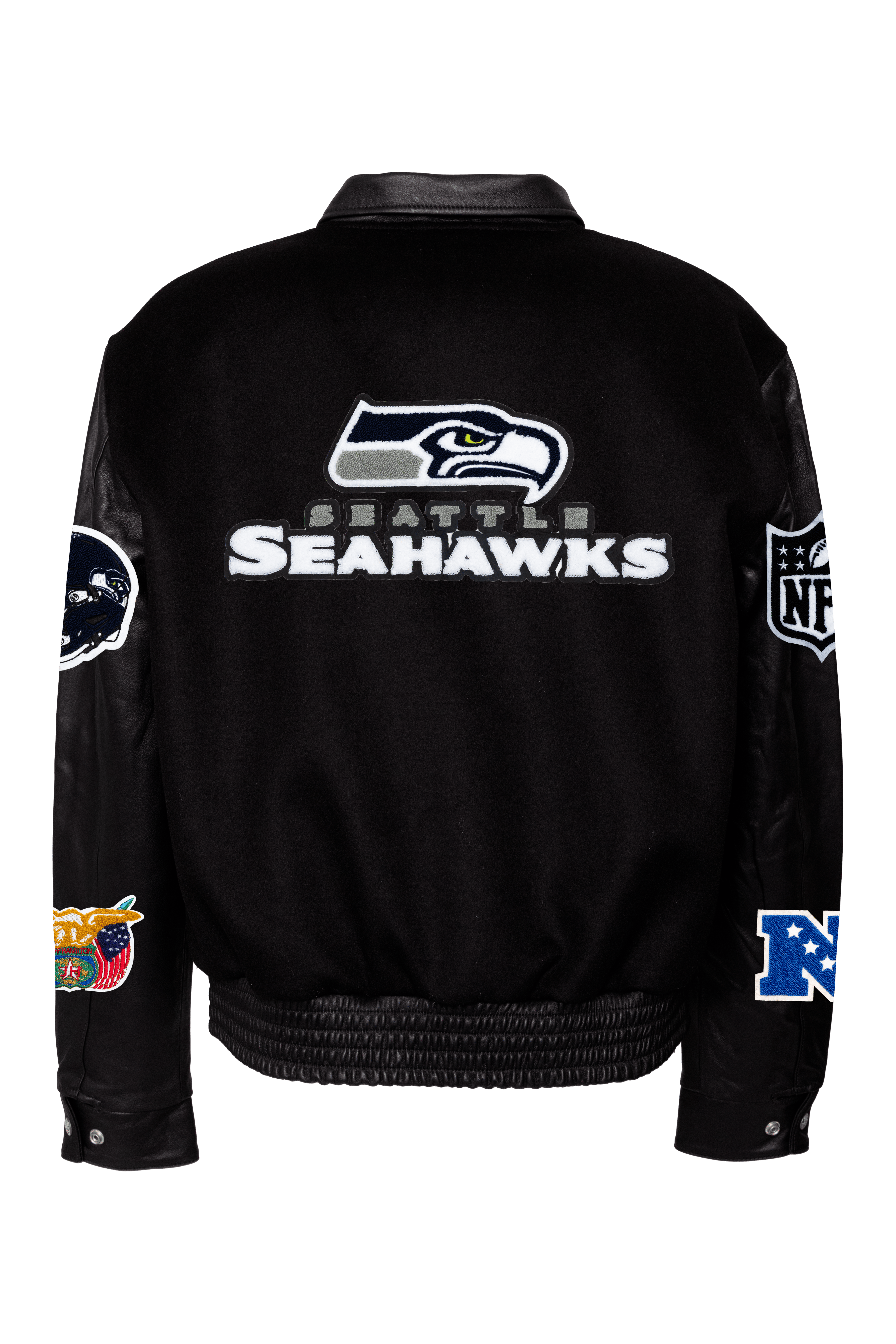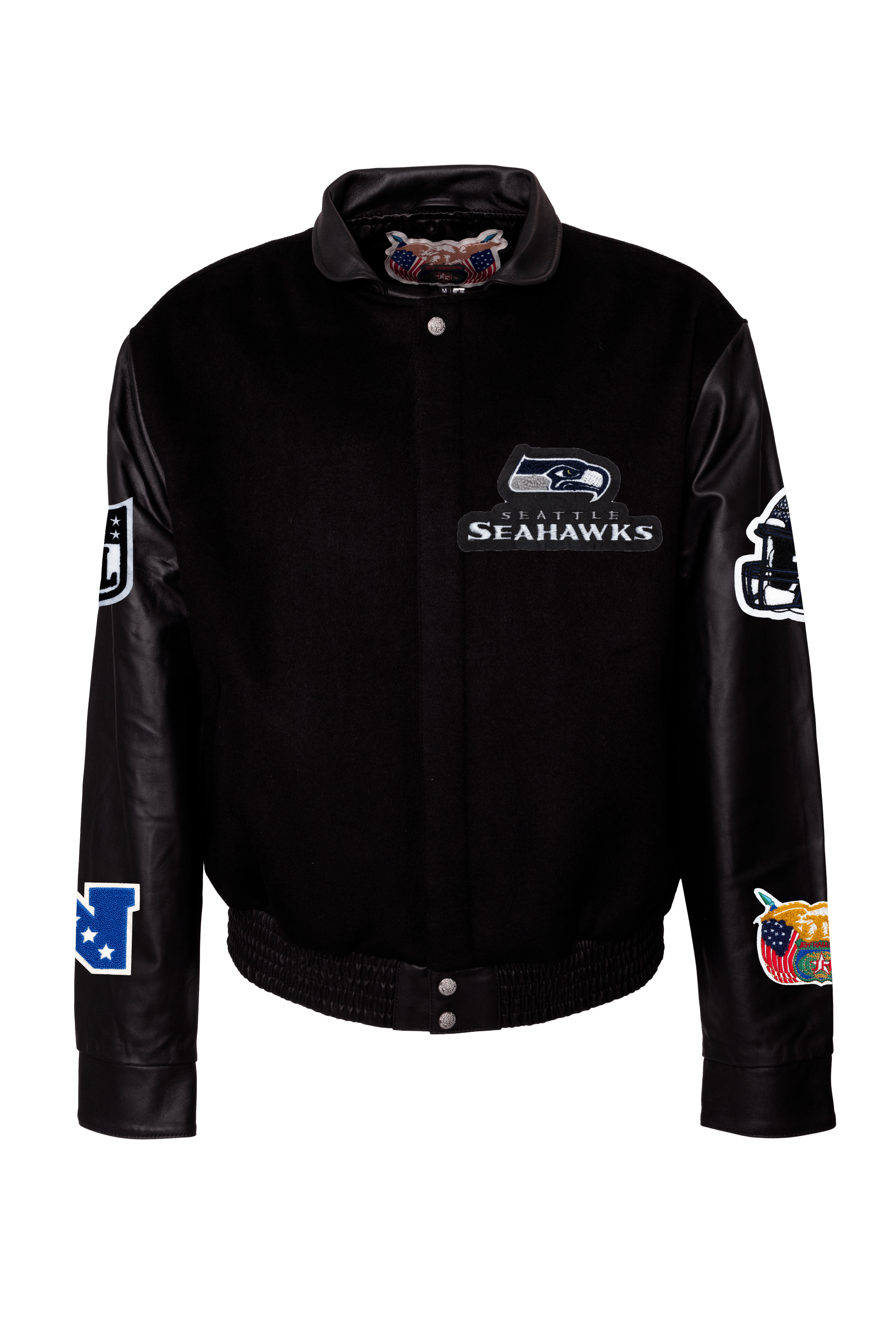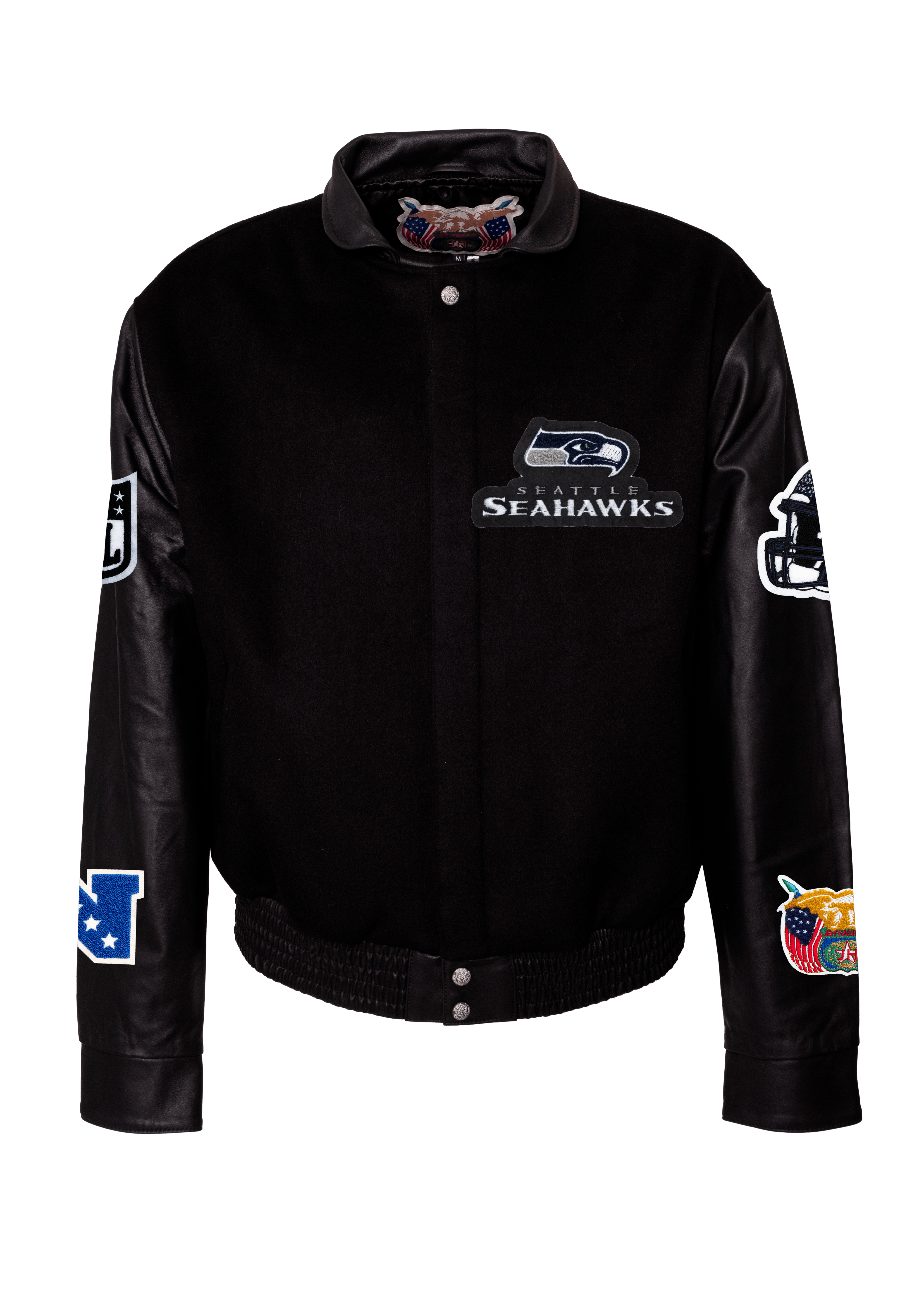 Seattle Seahawks Wool & Leather Jacket Black On Black