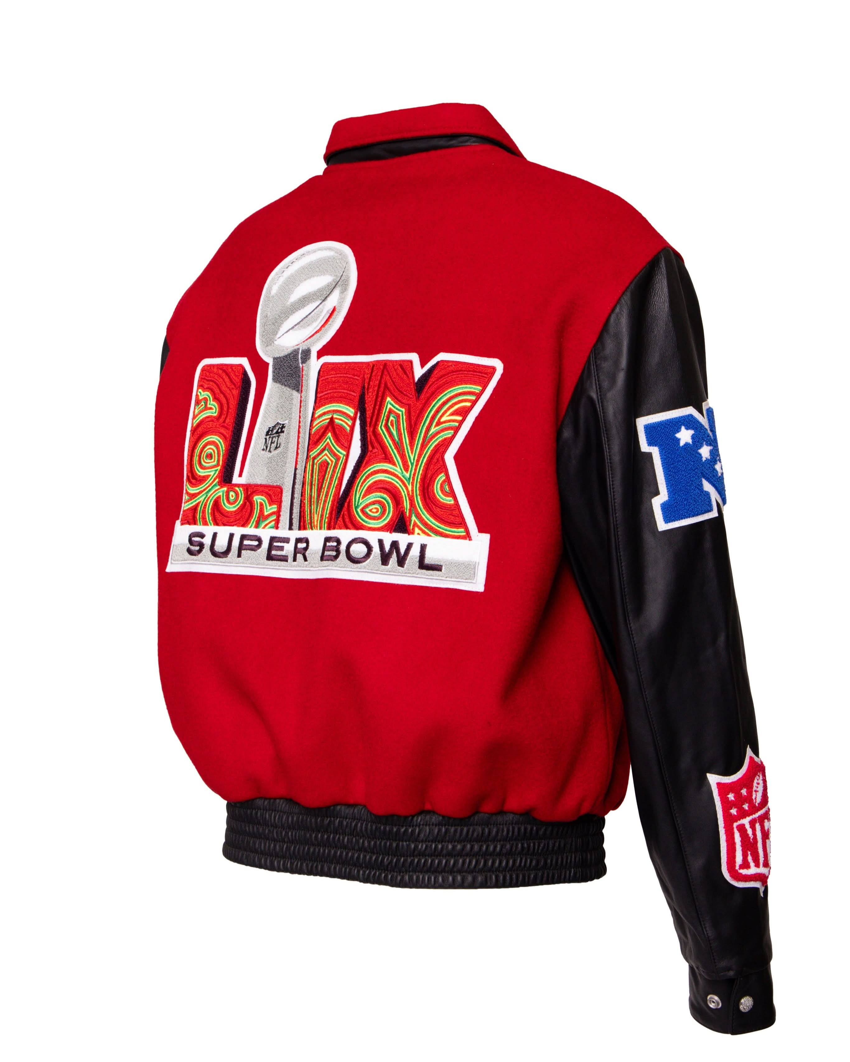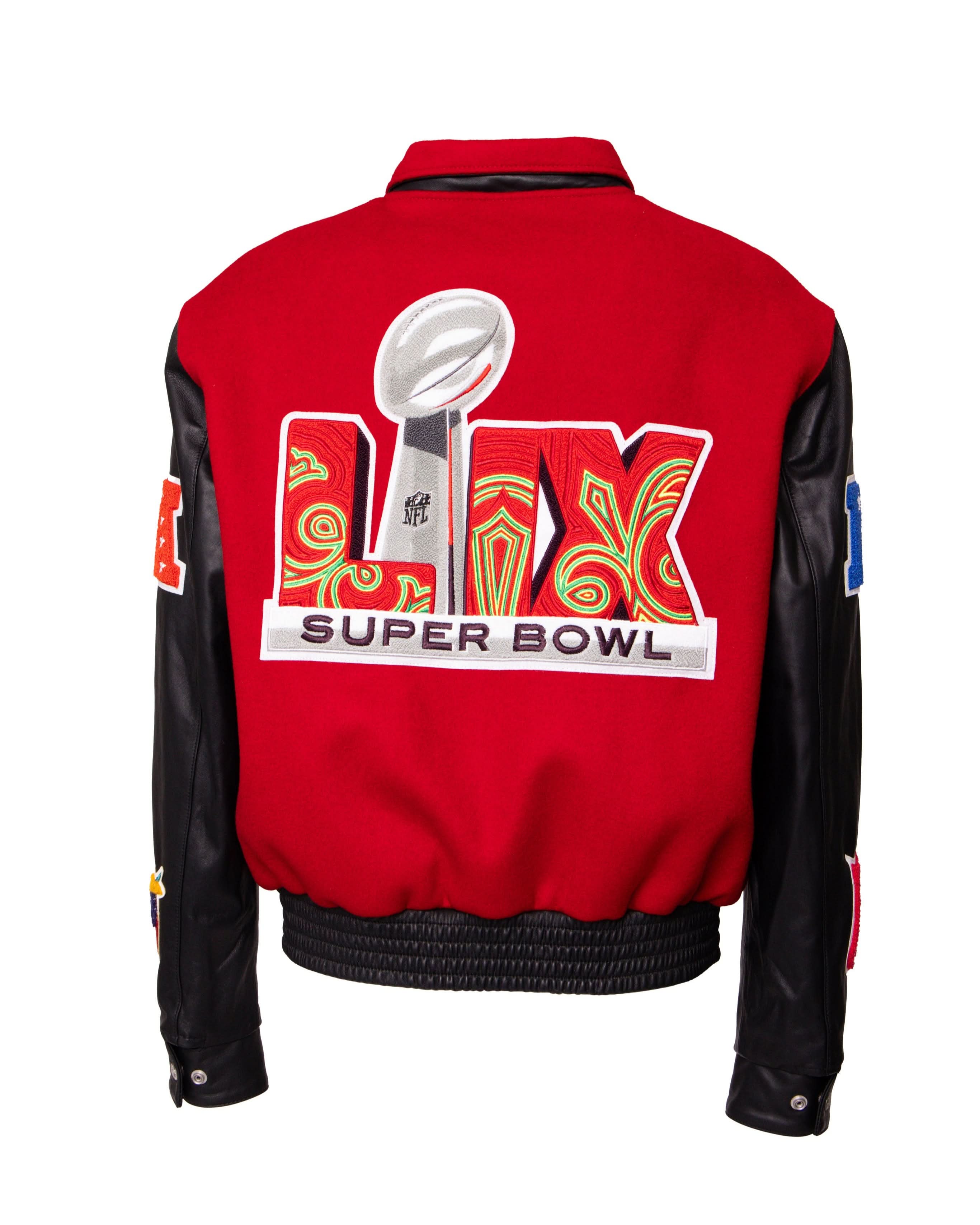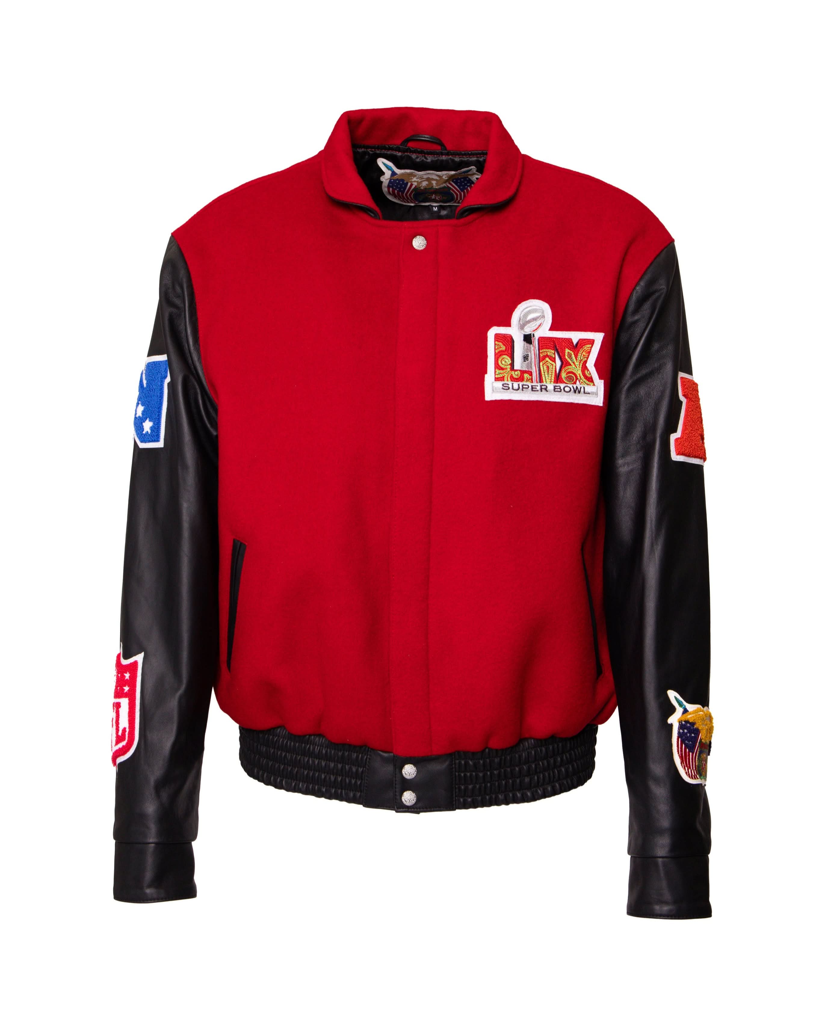 Super Bowl 2025 Wool & Leather Varsity Jacket Red/Black