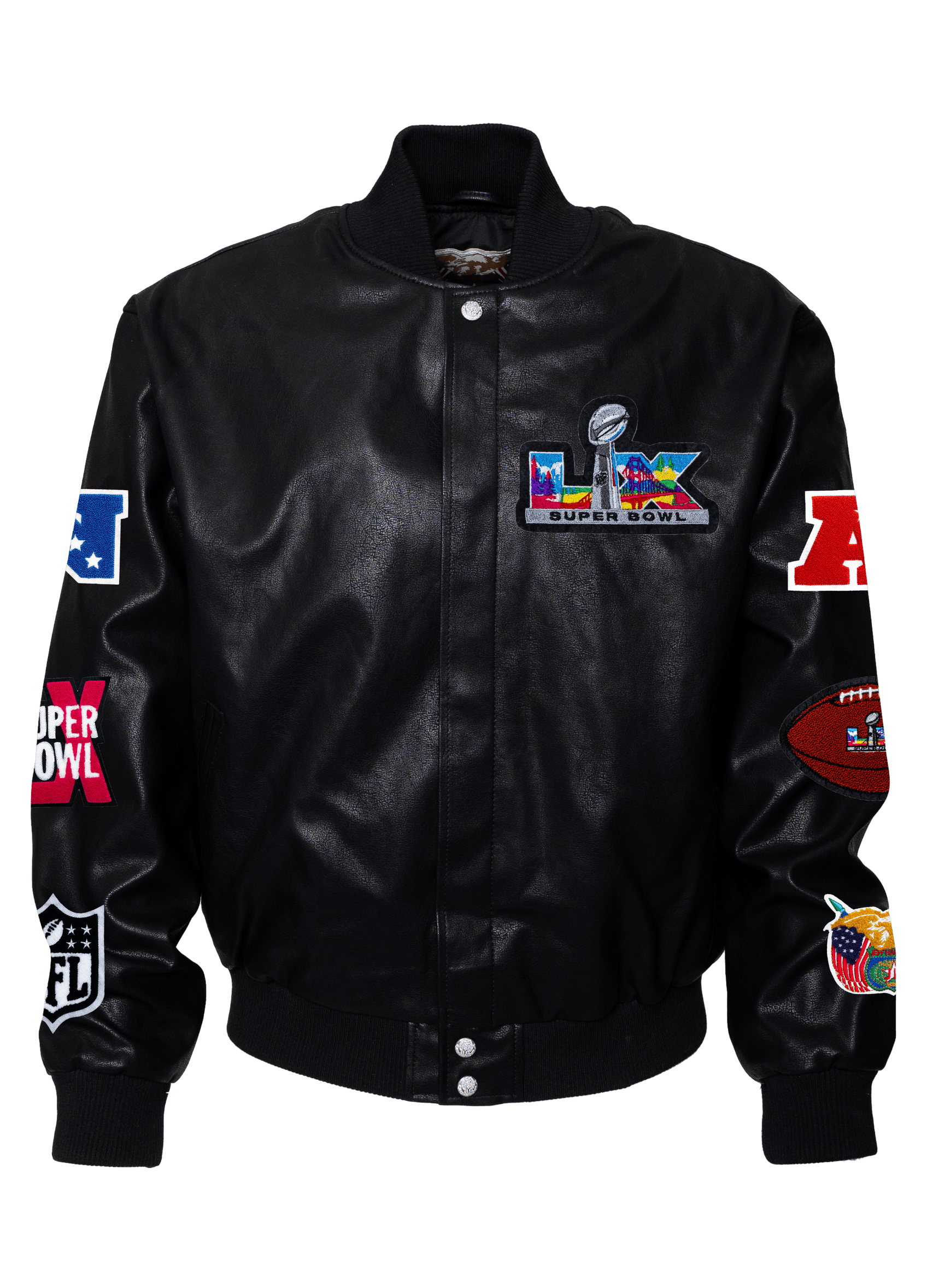 Super Bowl 2026 Full Black Vegan Leather Jacket