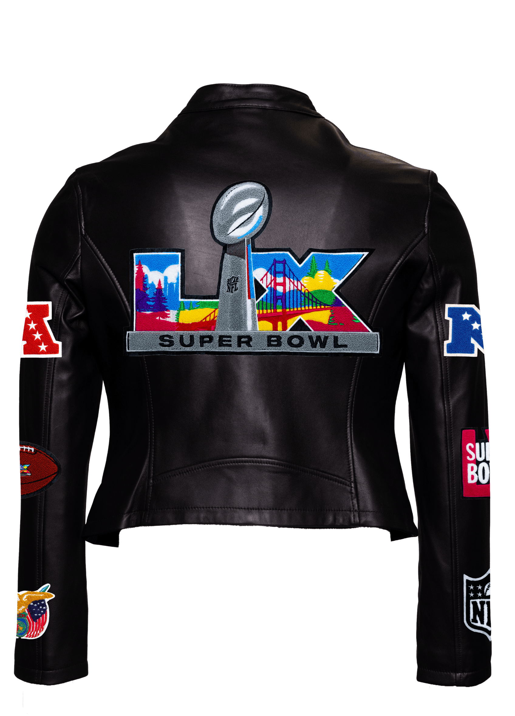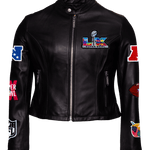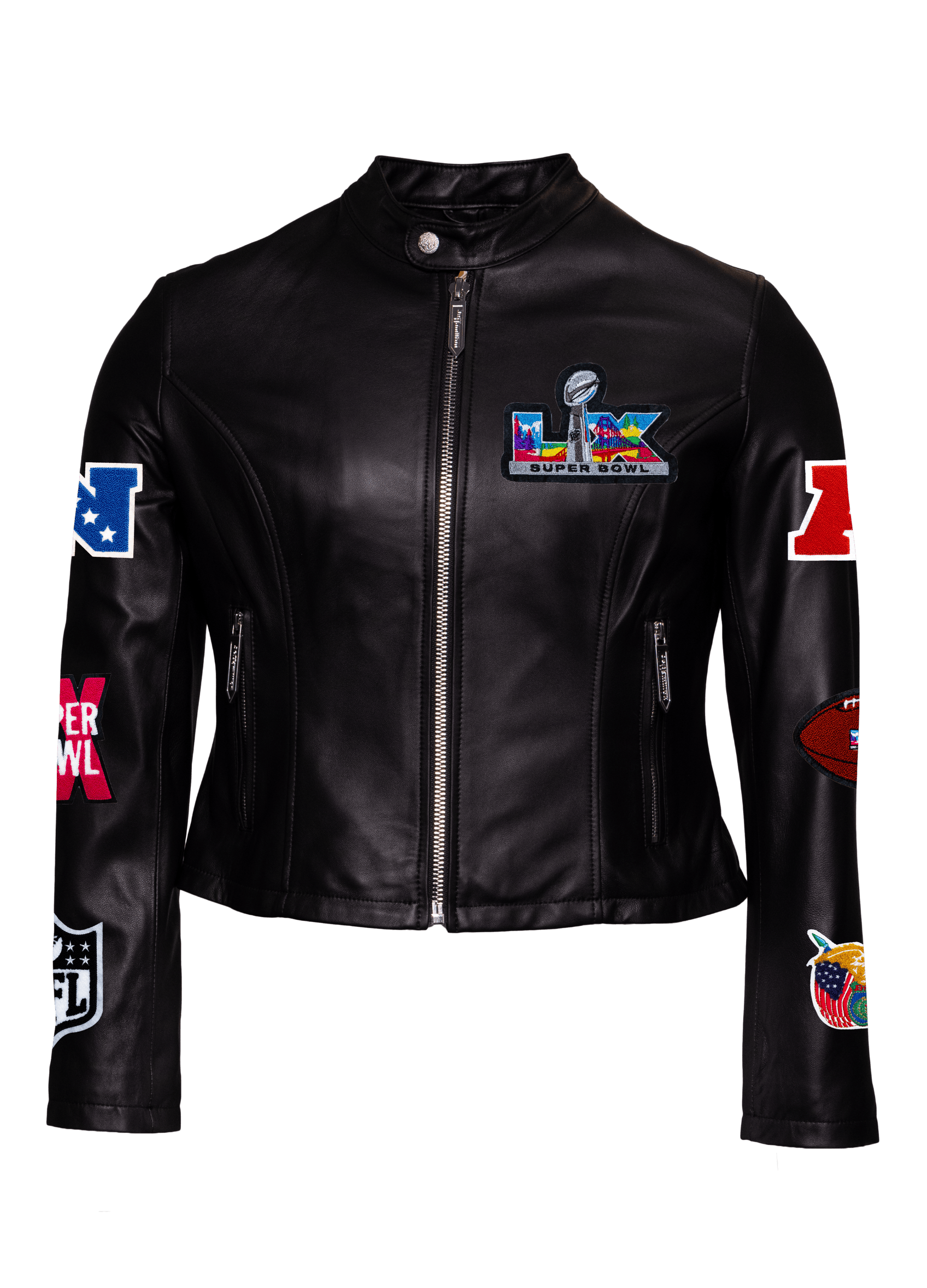 Super Bowl 2026 FULL LEATHER BLACK WOMENS MOTO JACKET