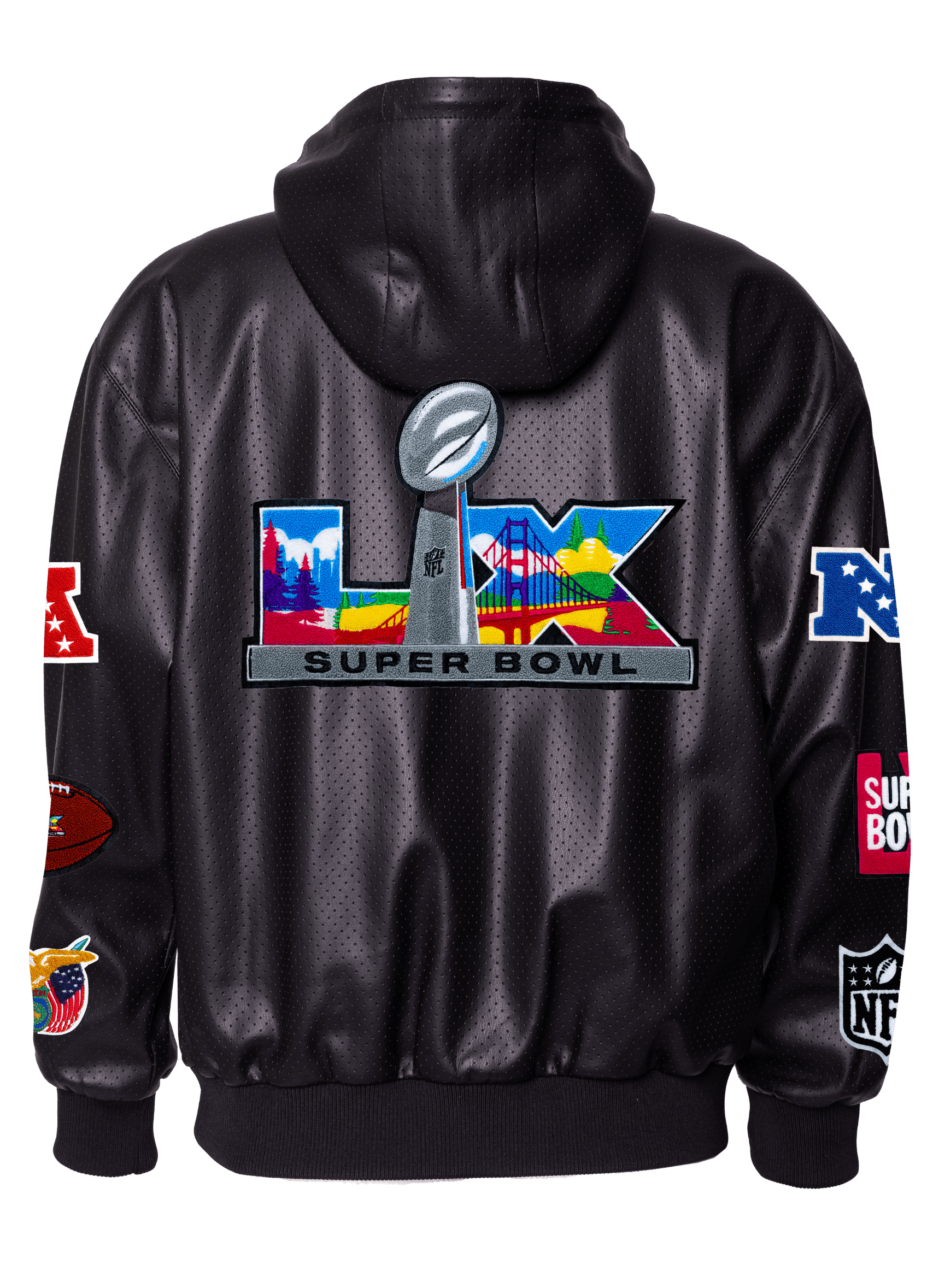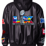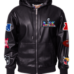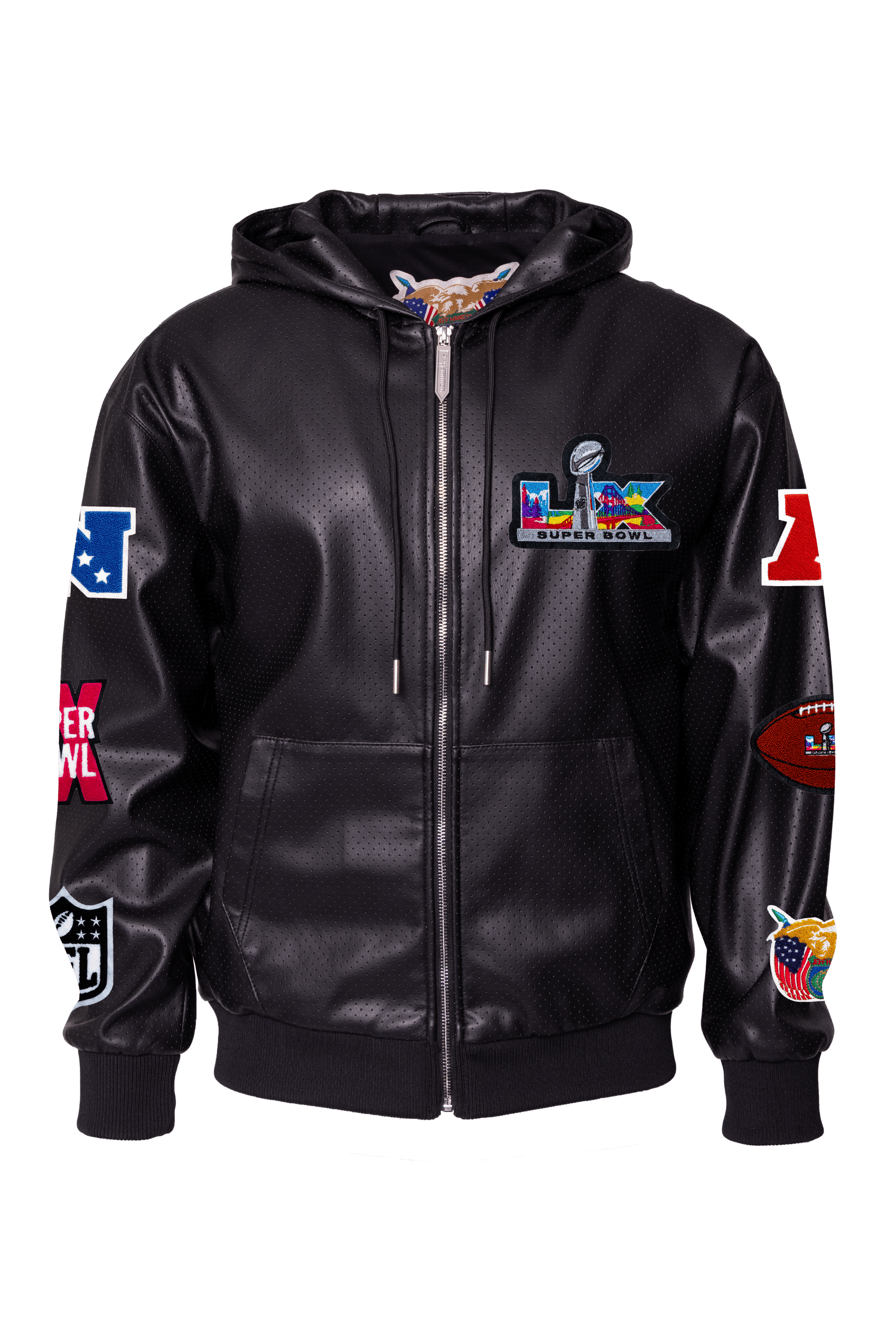 Super Bowl 2026 Vegan Leather Zip-Up Hooded Jacket Black