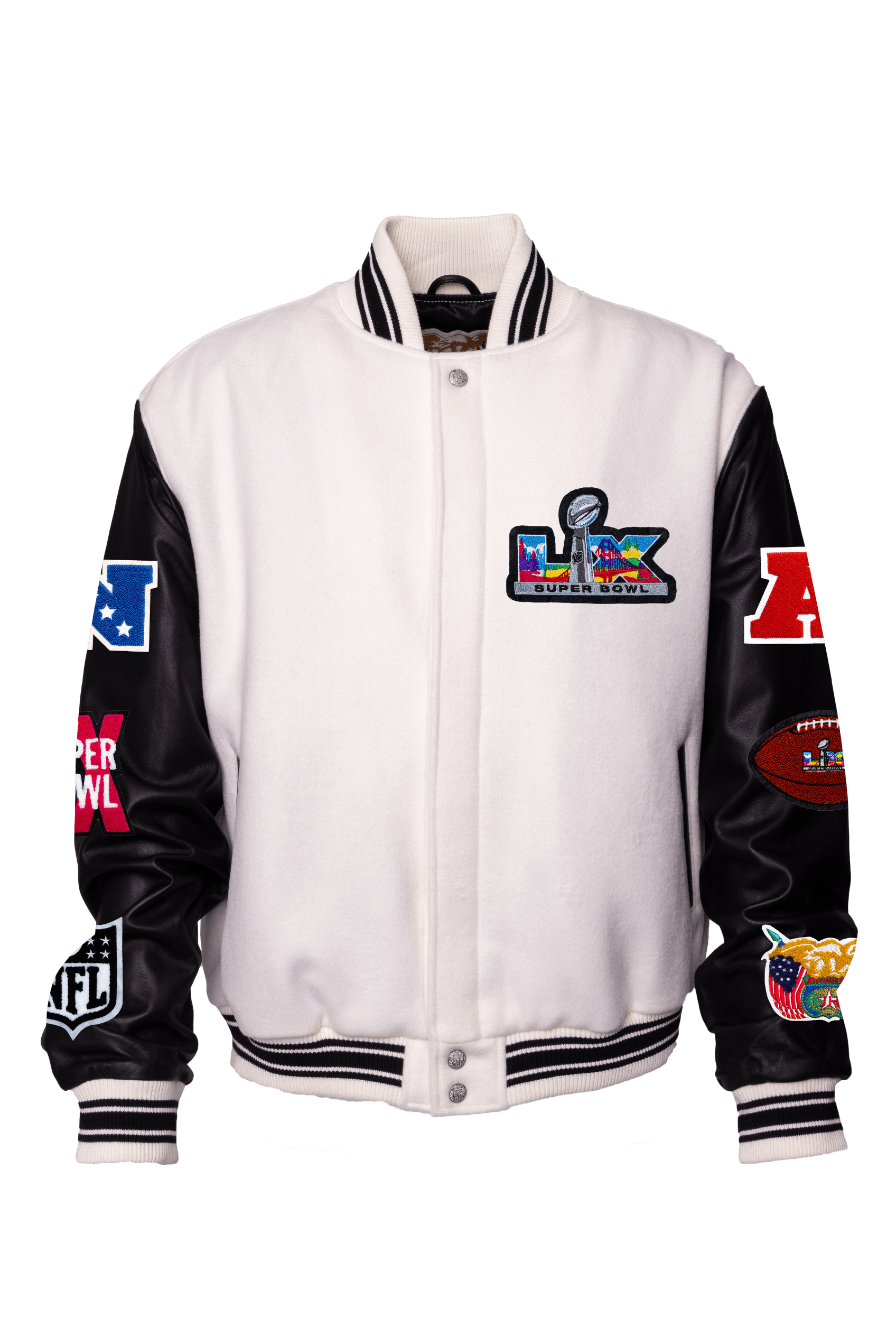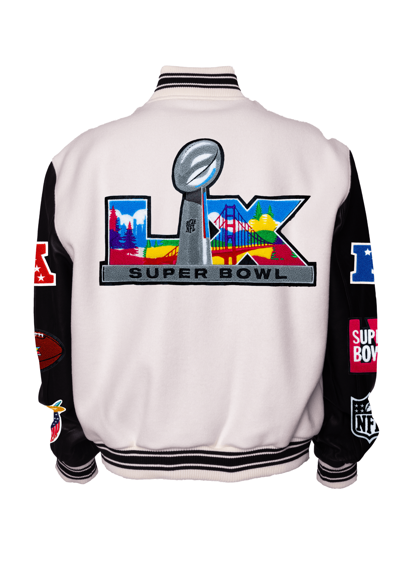 Super Bowl 2026 Wool & Leather Varsity Jacket Light White/Black