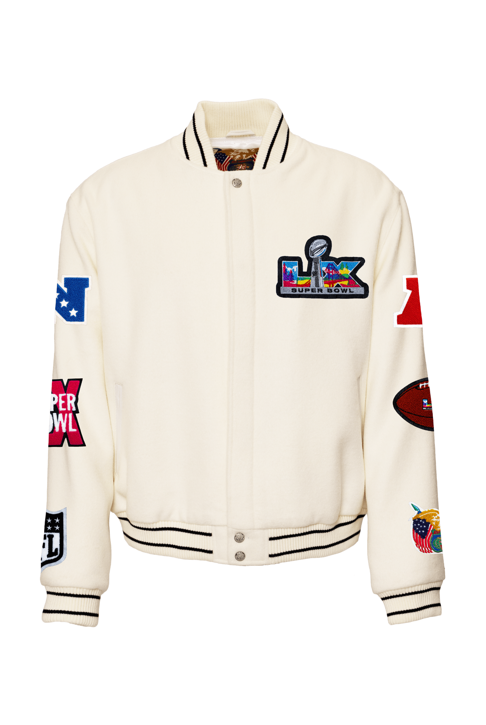 Super Bowl 2026 Wool Varsity Jacket White